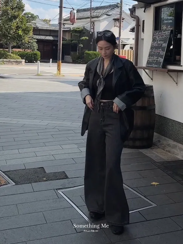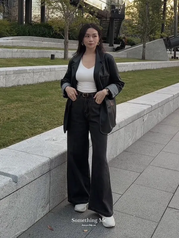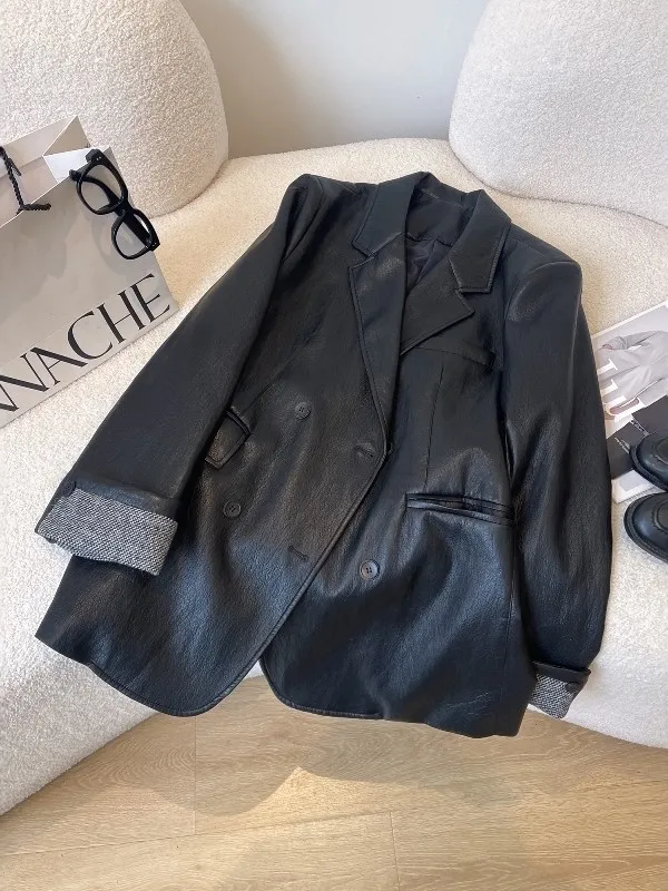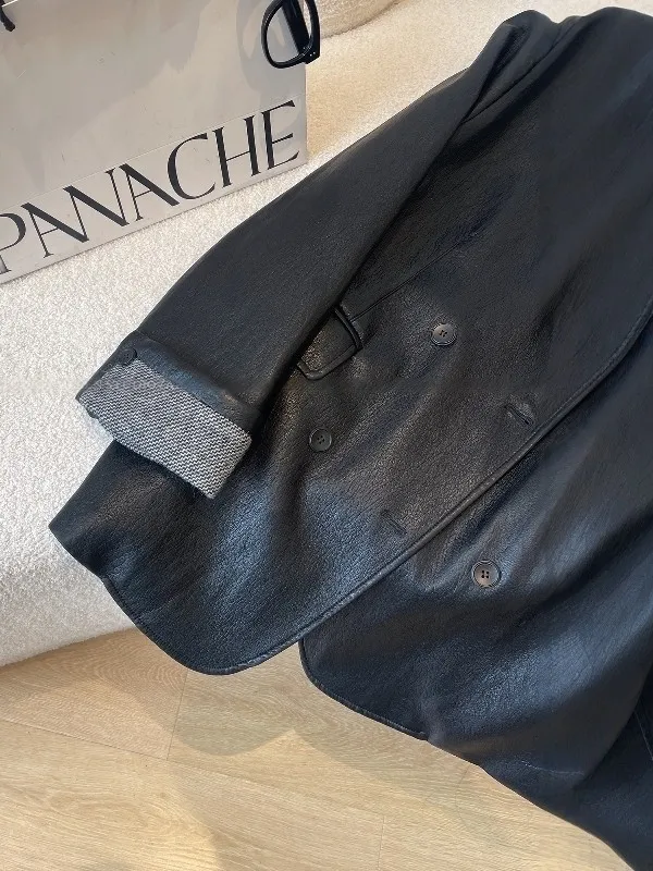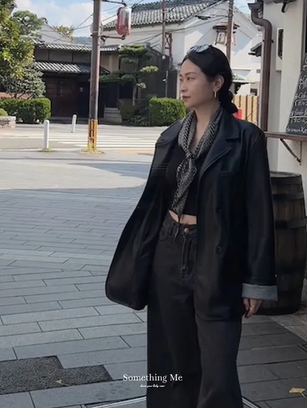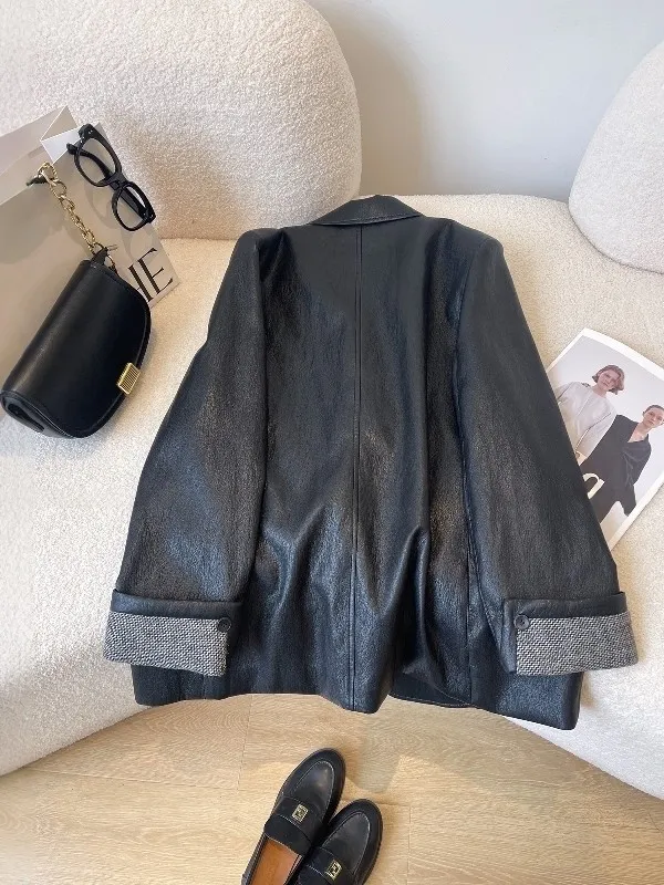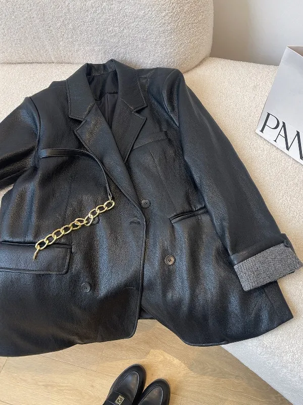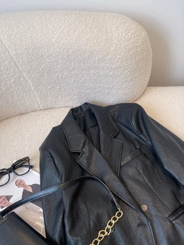 倫敦夜色 質感俐落寬鬆西裝皮外套