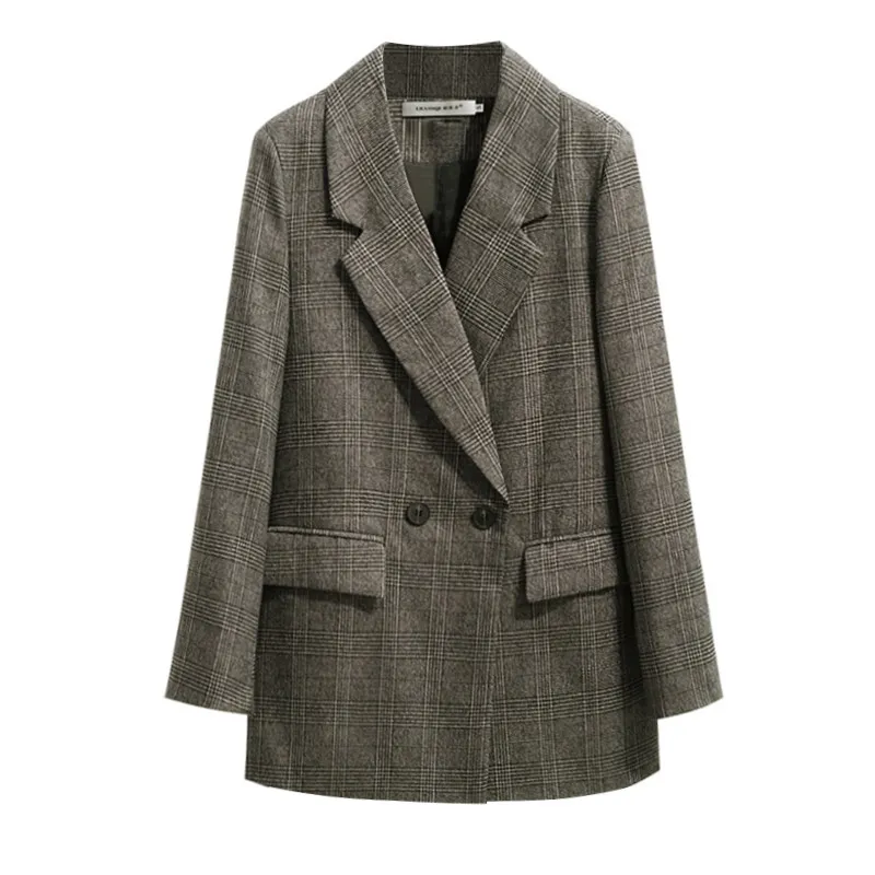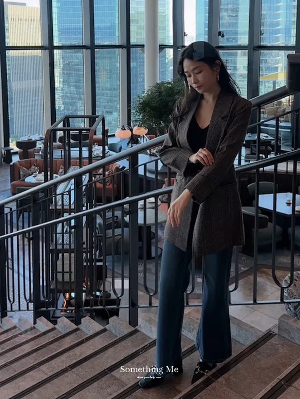 英倫秋日復古格紋西裝外套