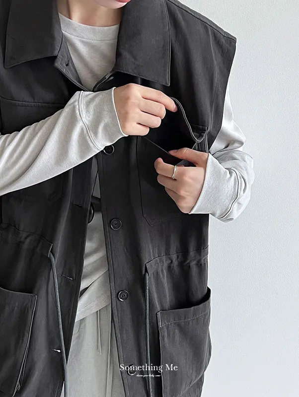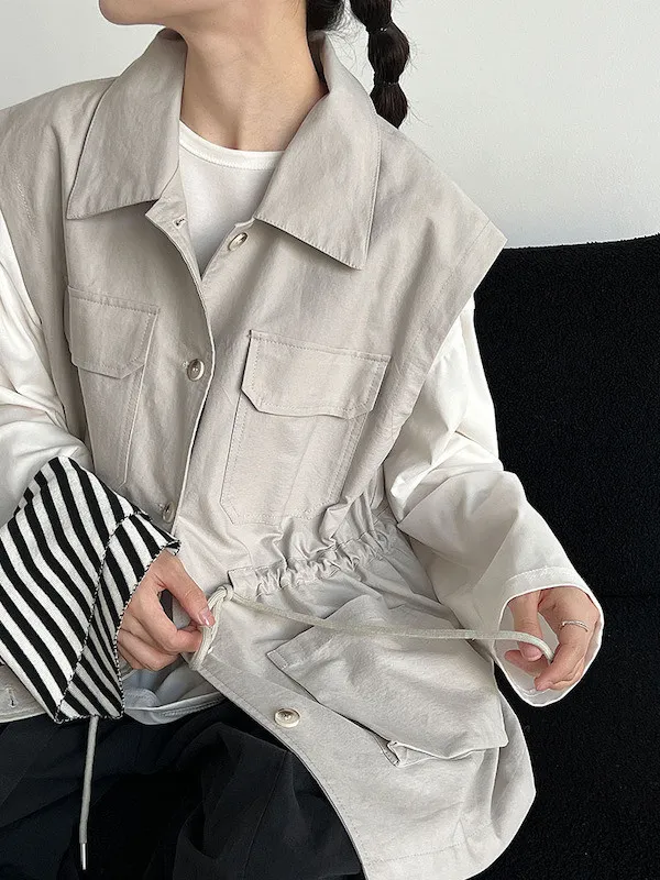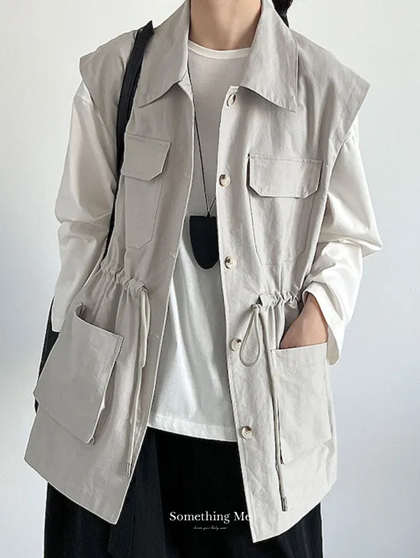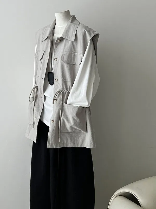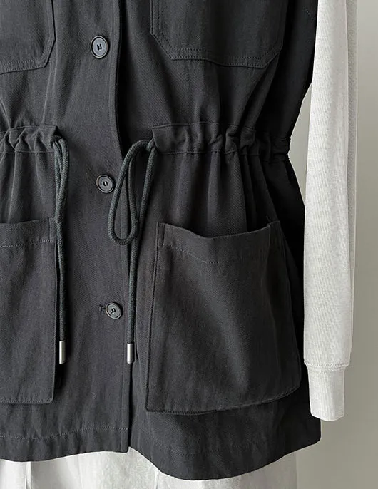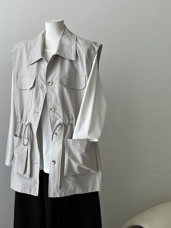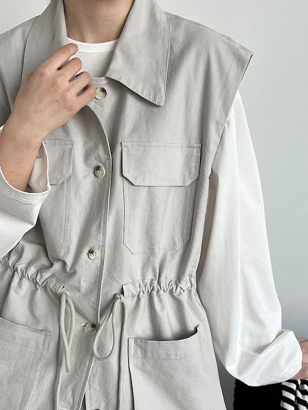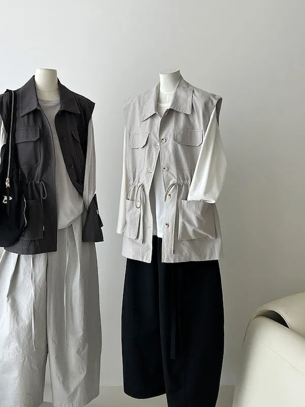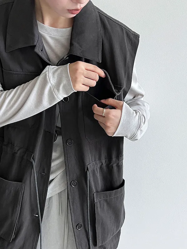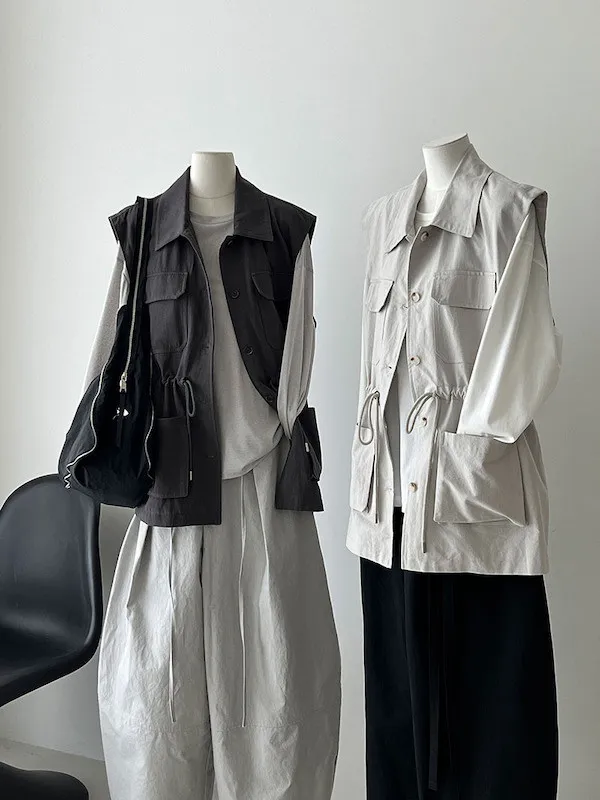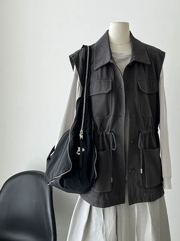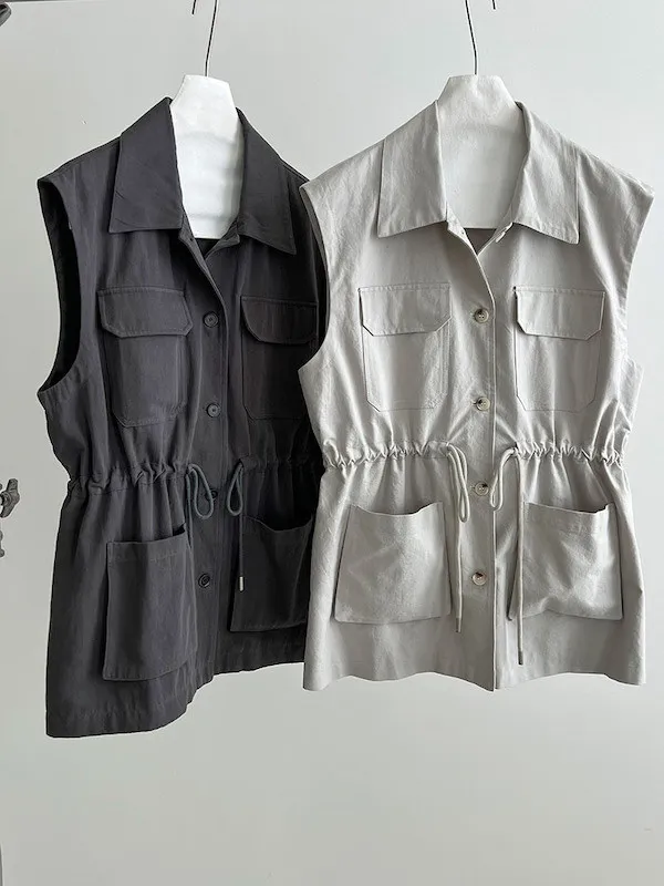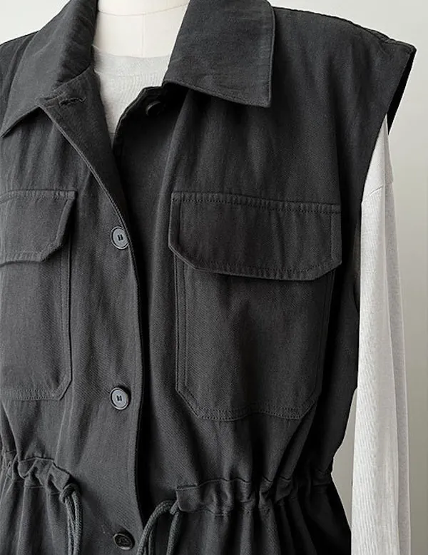 布魯克林工裝口袋束腰背心外套 2色