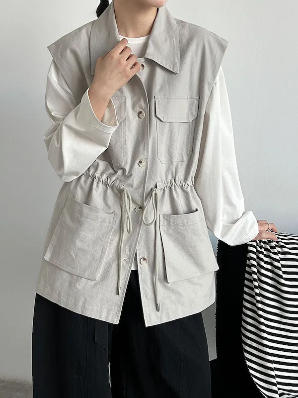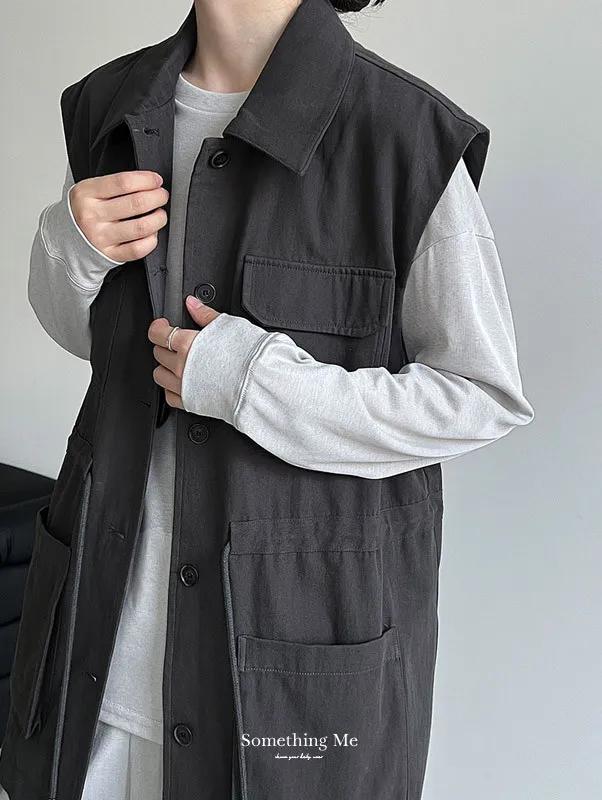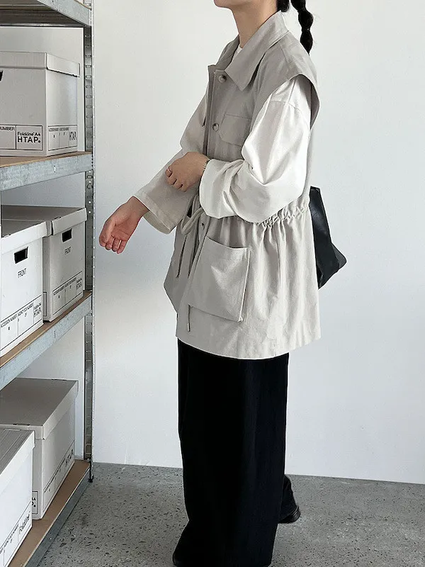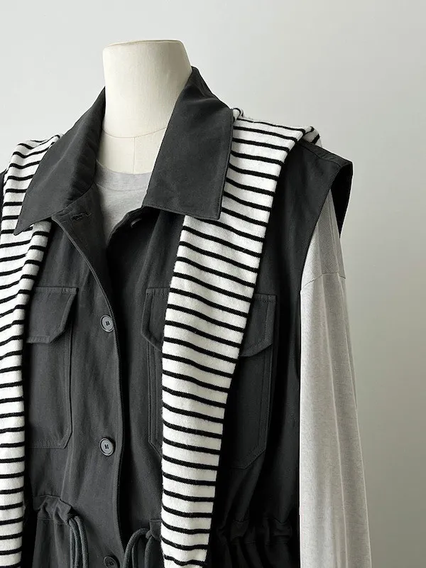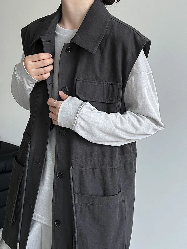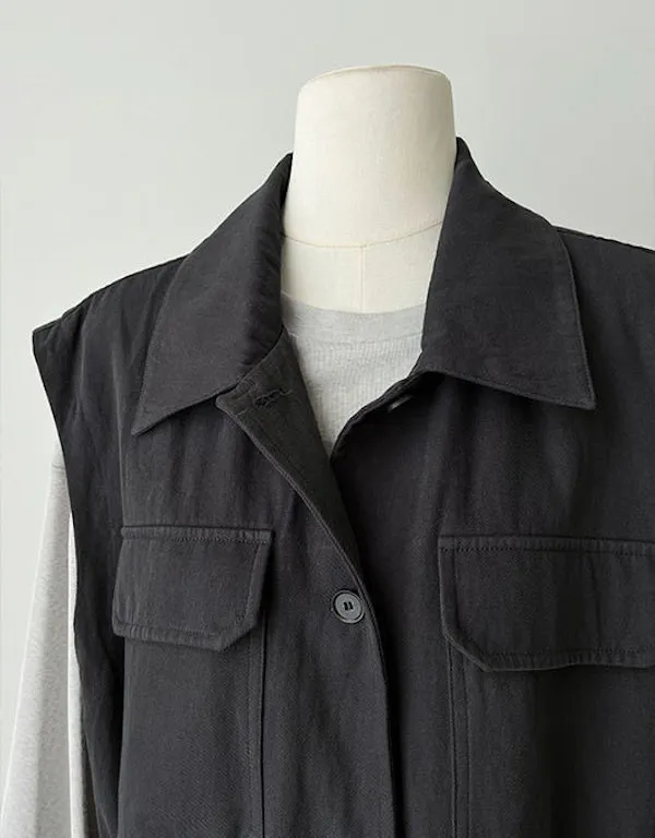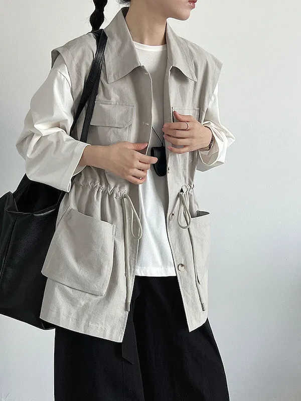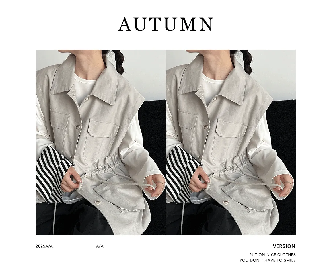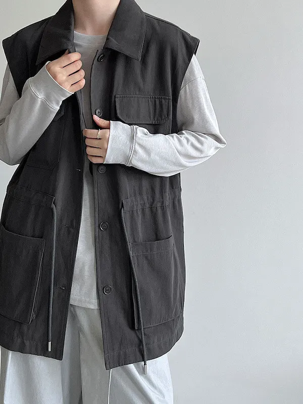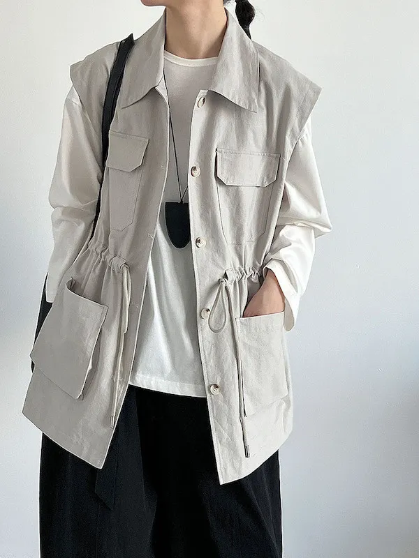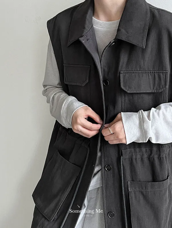 布魯克林工裝口袋束腰背心外套 2色