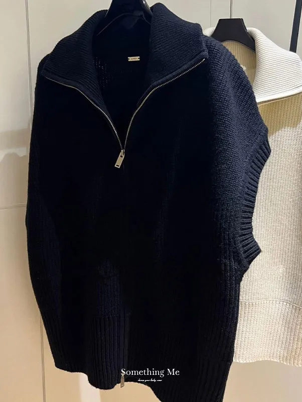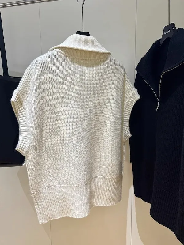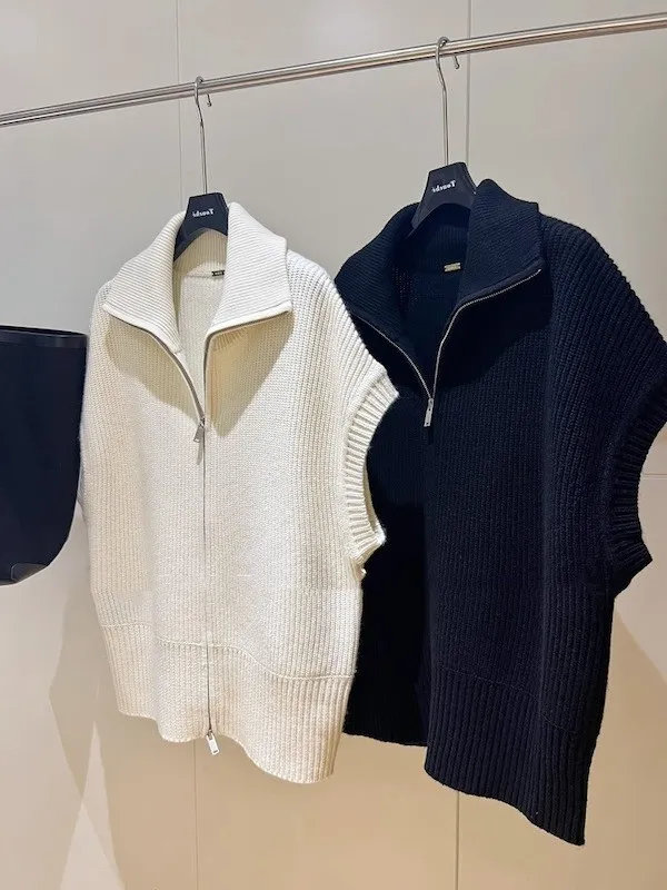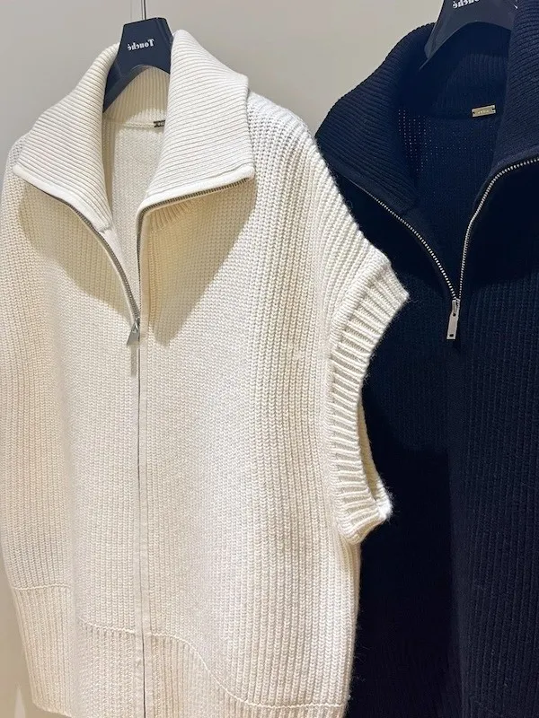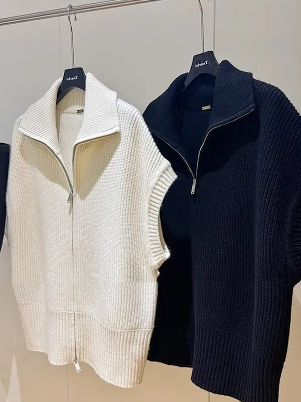 俐落個性 設計感翻領拉鍊針織背心 2色