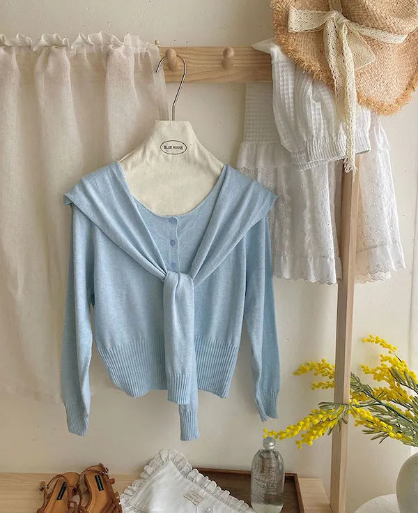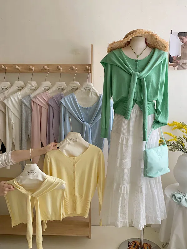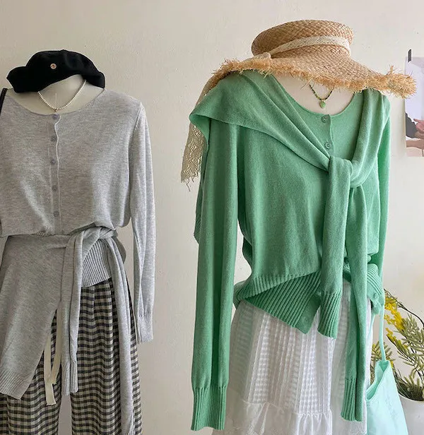 徐徐微風 輕盈針織開衫外套(附披肩) 9色