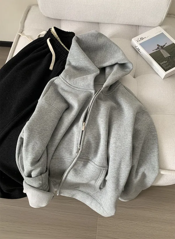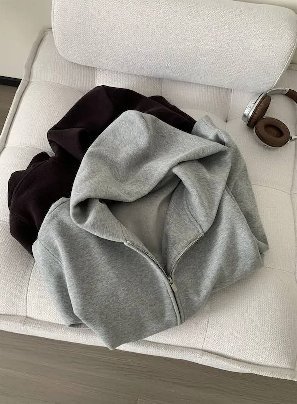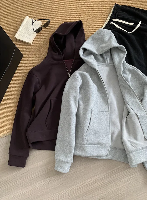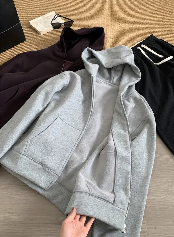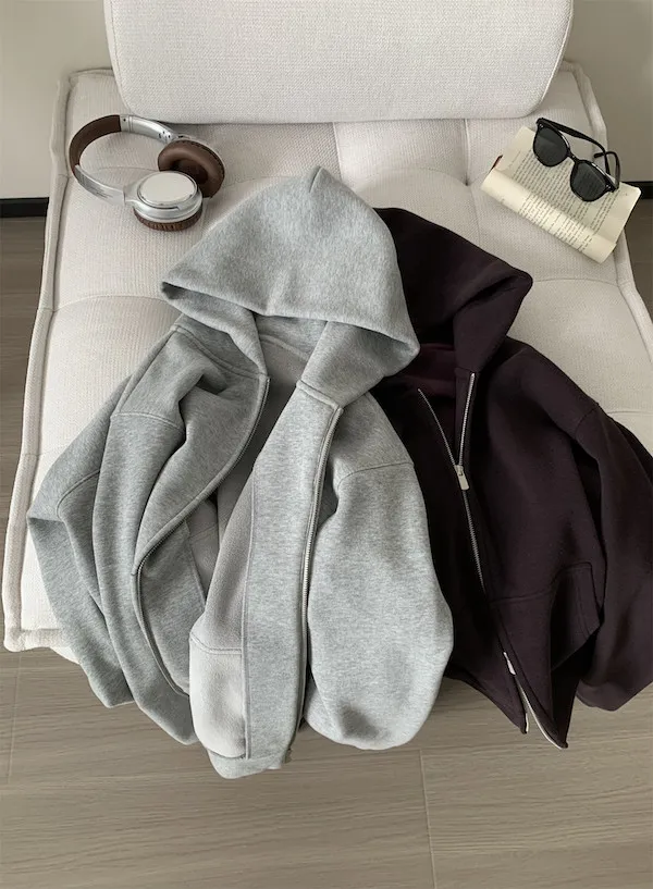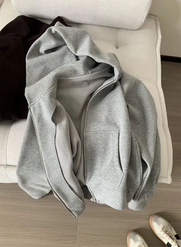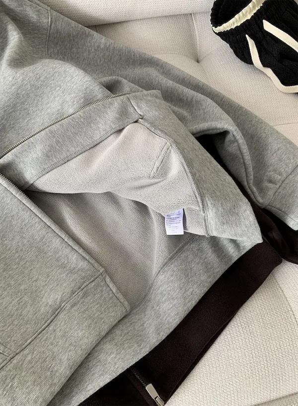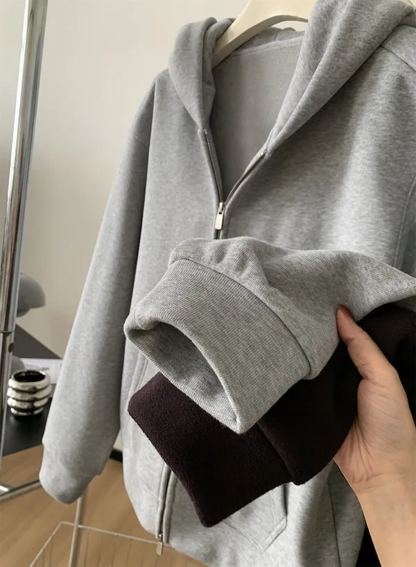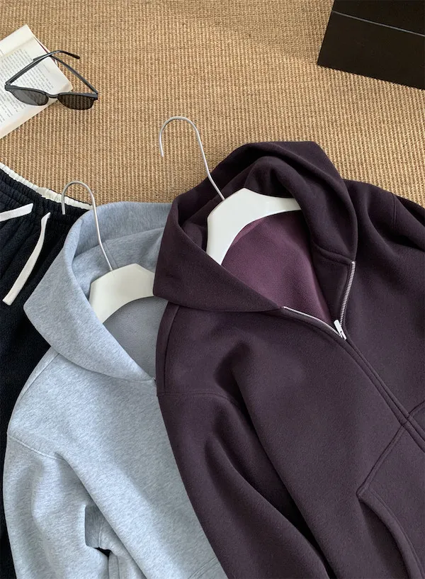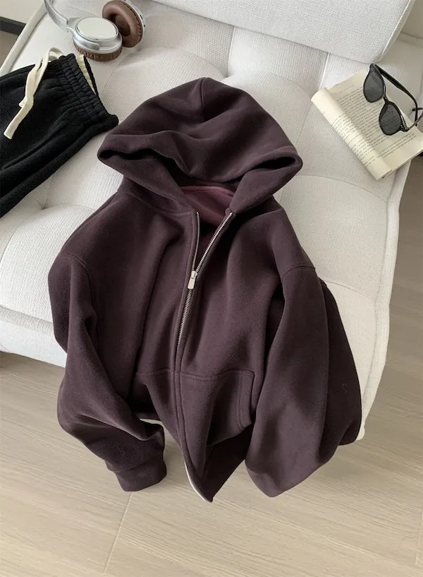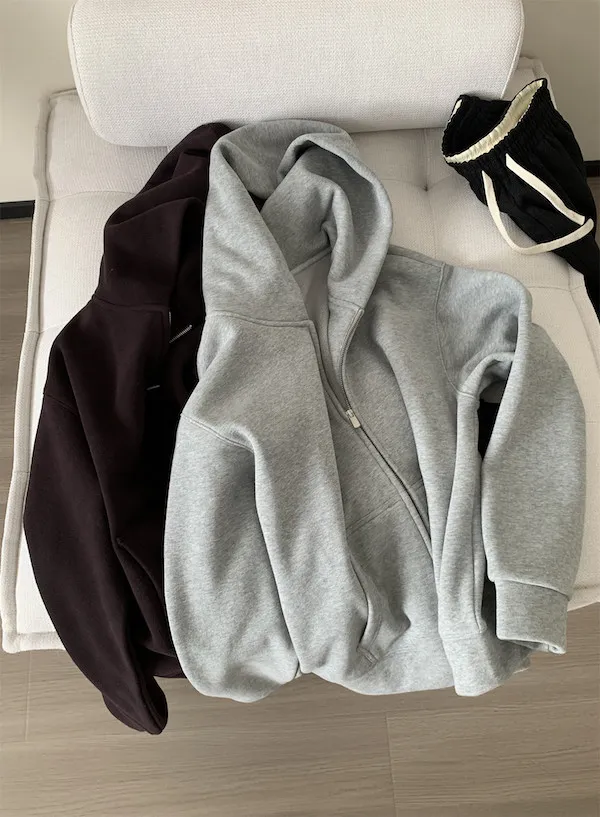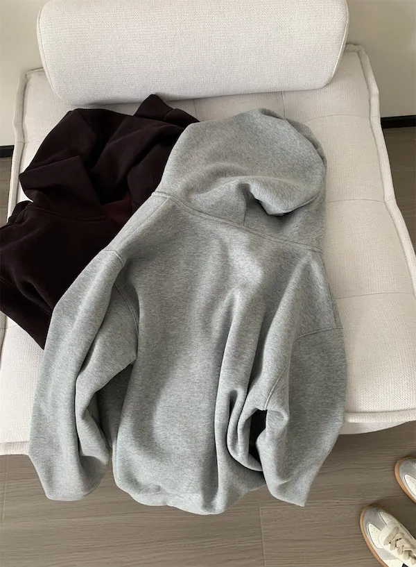 寬鬆休閒厚磅內搖粒絨連帽外套 2色