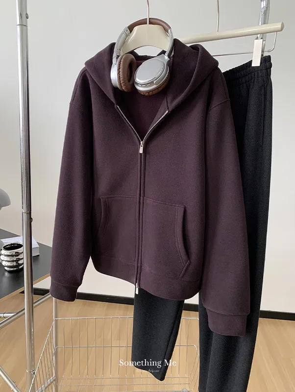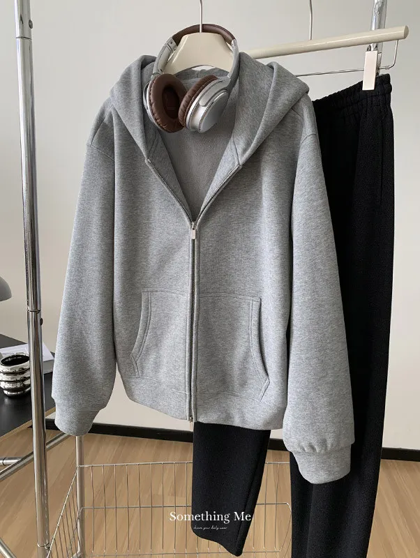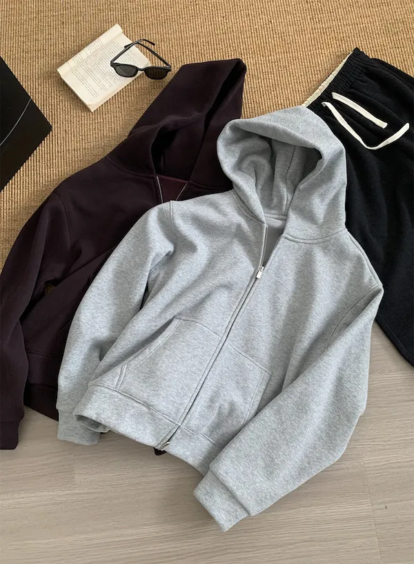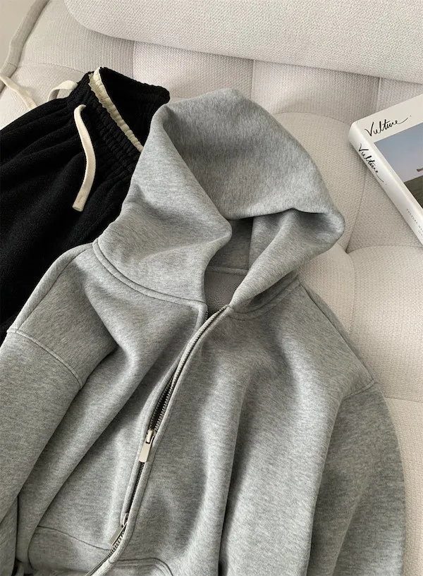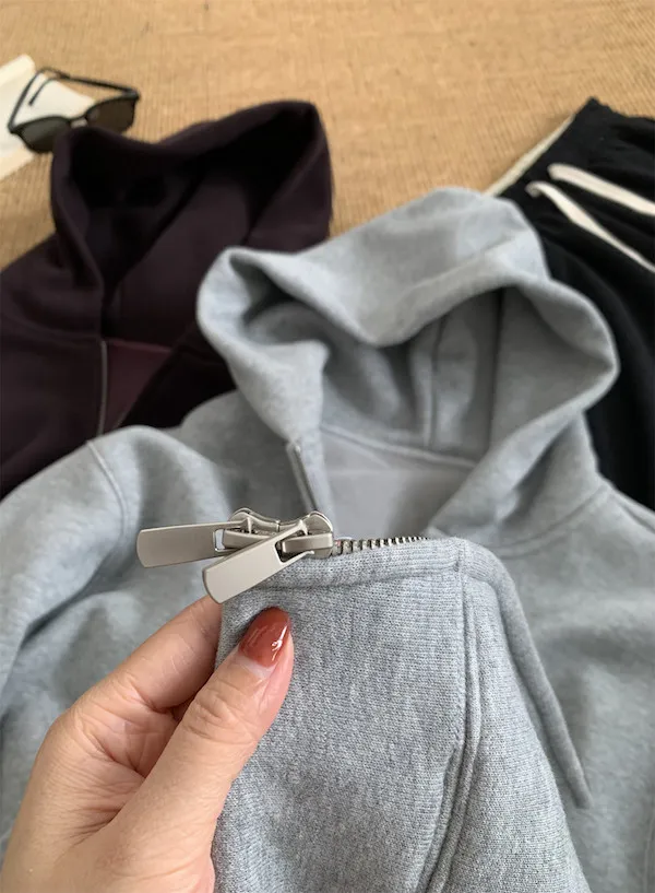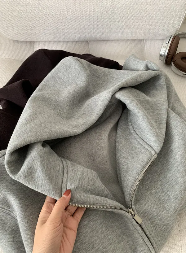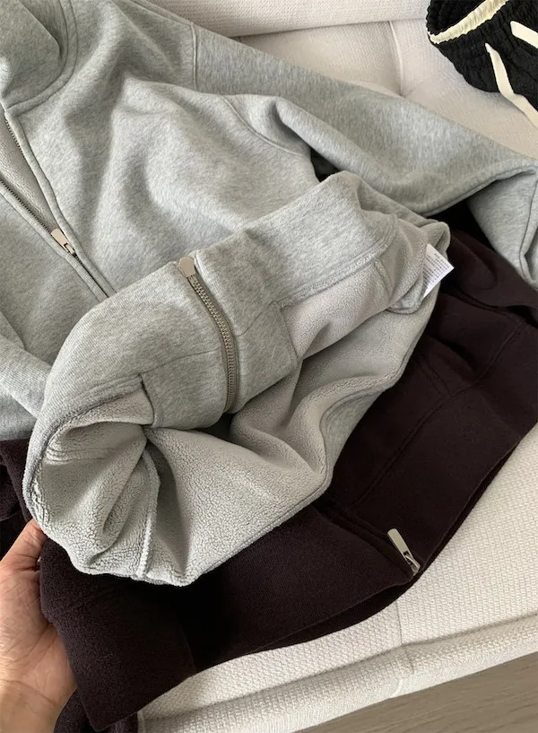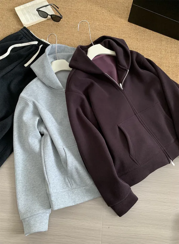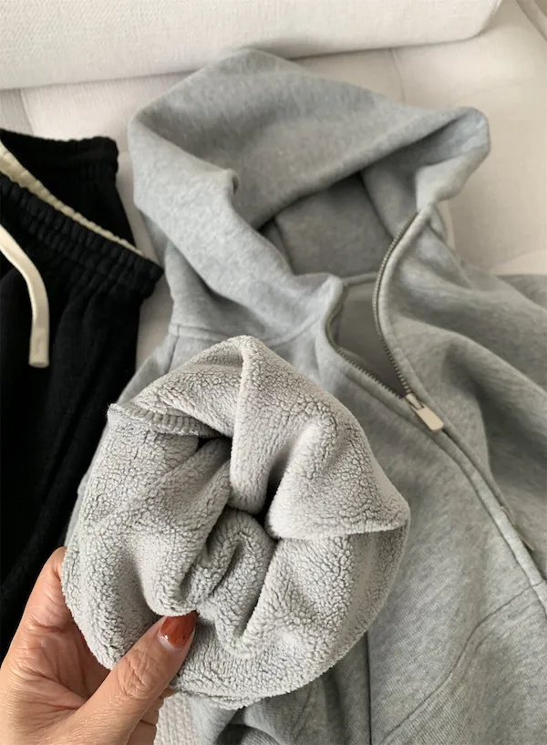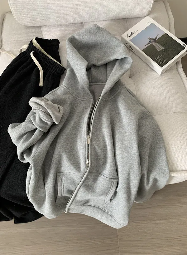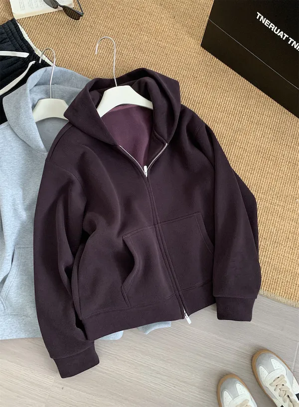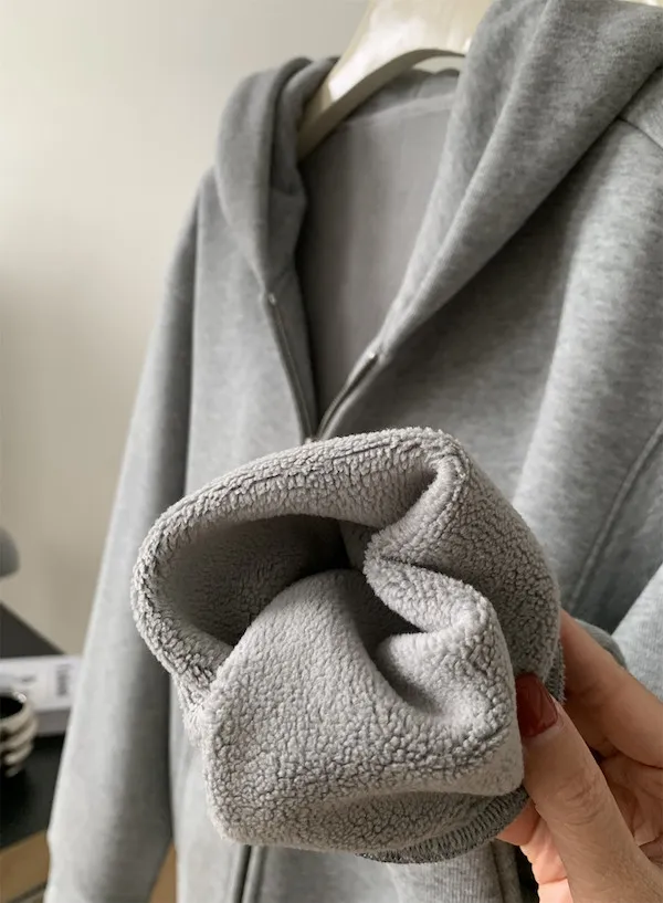 寬鬆休閒厚磅內搖粒絨連帽外套 2色