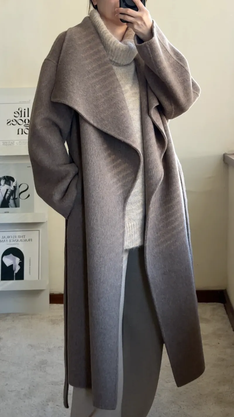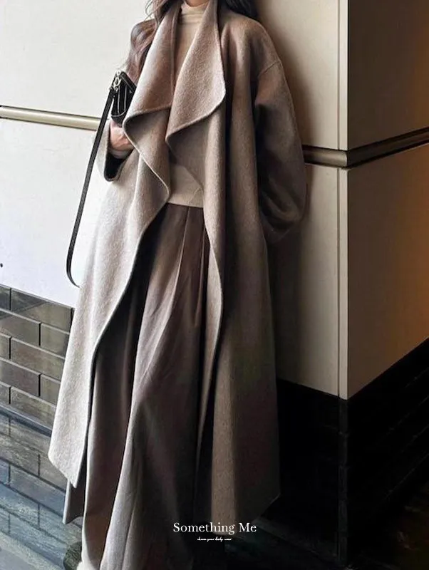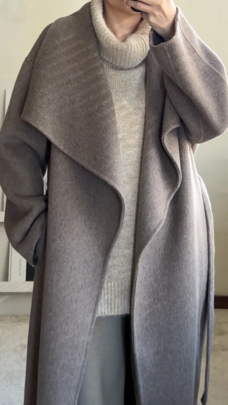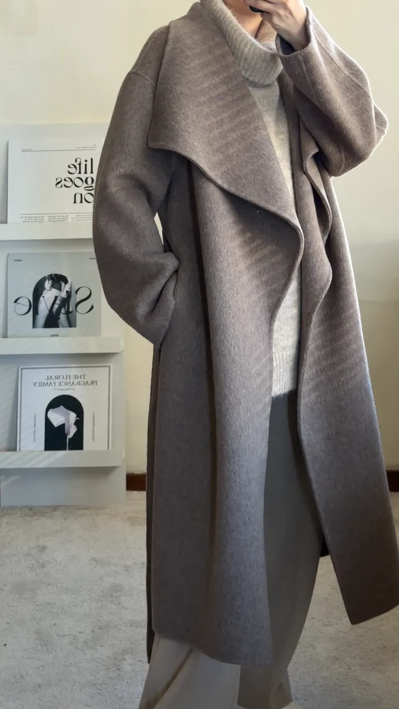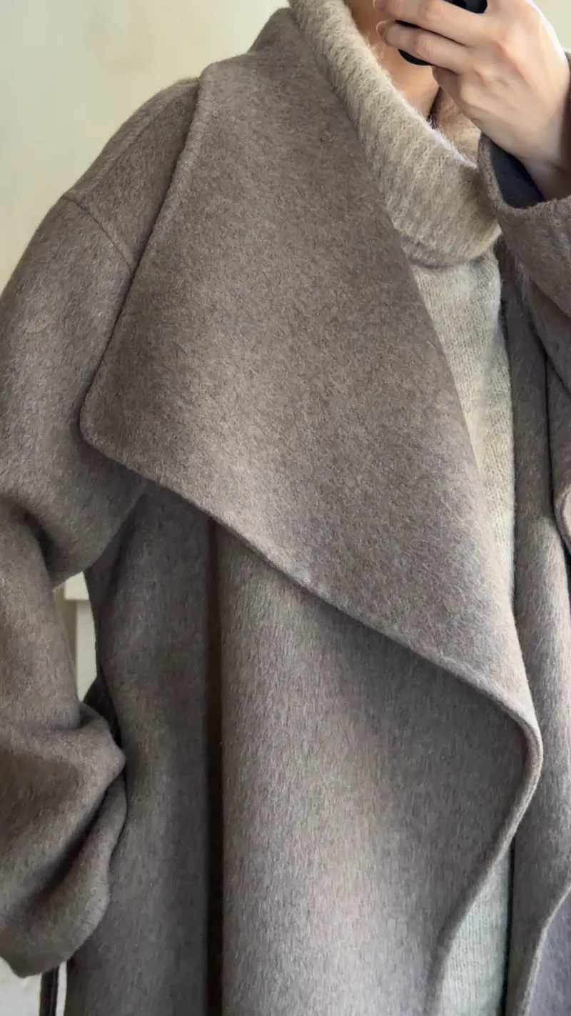 羊毛100%.都會質感羊絨翻領大衣 2色
