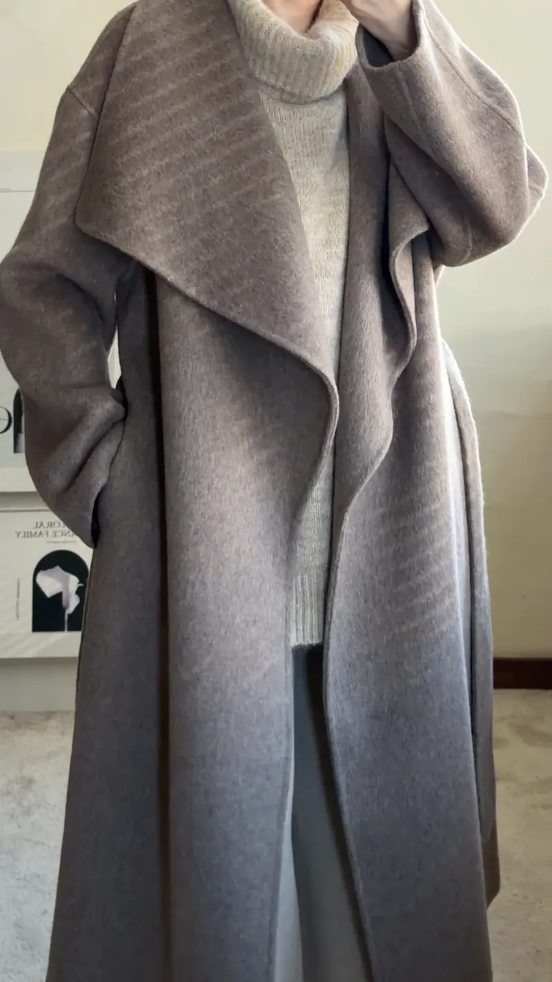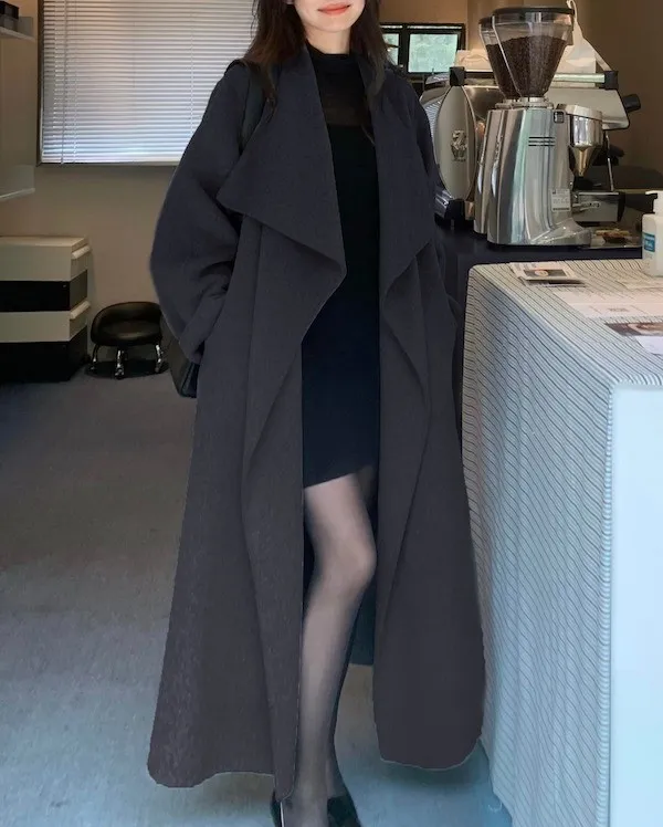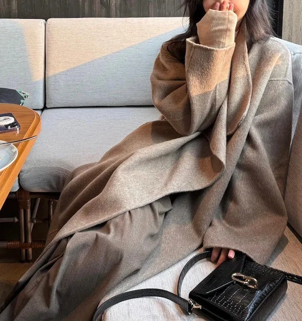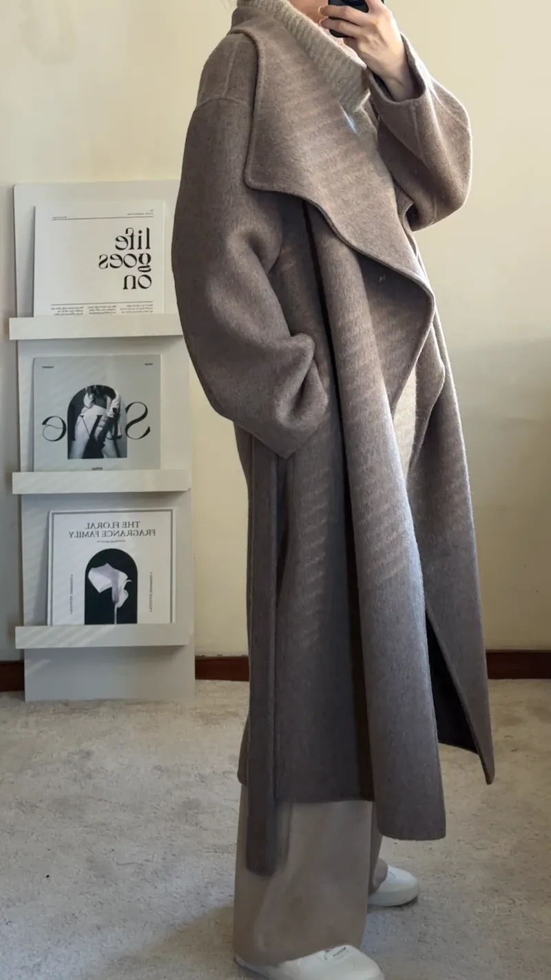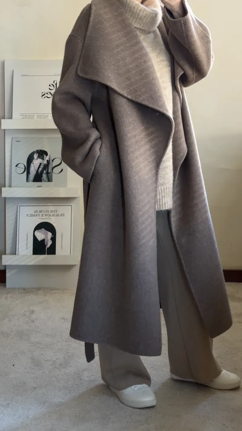 羊毛100%.都會質感羊絨翻領大衣 2色
