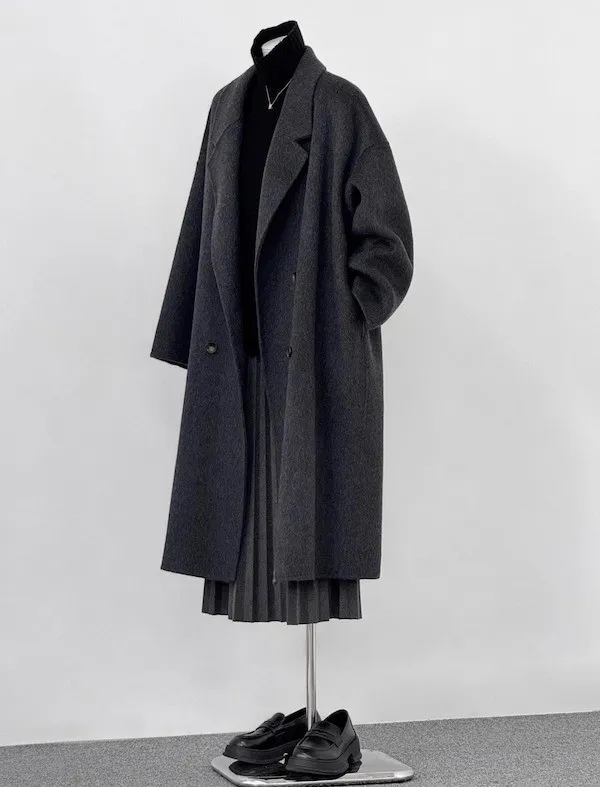 羊毛100%.極簡俐落雙面羊絨大衣 4色