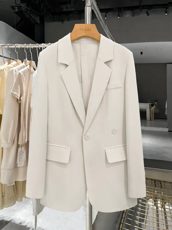 雅緻米白俐落後開衩西裝外套