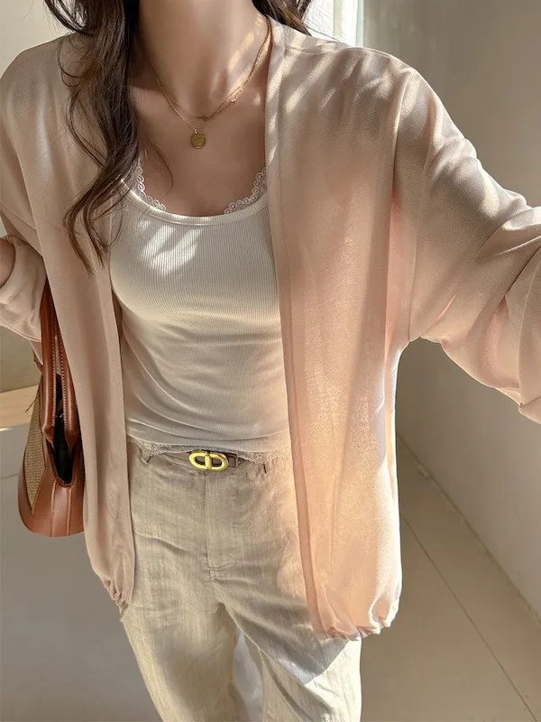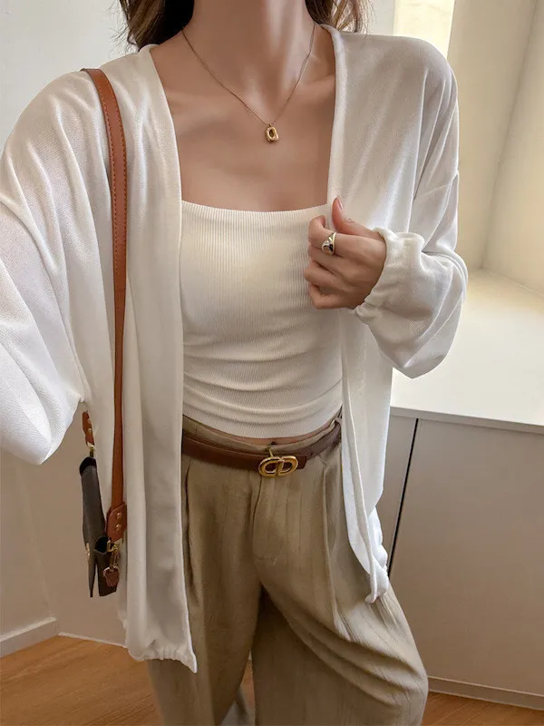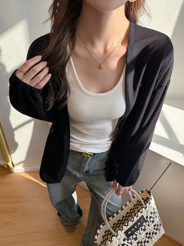簡約輕薄寬鬆開襟針織外套 3色