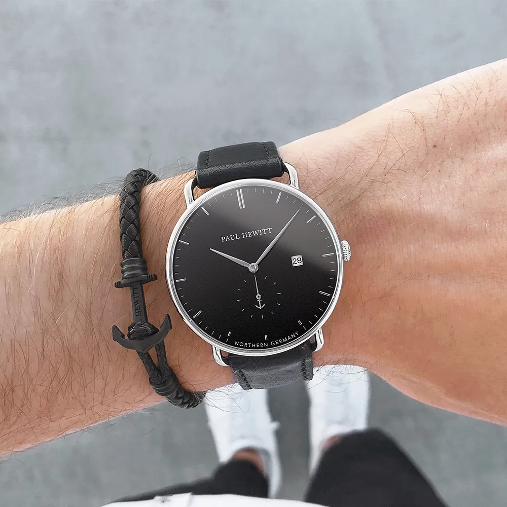 Paul Hewitt 手環 - Phreps Lite單環皮革編織 (霧黑/黑)