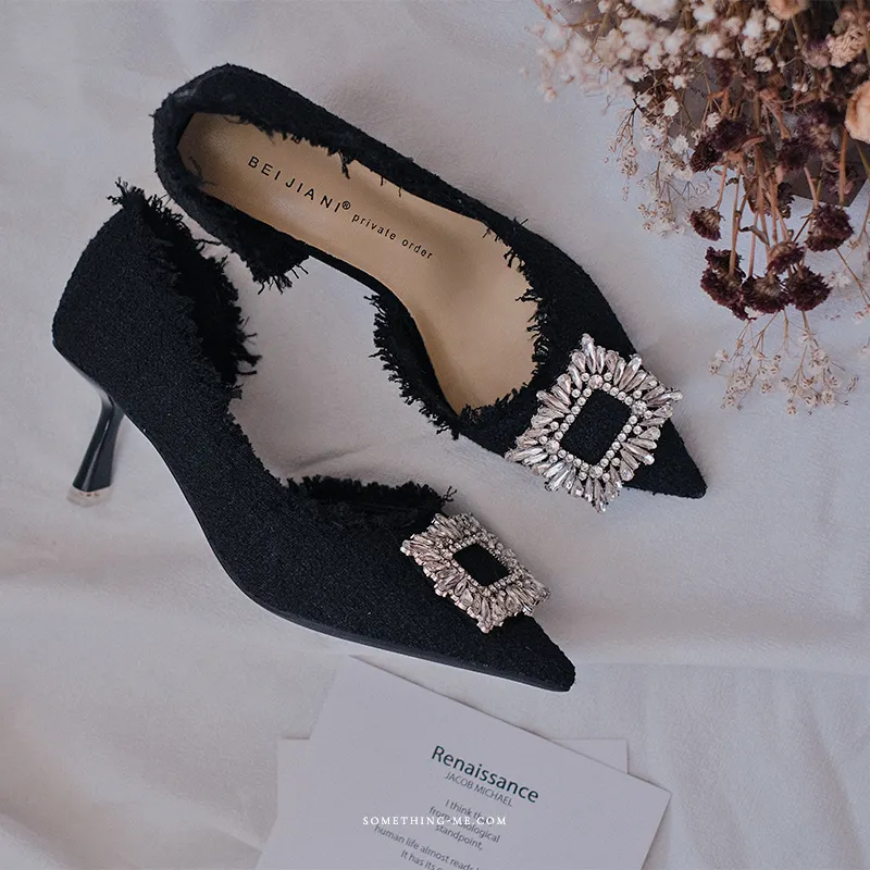 SF230202巴洛克方鑽小香流蘇跟鞋