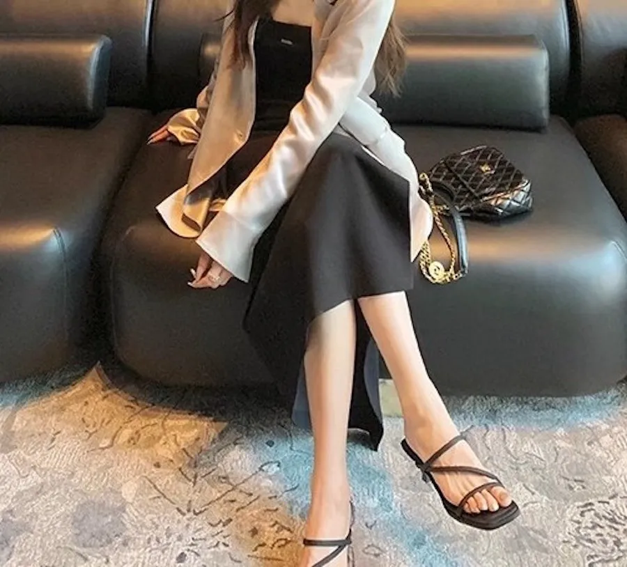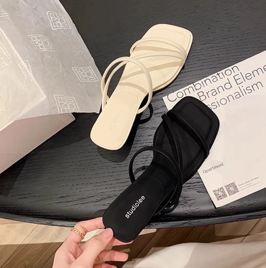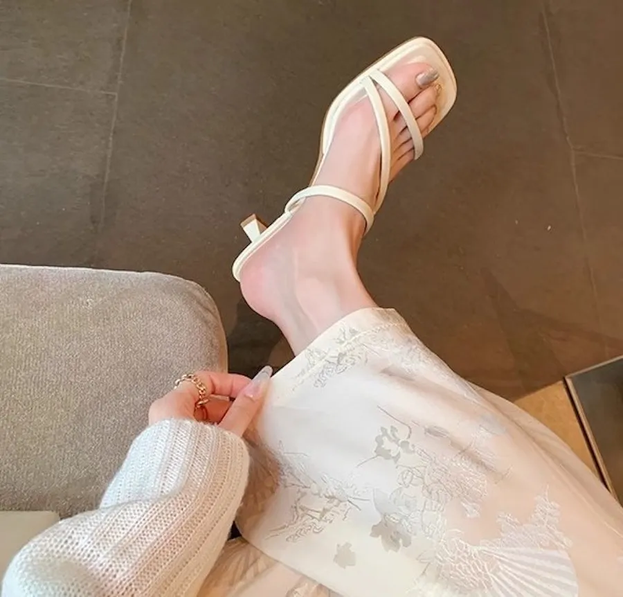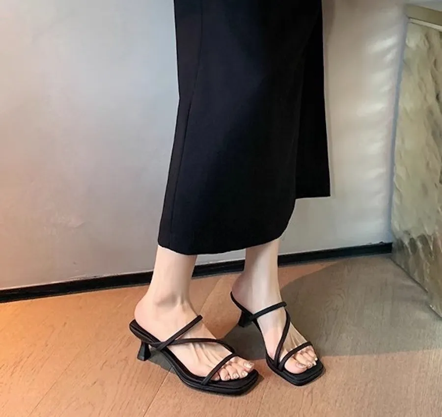 極簡優雅細帶高跟拖鞋 2色