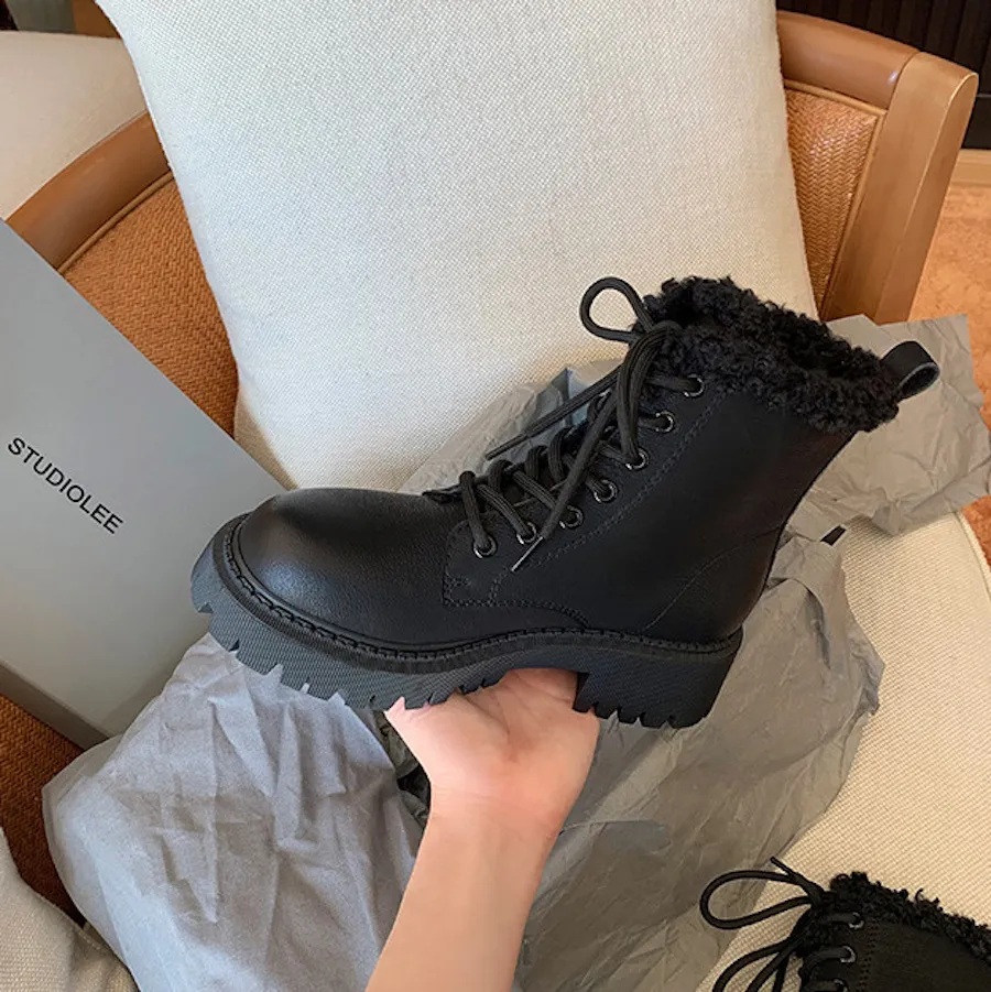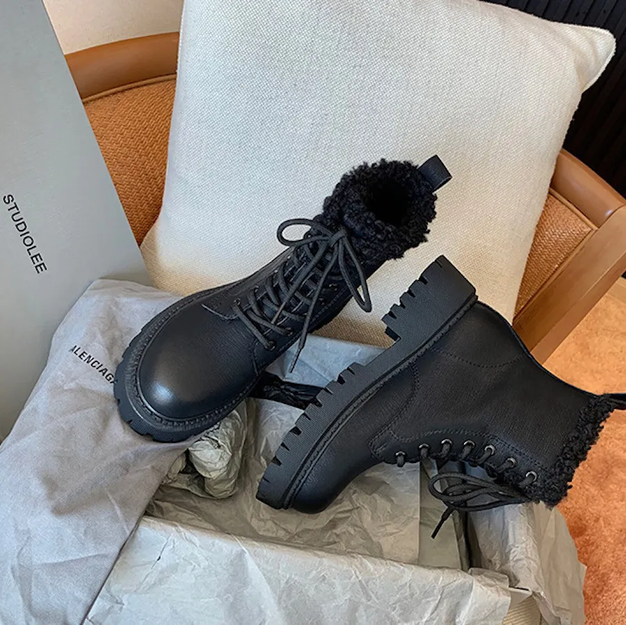 SF241010 冬日暖靴英倫厚底馬丁靴