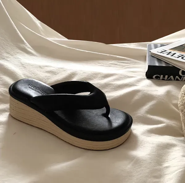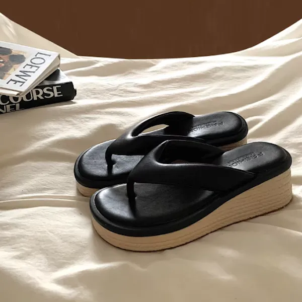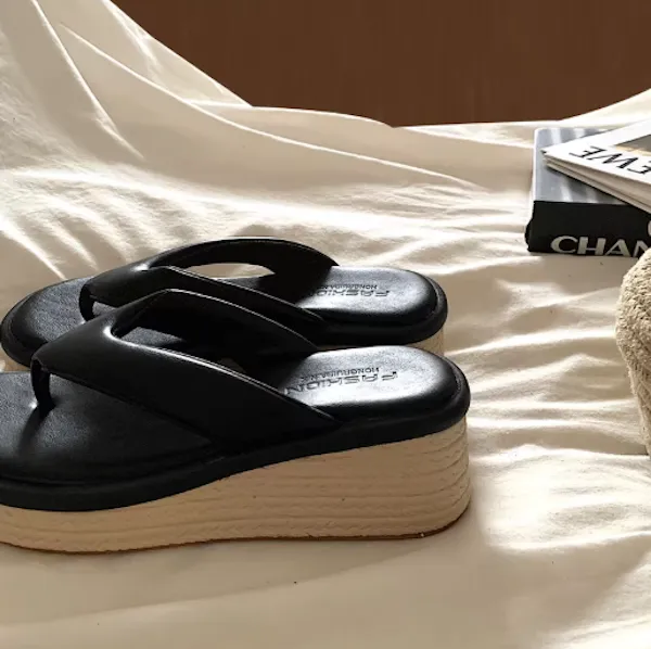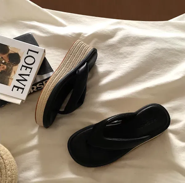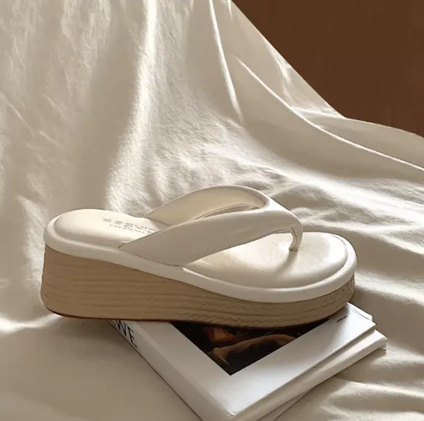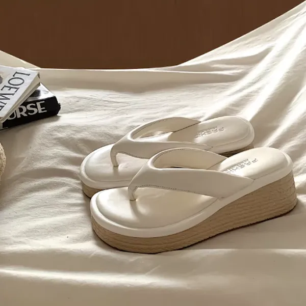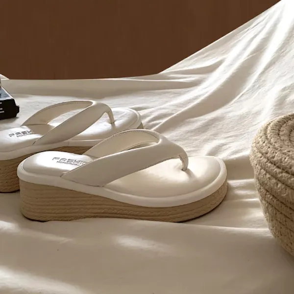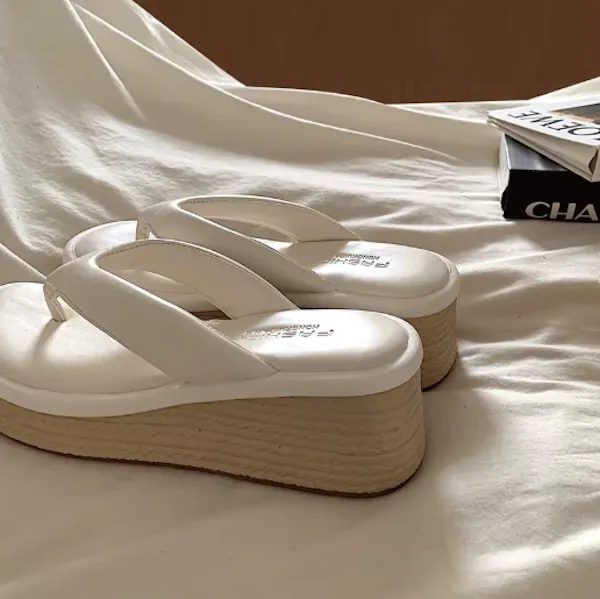 海邊渡假 小個子增高草編厚底拖鞋 2色