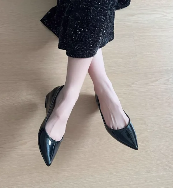 優雅光澤 3公分小粗跟尖頭鞋 2色