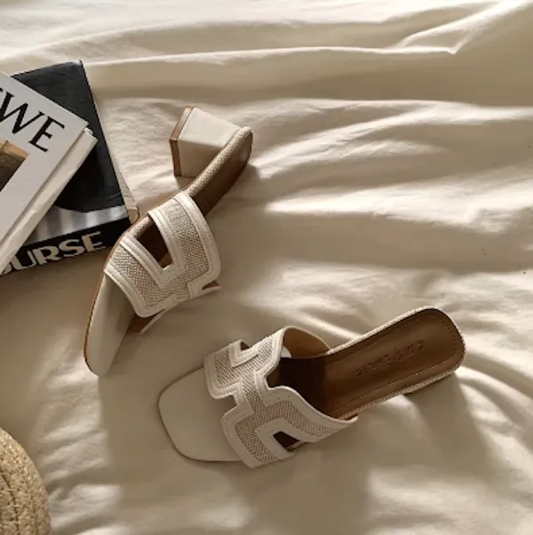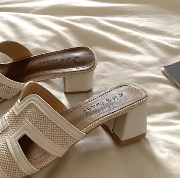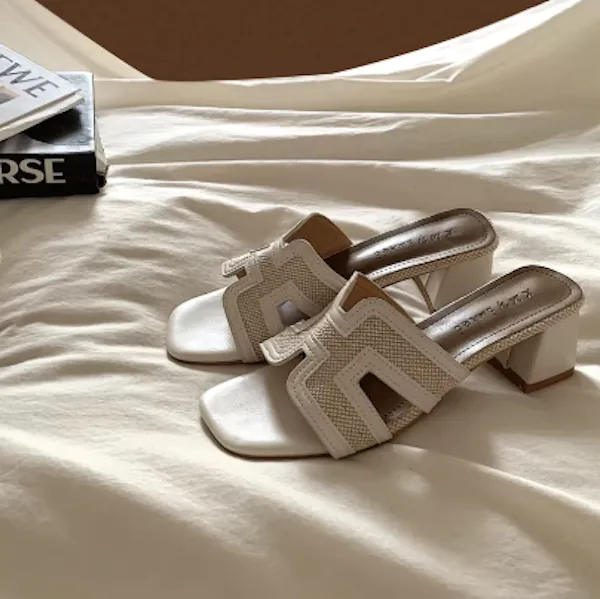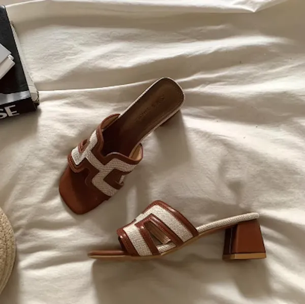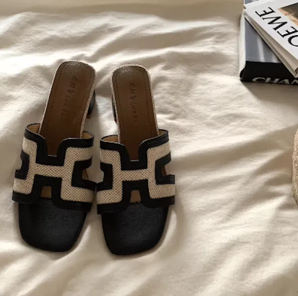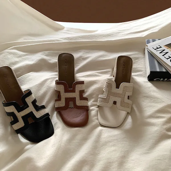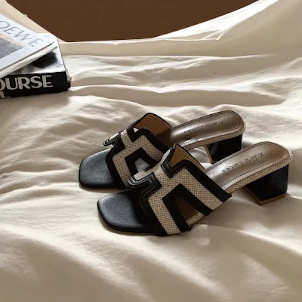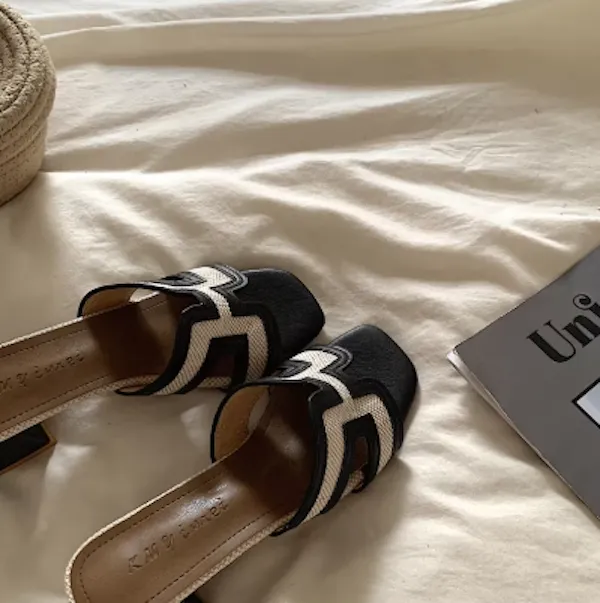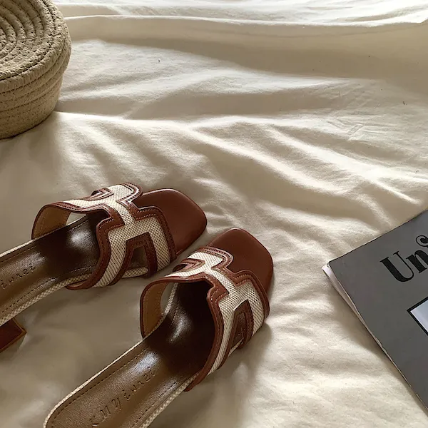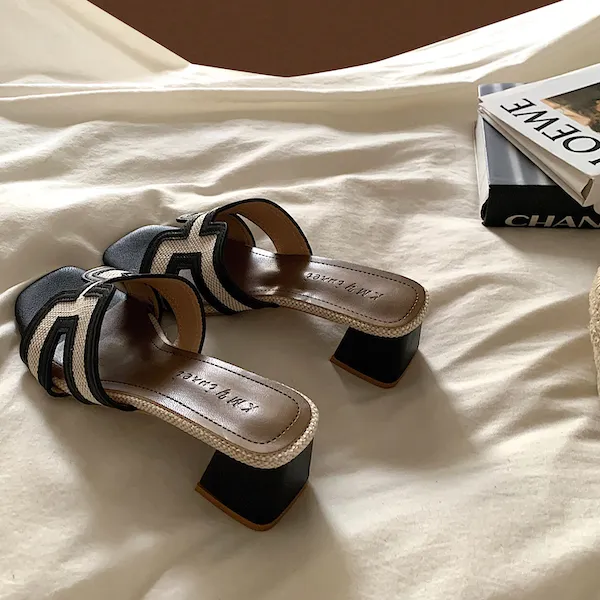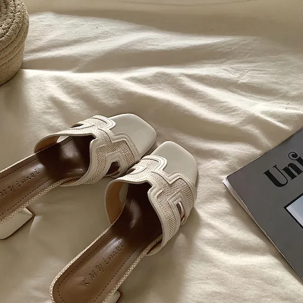 古典優雅 皮革編織粗跟拖鞋 3色