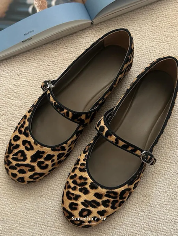 氣質小野貓 一字扣豹紋瑪麗珍鞋