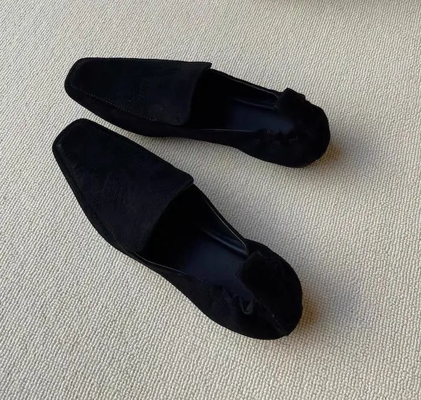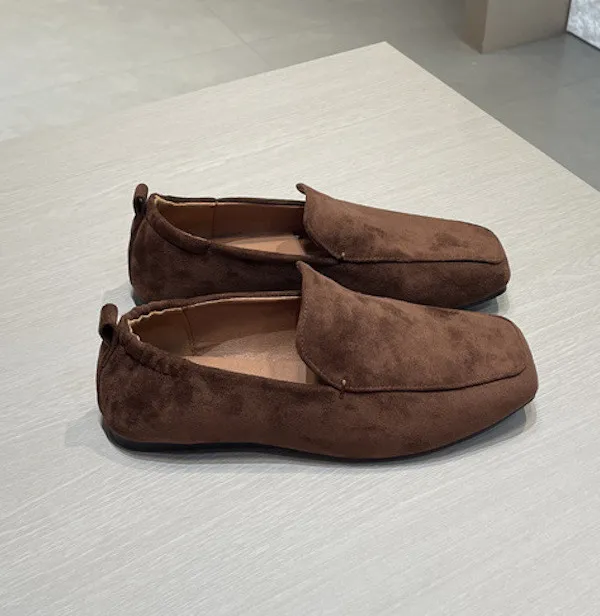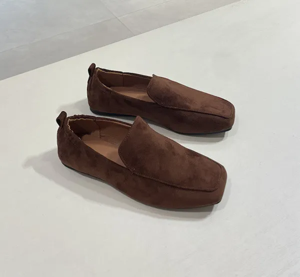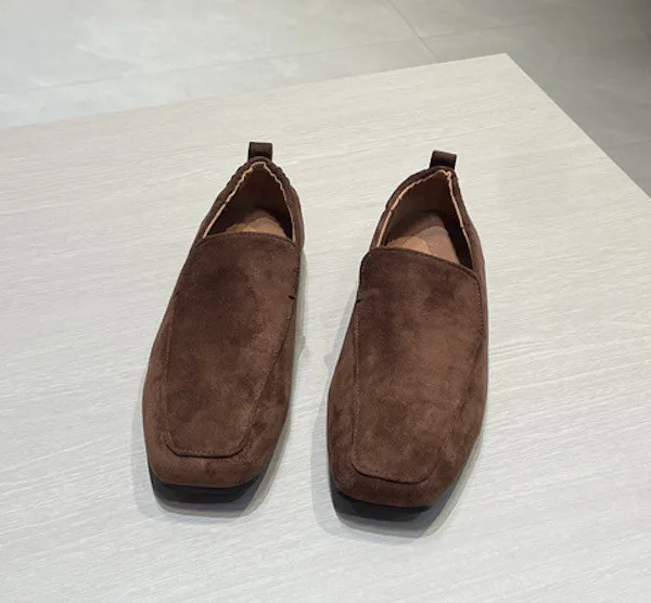 漫步巷弄 方頭麂皮平底穆勒鞋 2色