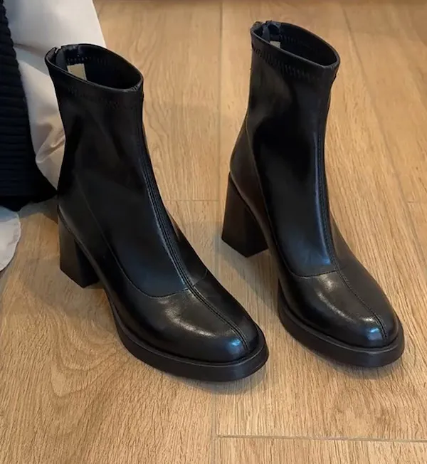 法式絕美彈力羊皮厚底短靴