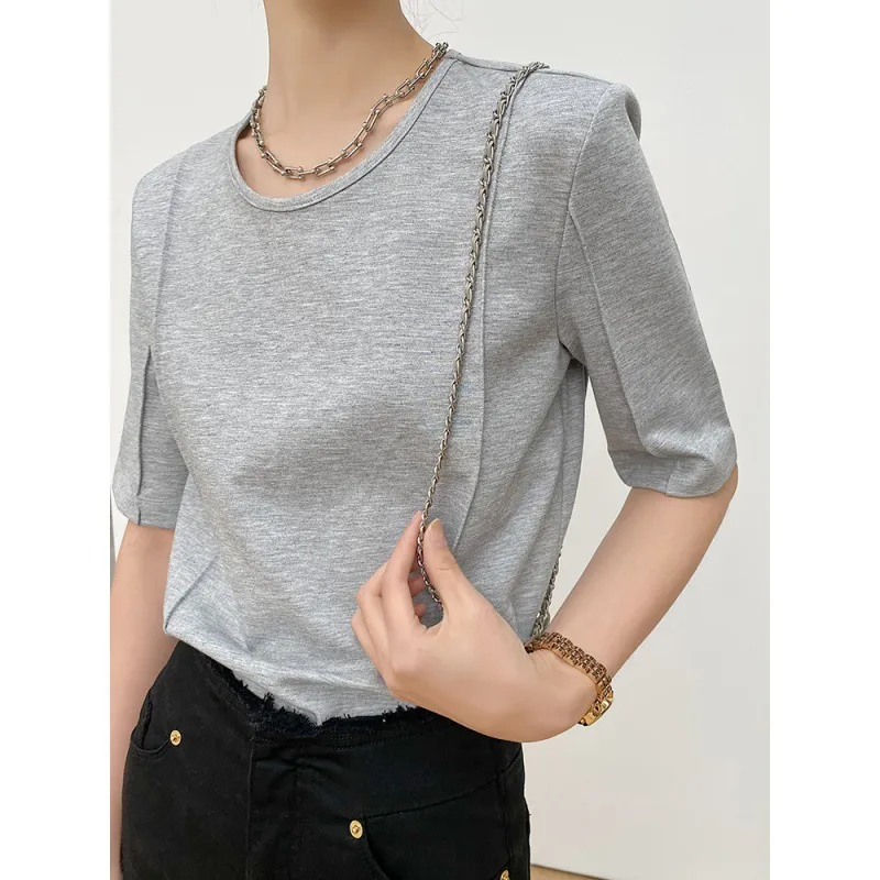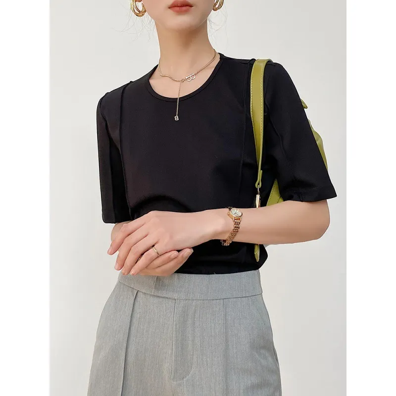 壓摺設計半袖Tee 2色