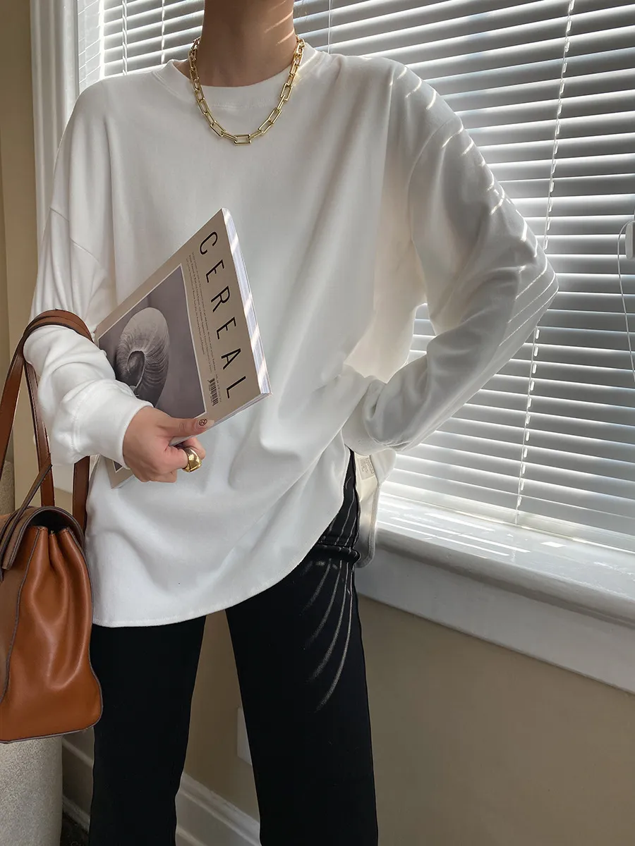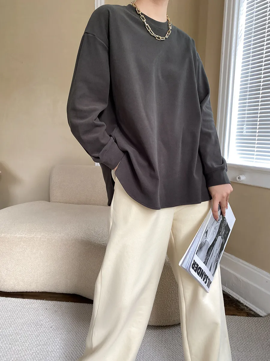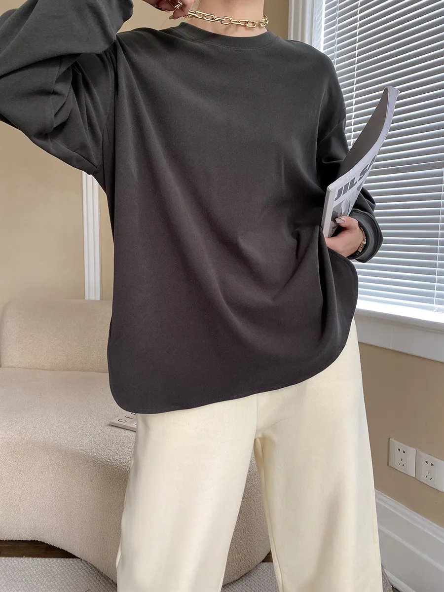 大寬鬆細膩磨毛廓形長袖Tee 3色