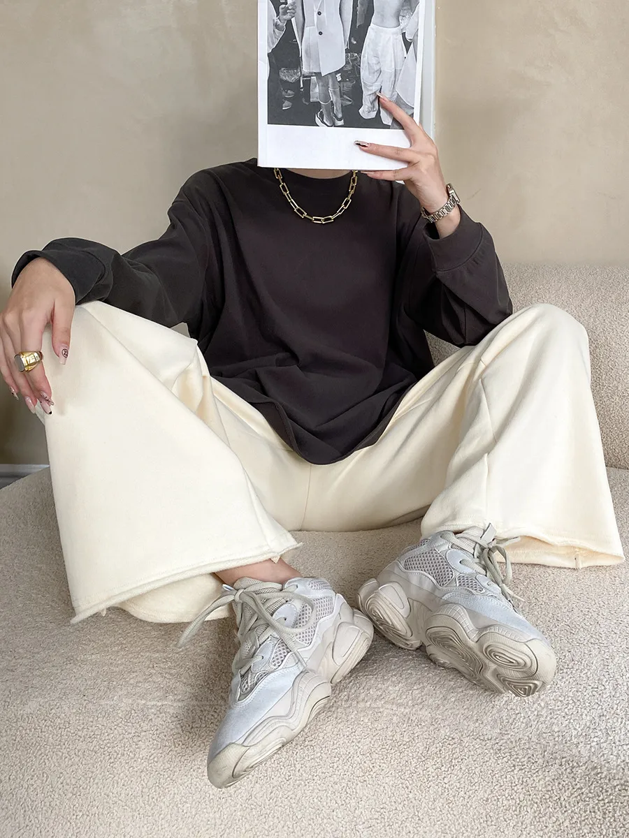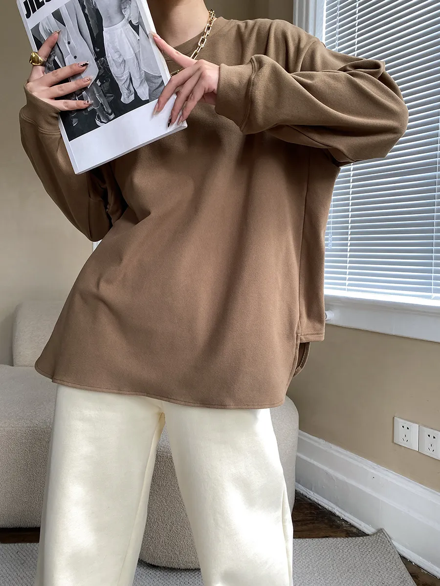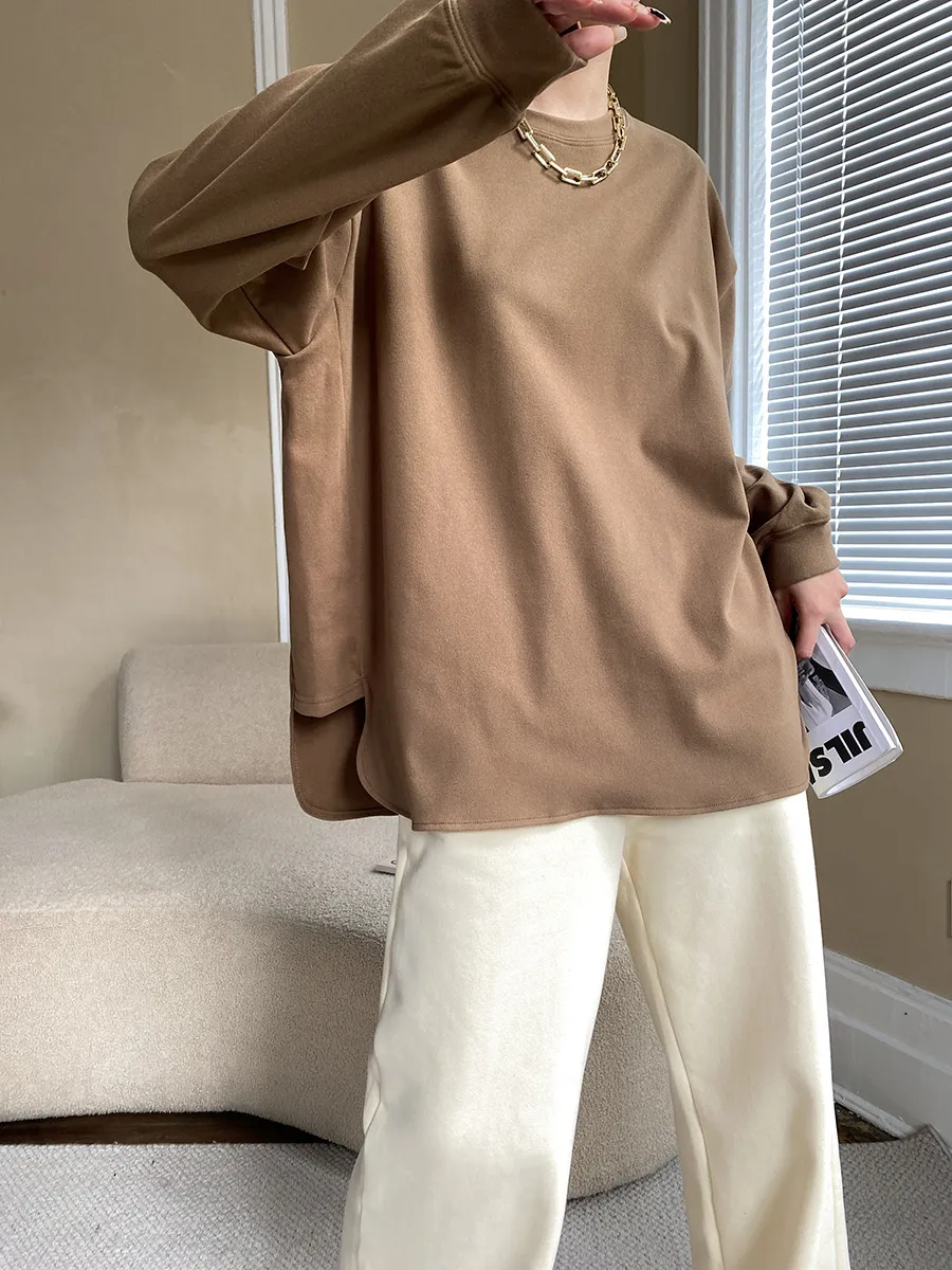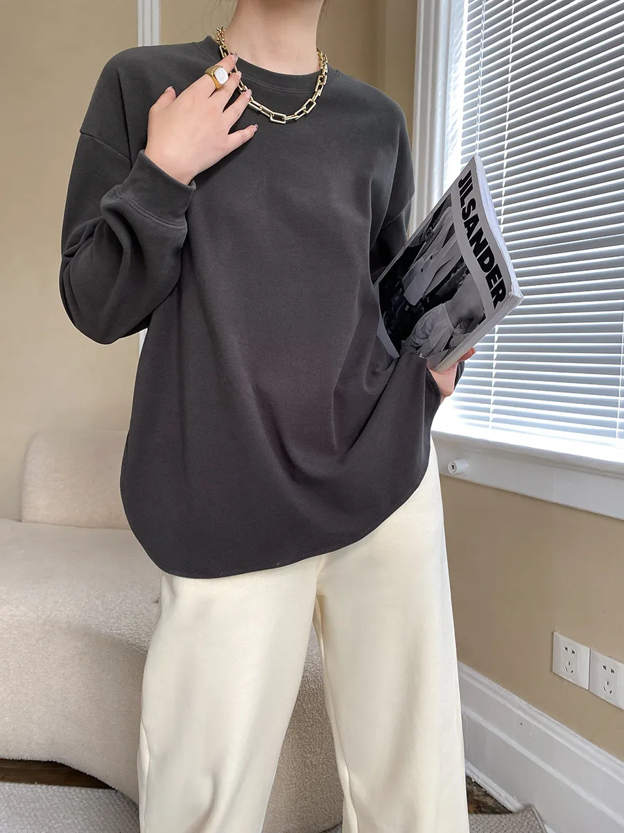 大寬鬆細膩磨毛廓形長袖Tee 3色