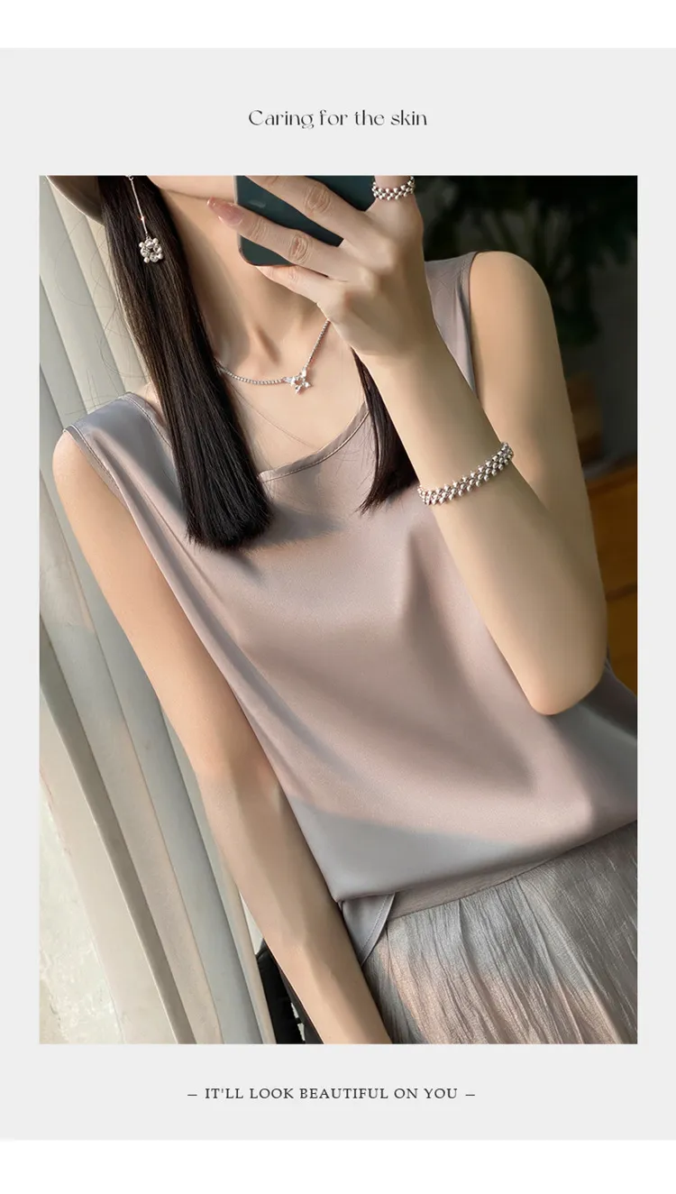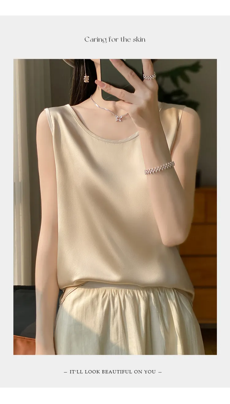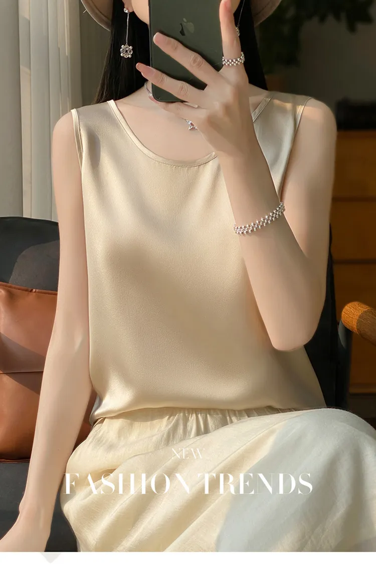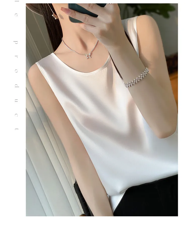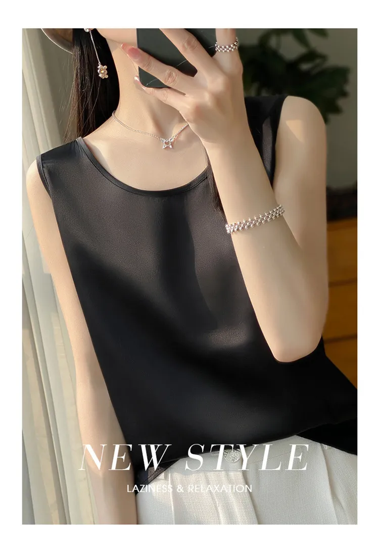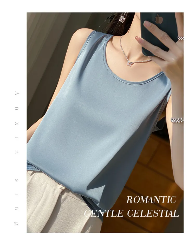 TE240425 靜奢系列絲滑輕柔緞面圓領背心