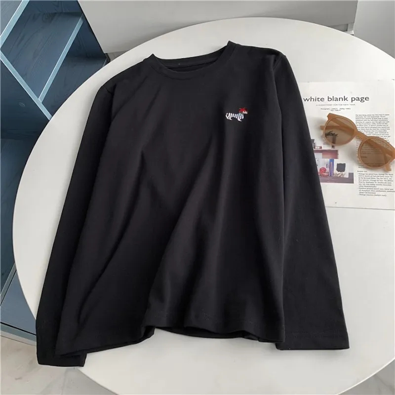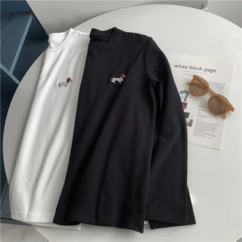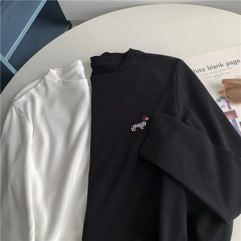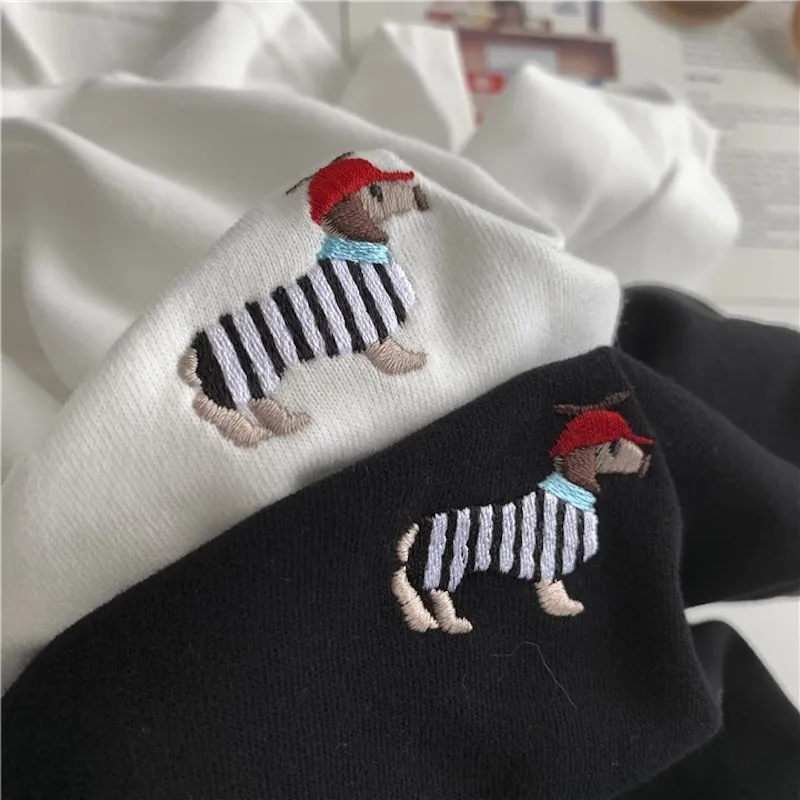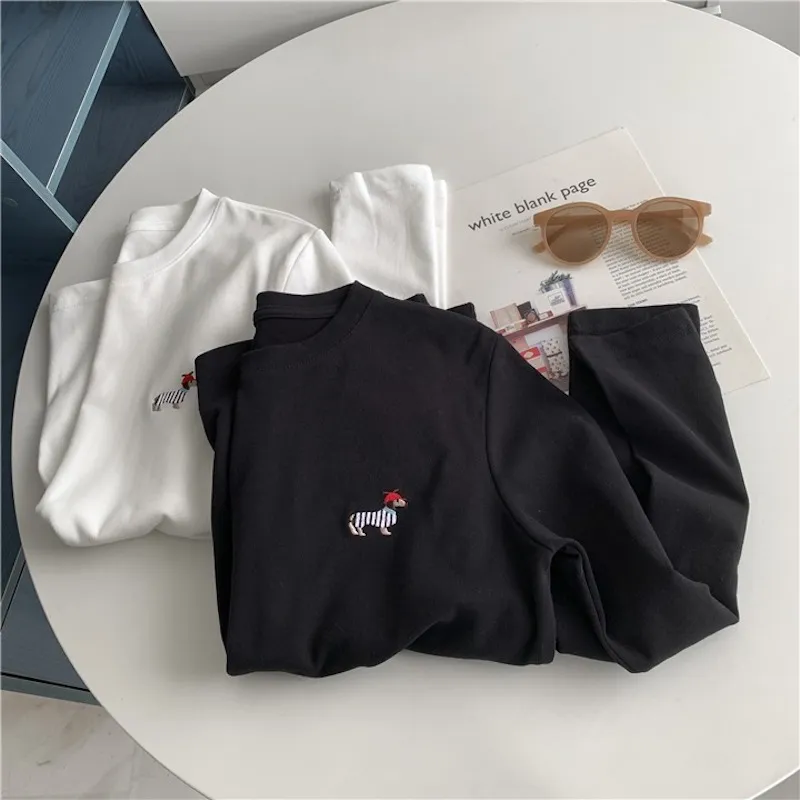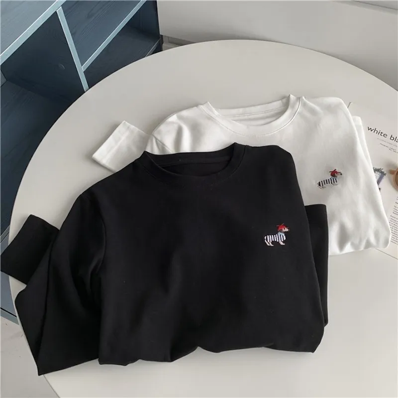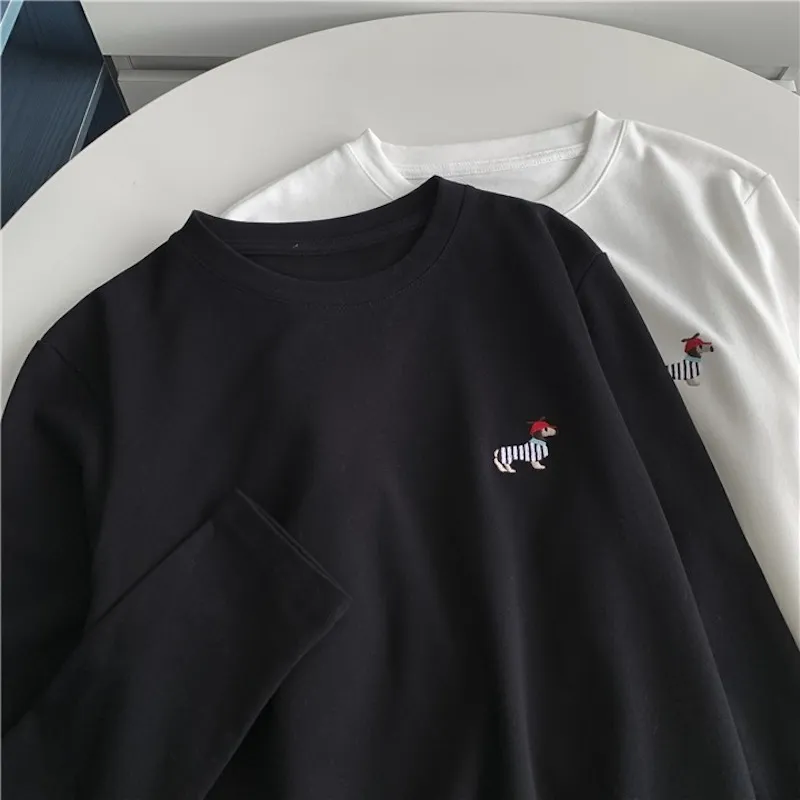 漫趣柔語.卡通狗狗刺繡磨毛長袖T恤 2色