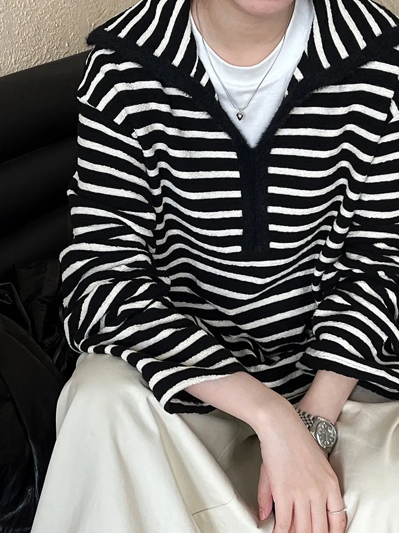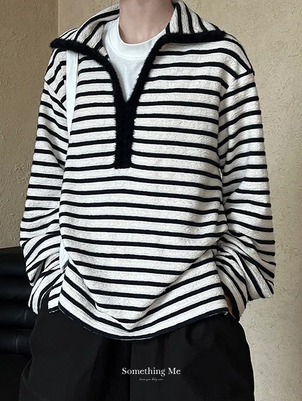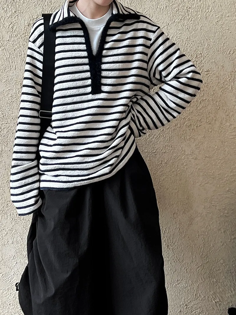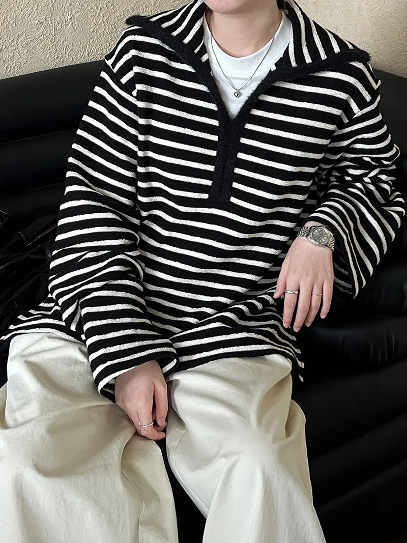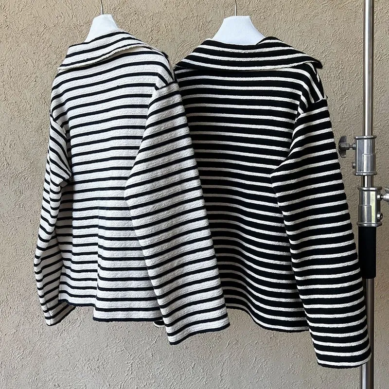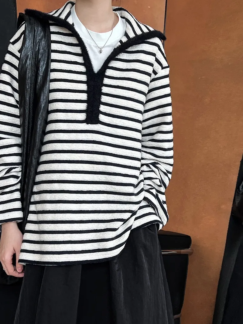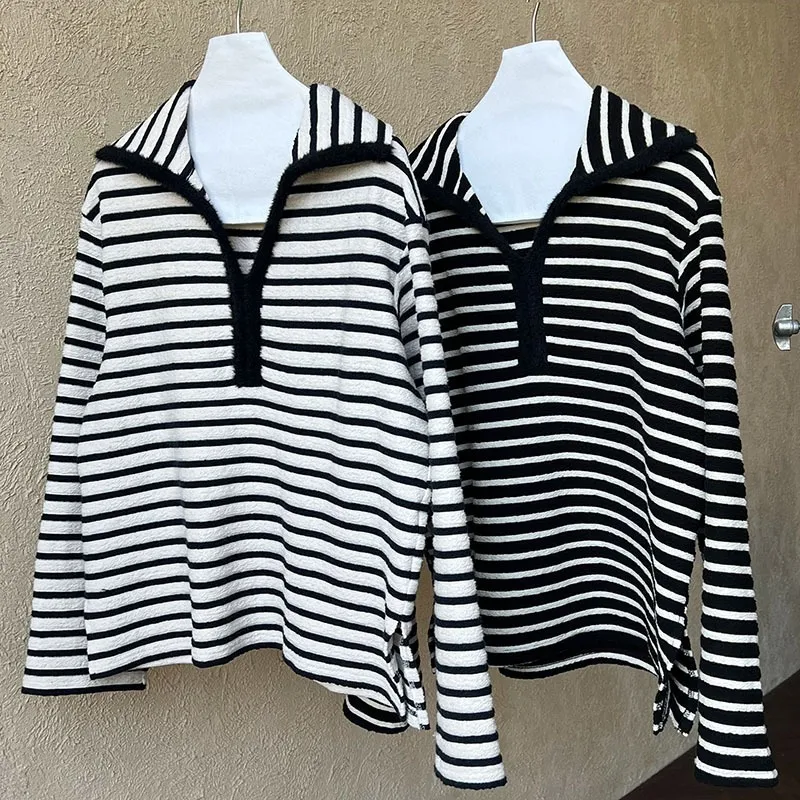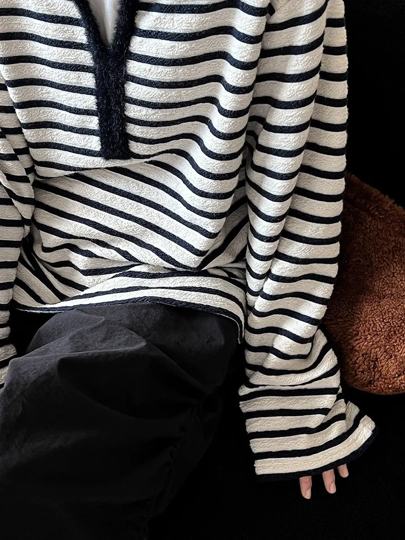港灣微醺.海軍領撞色條紋毛絨衛衣 2色