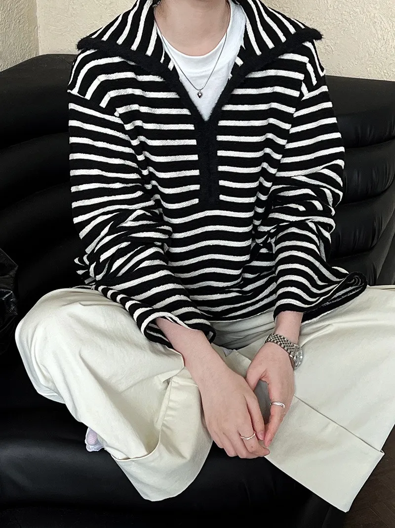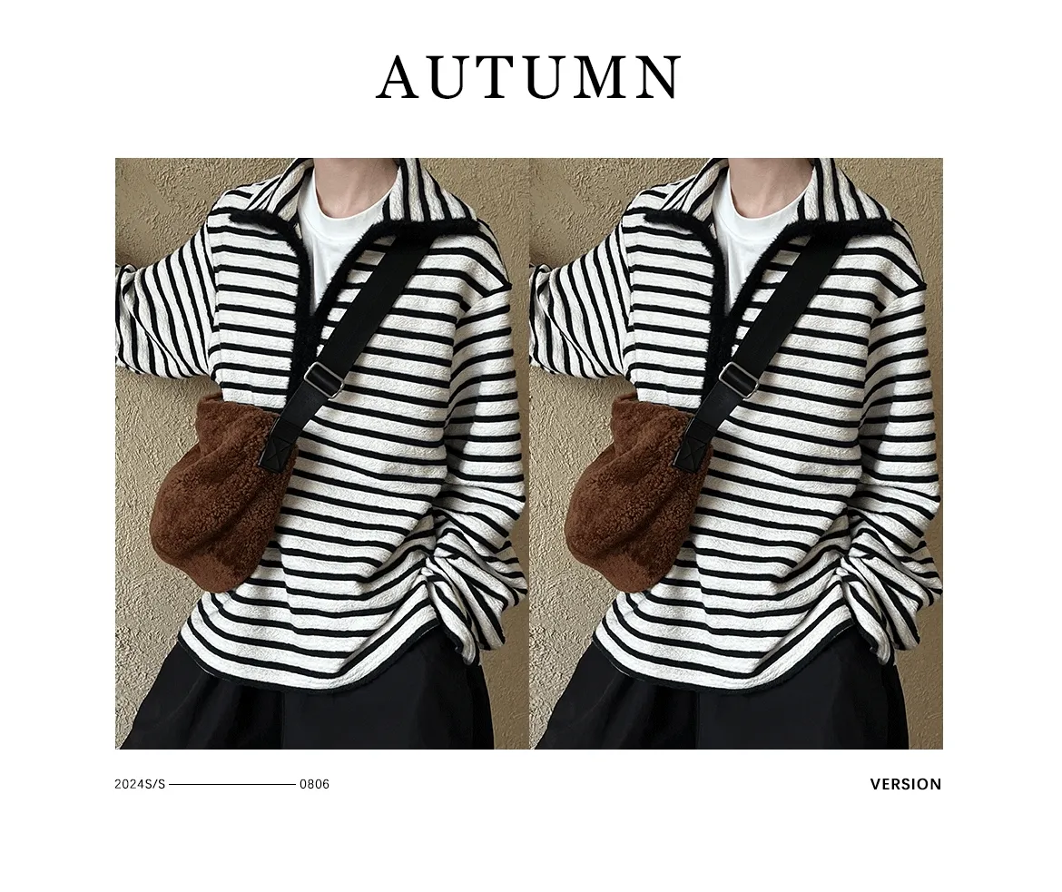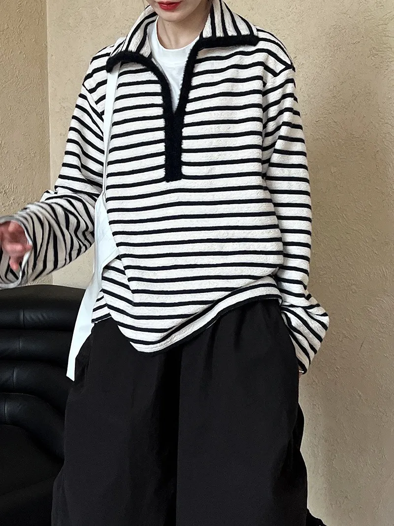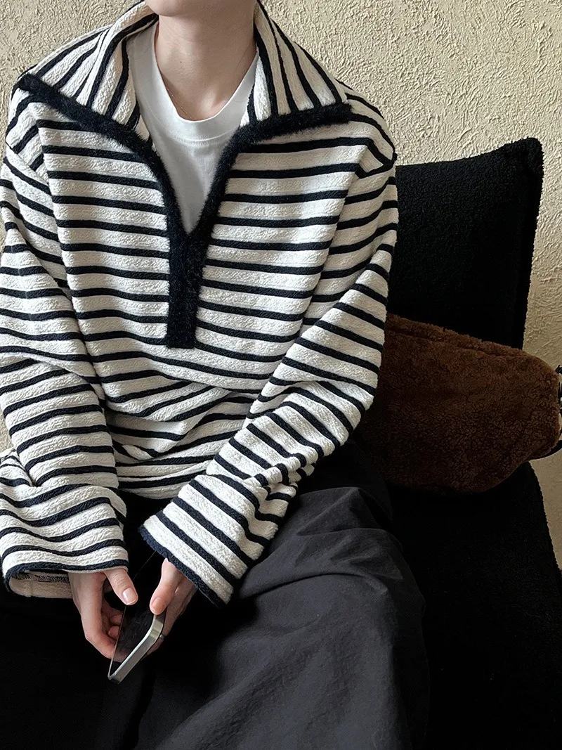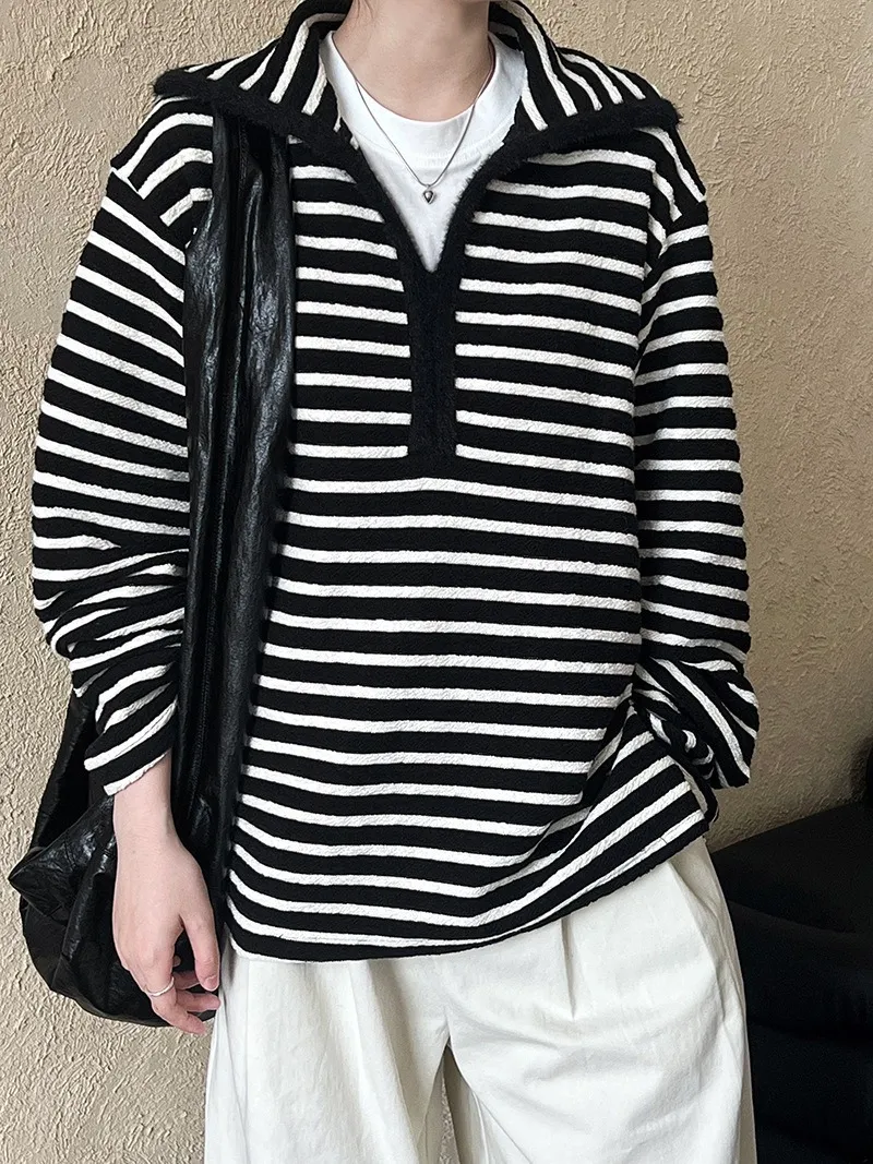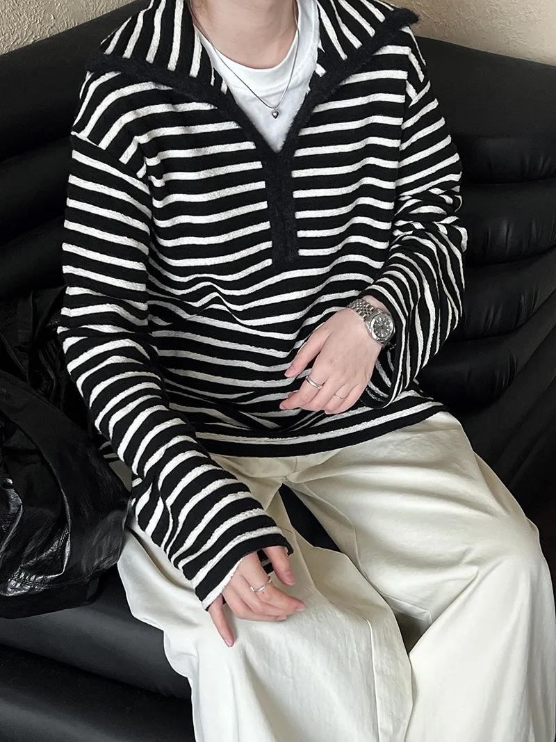 港灣微醺.海軍領撞色條紋毛絨衛衣 2色