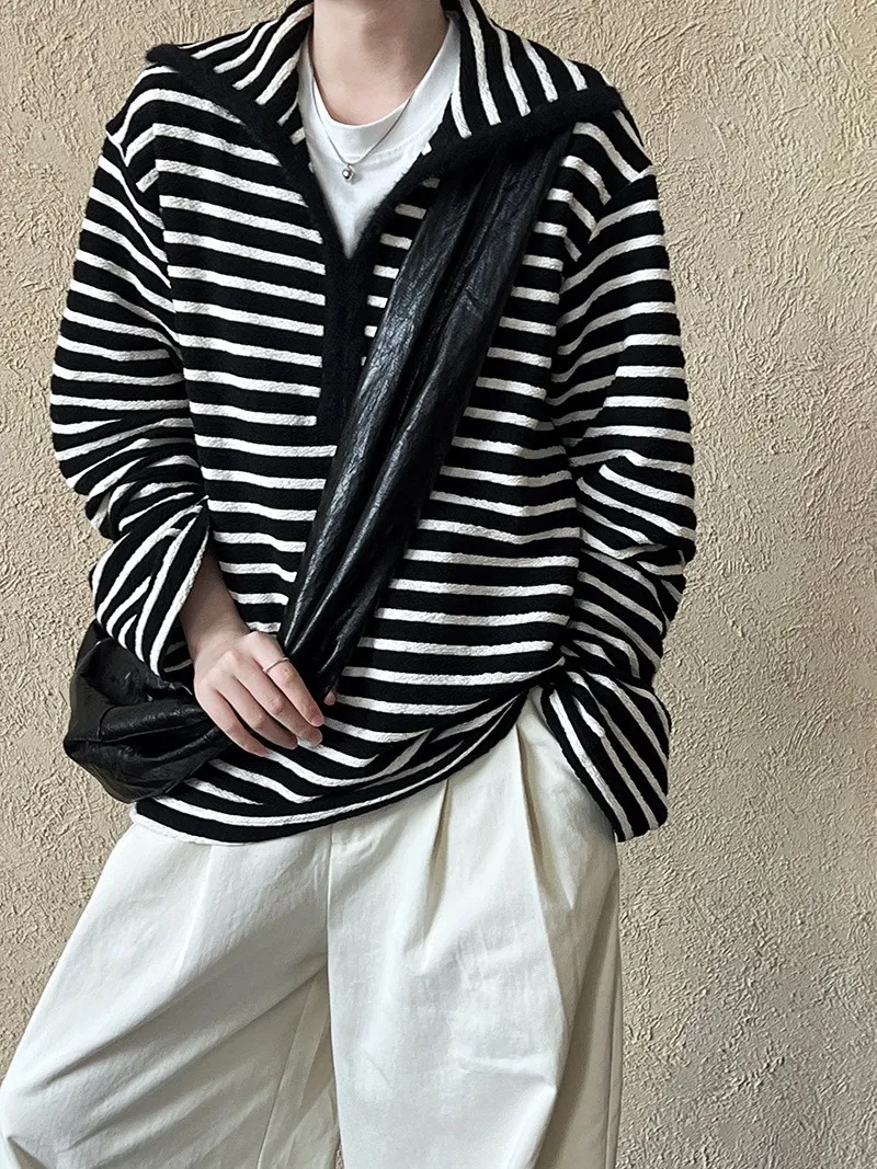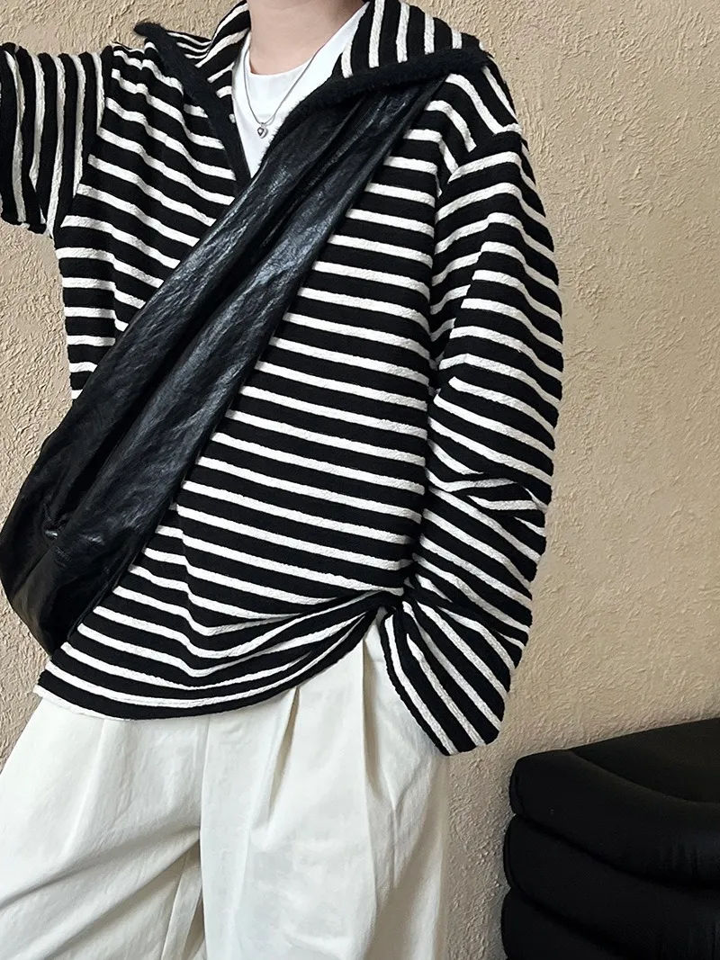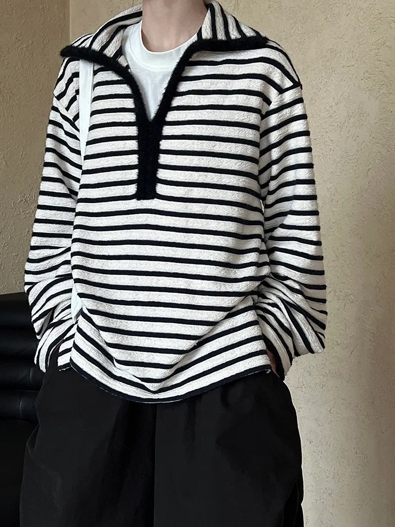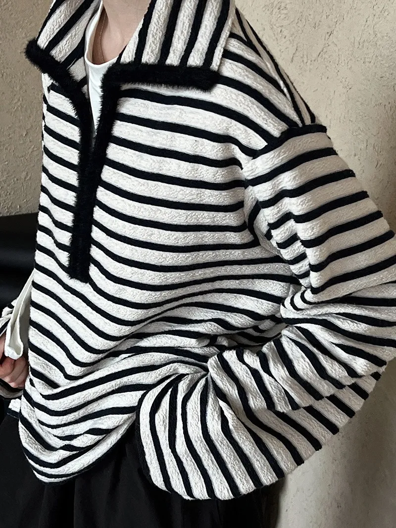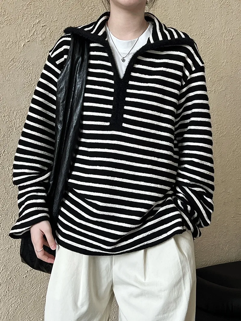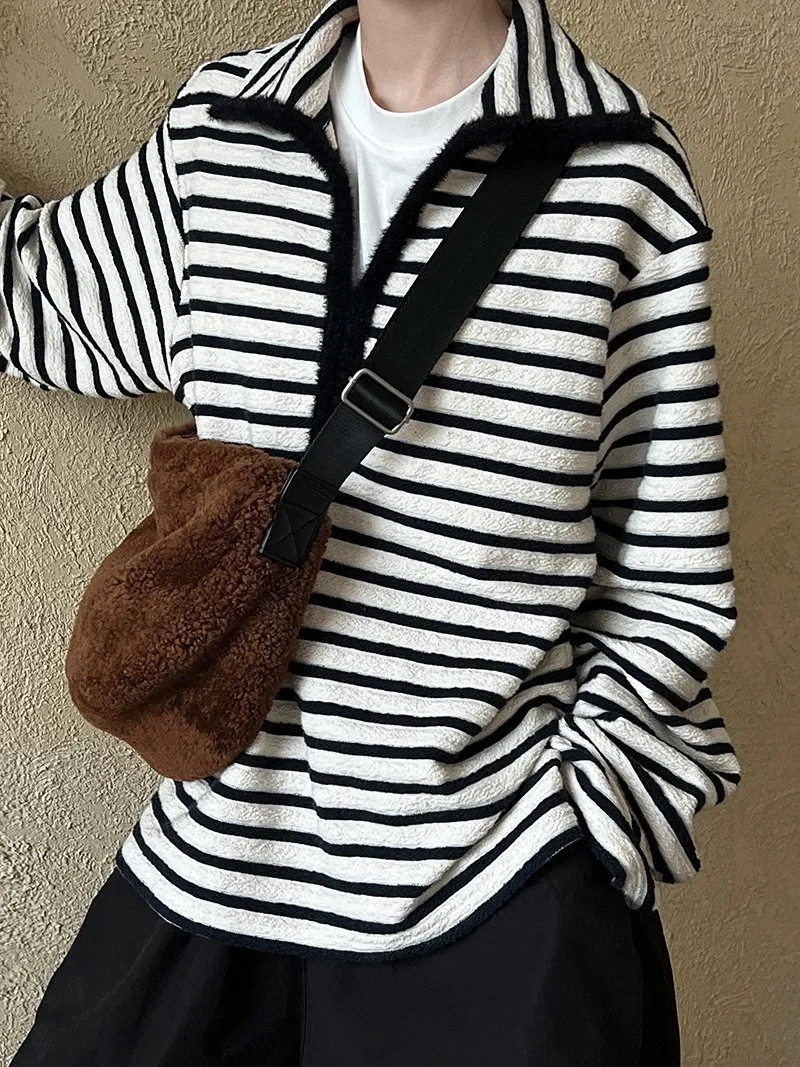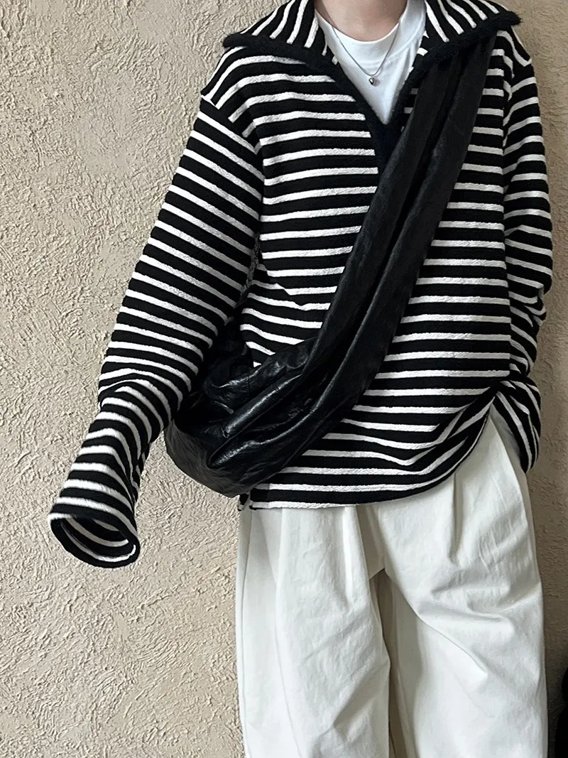 港灣微醺.海軍領撞色條紋毛絨衛衣 2色