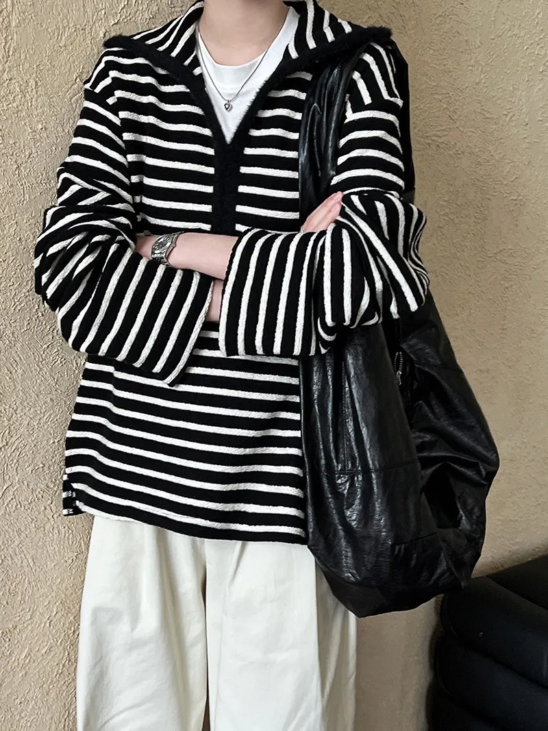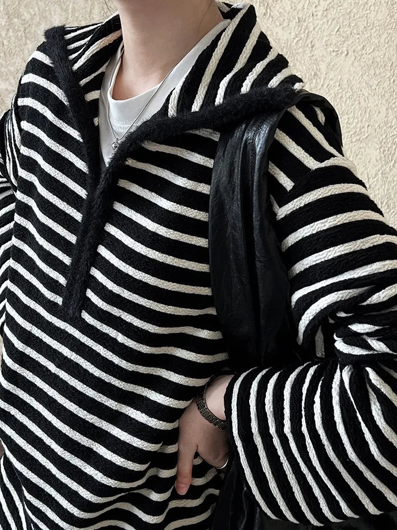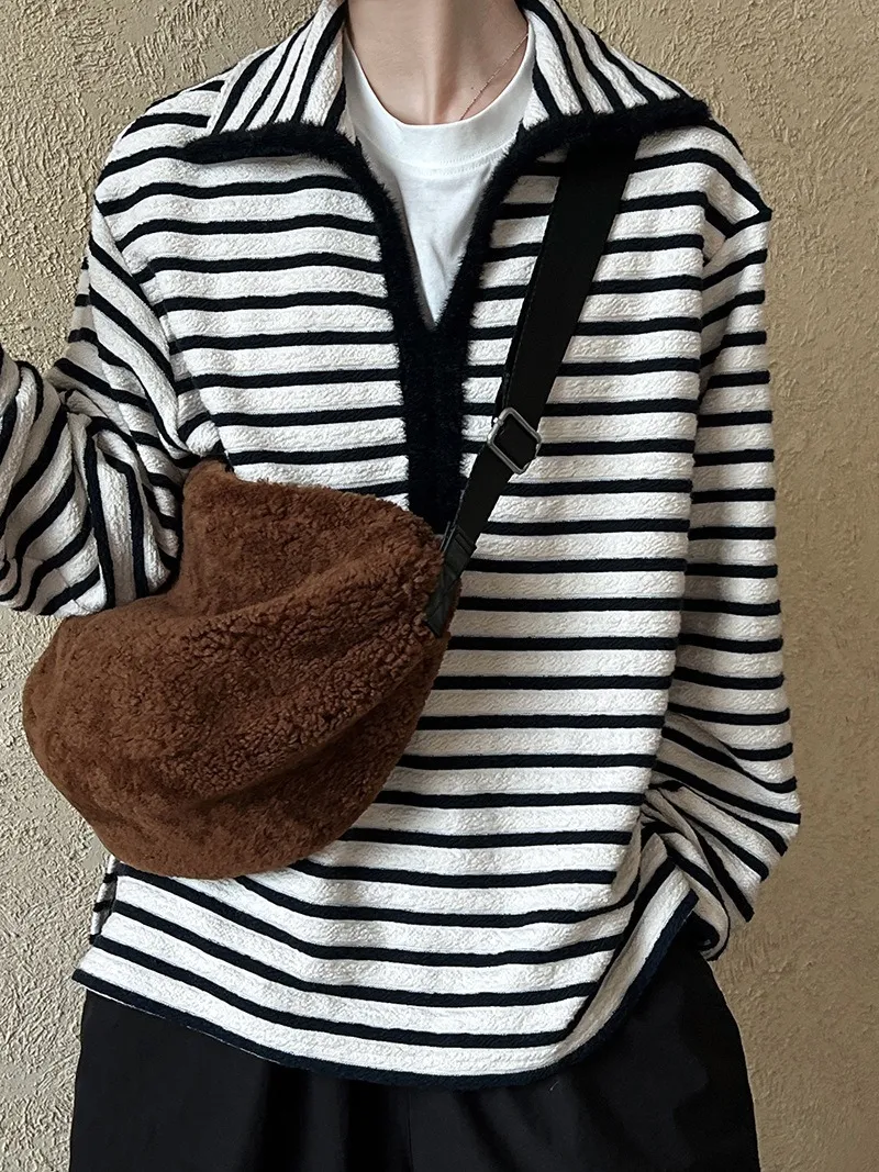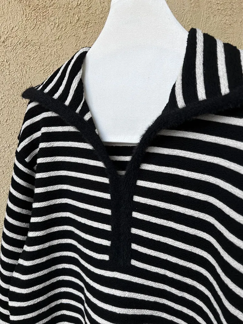 海軍領撞色條紋毛絨衛衣