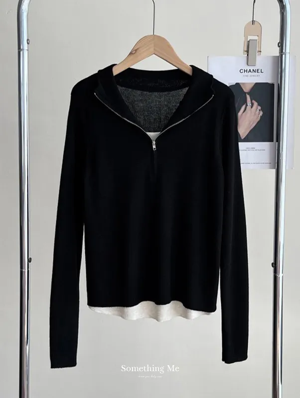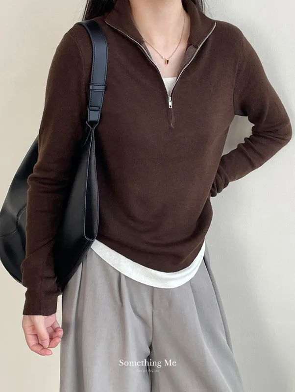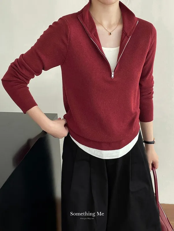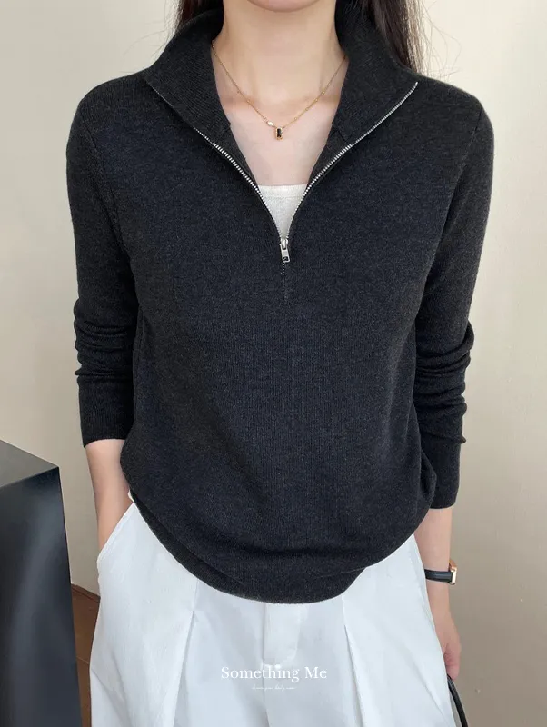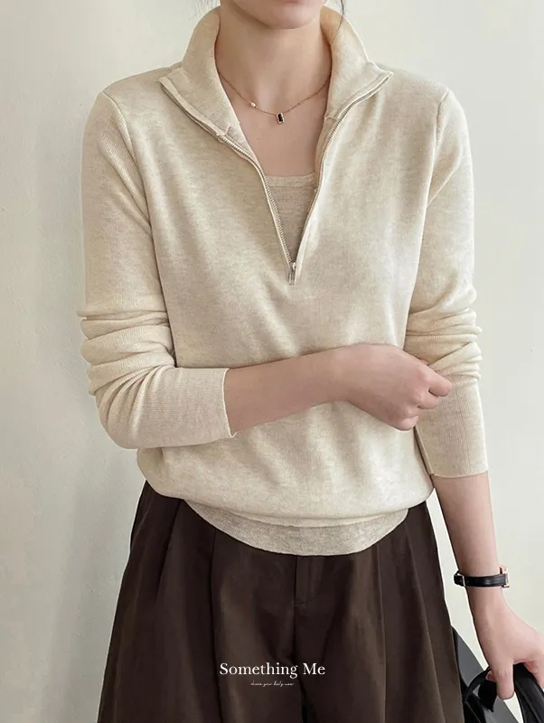 半高領拉鏈細膩針織上衣