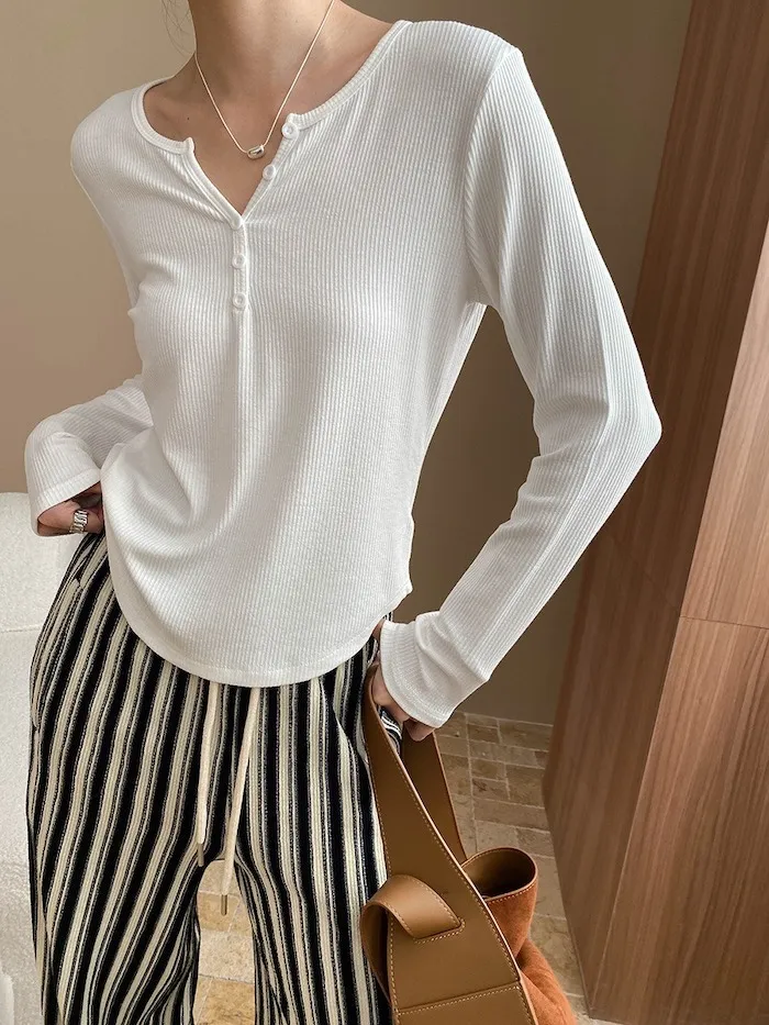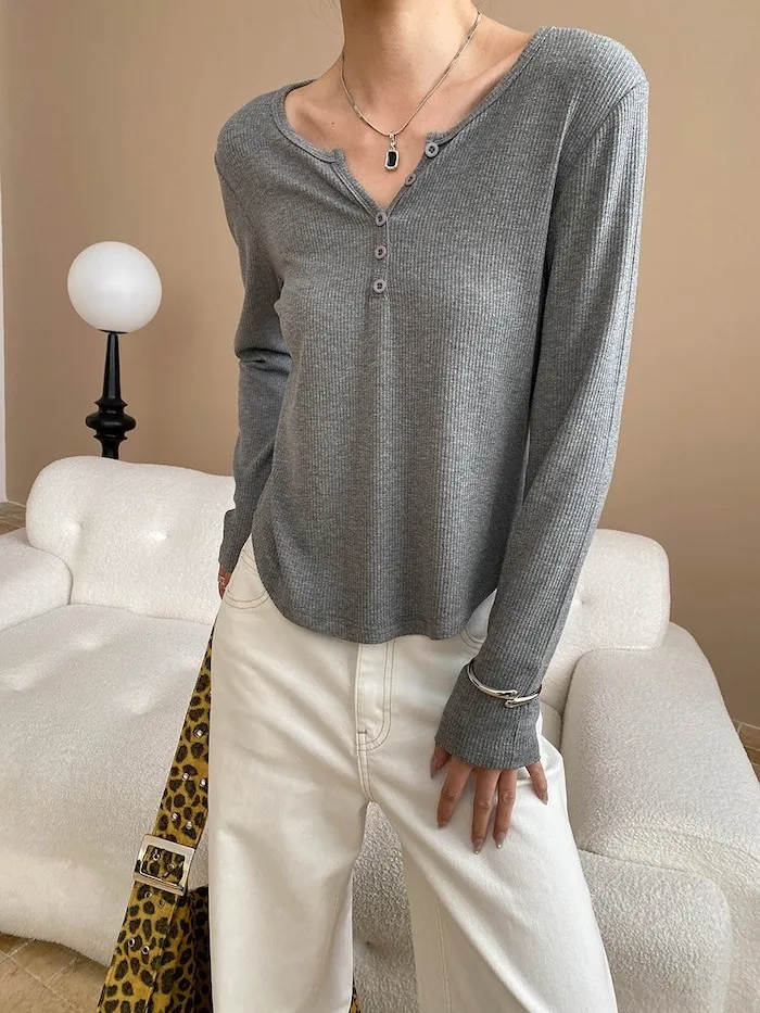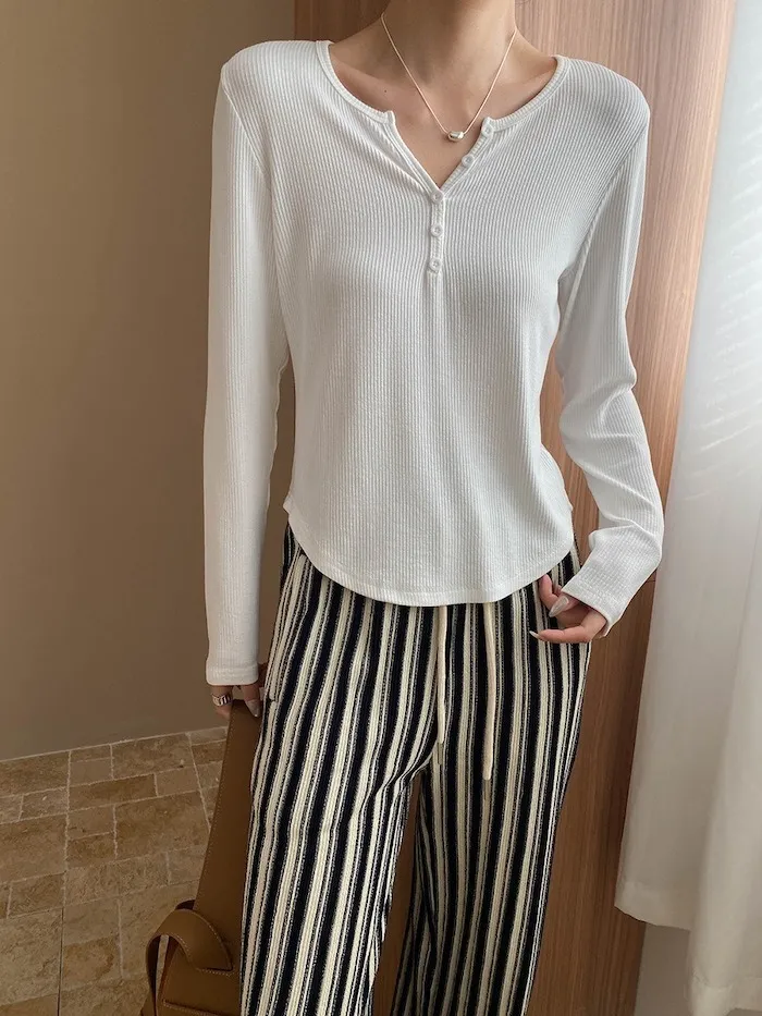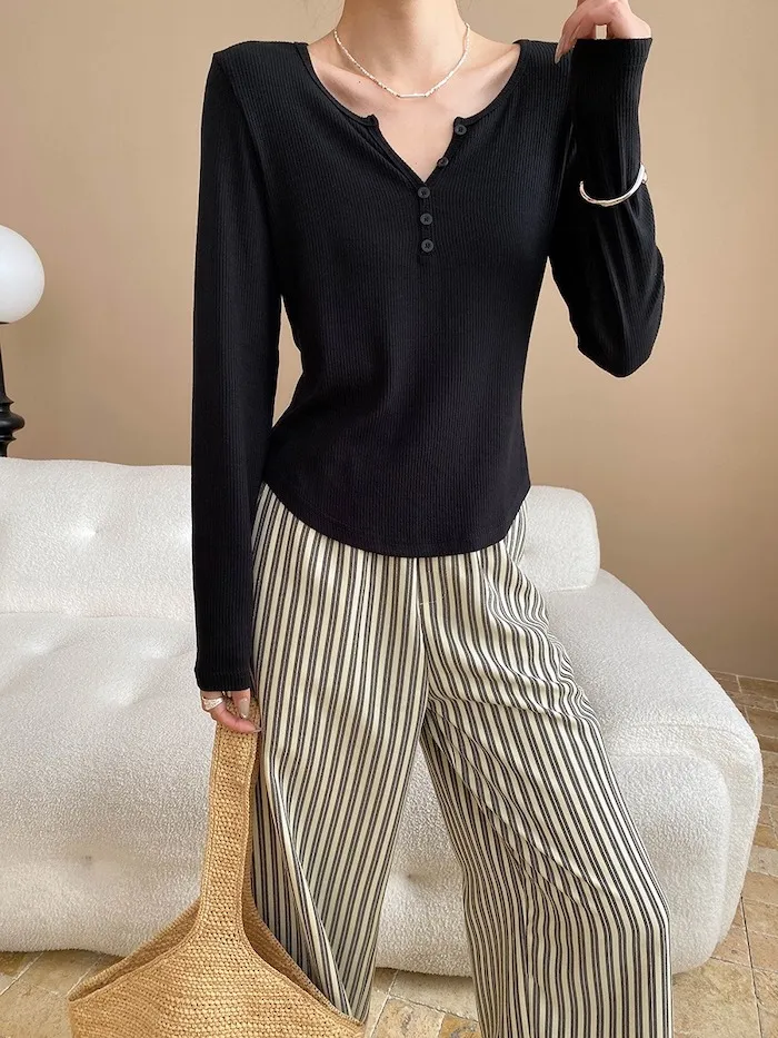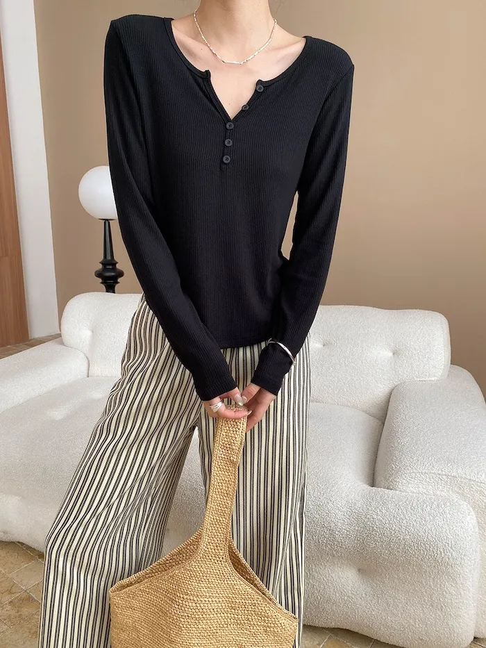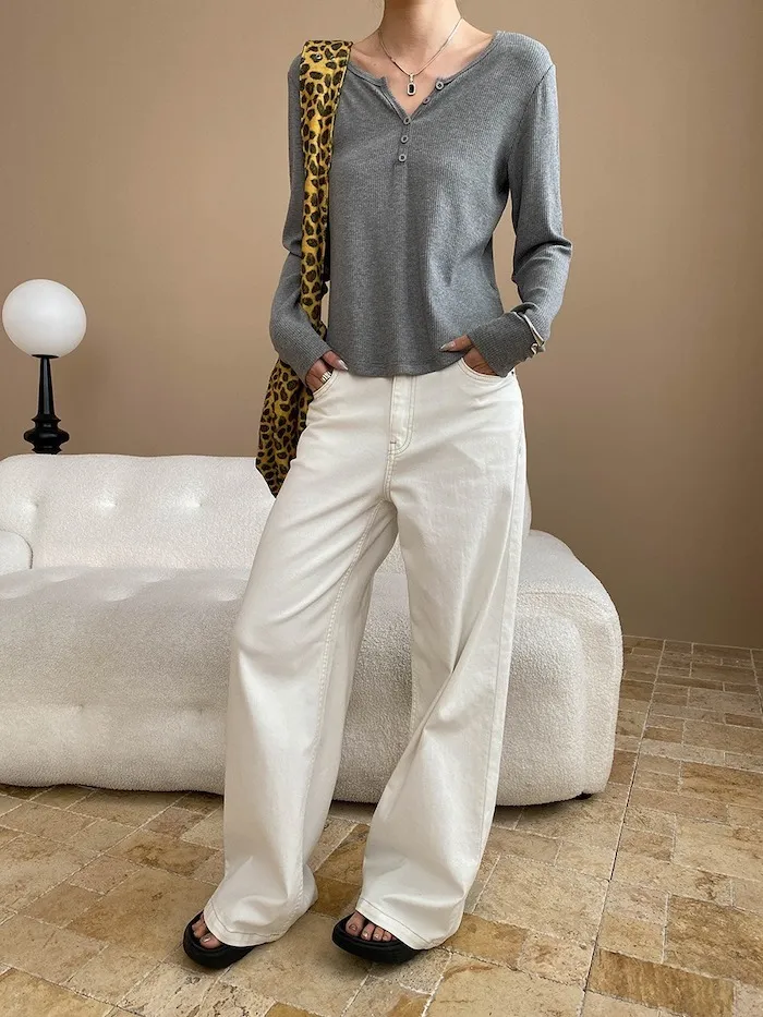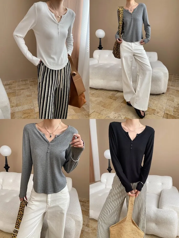 優雅氣質V領排扣設計,上身慵懶自然的垂墜感