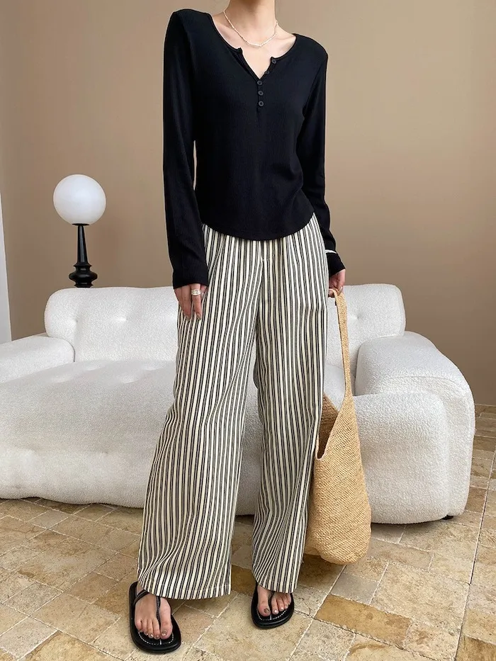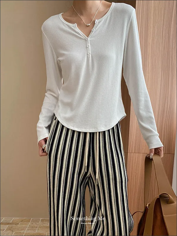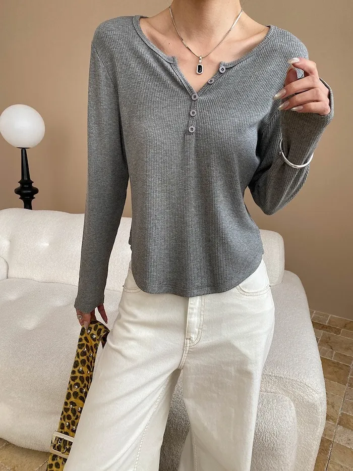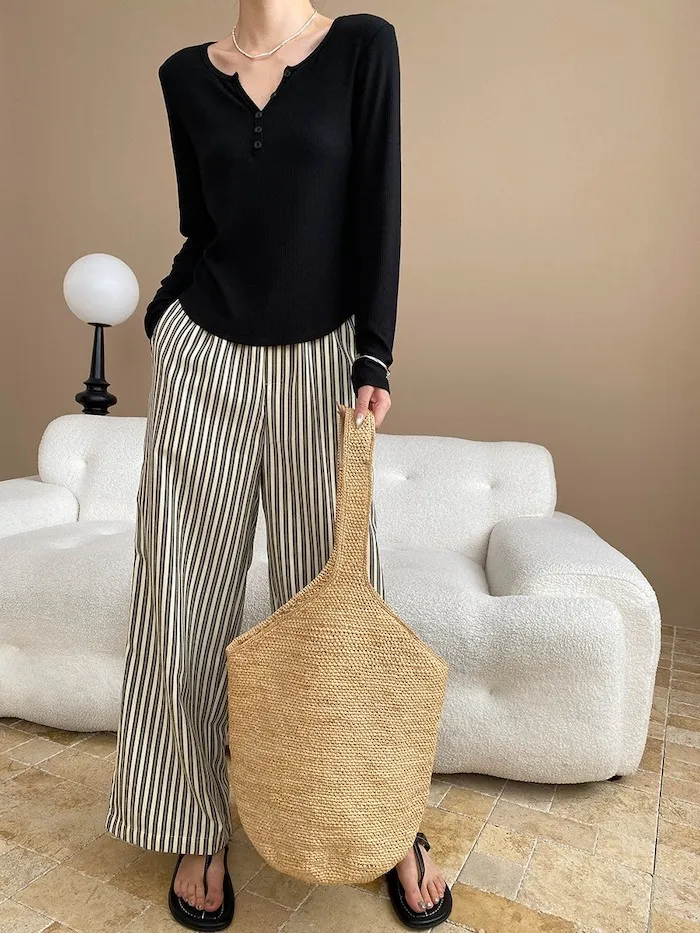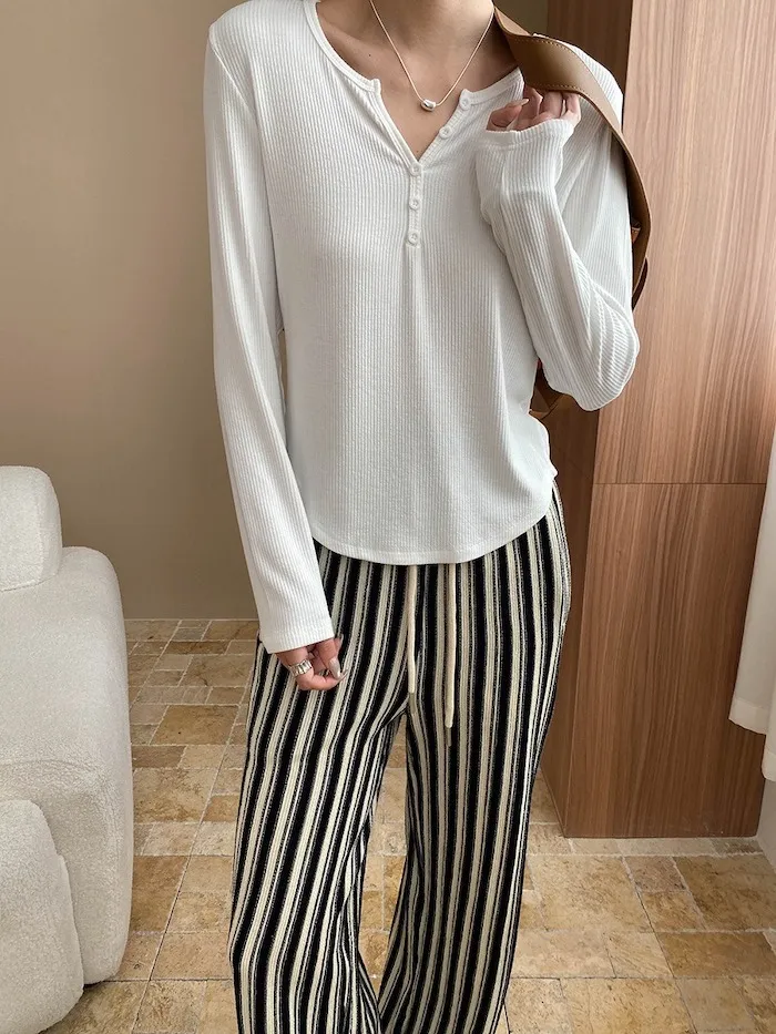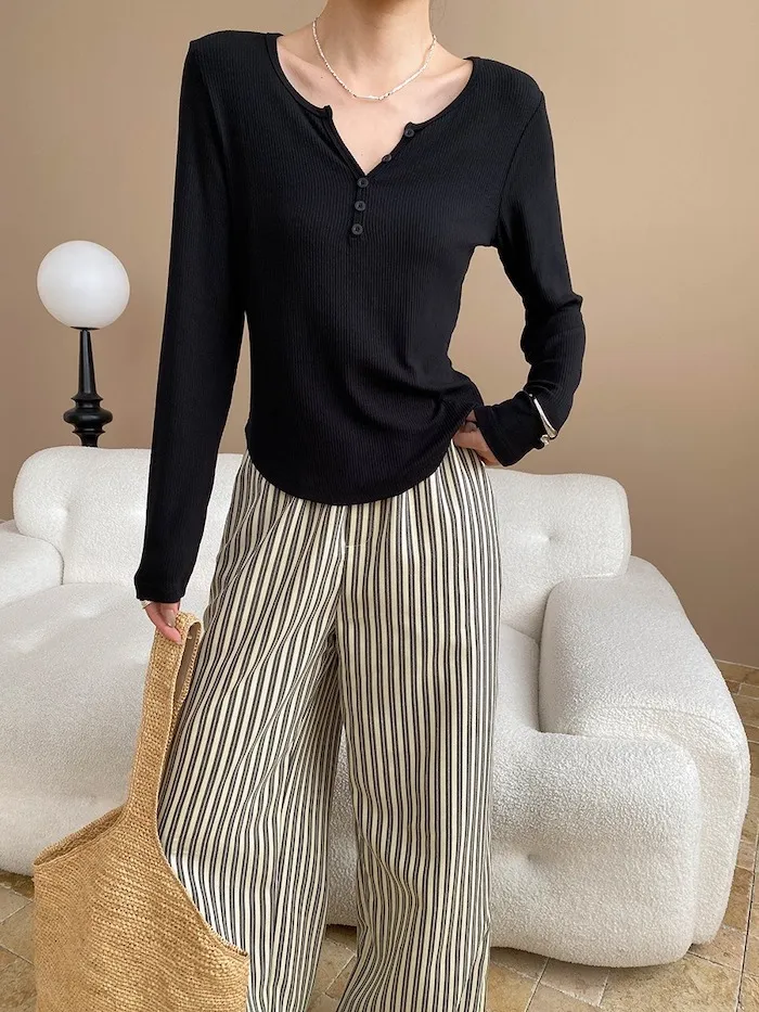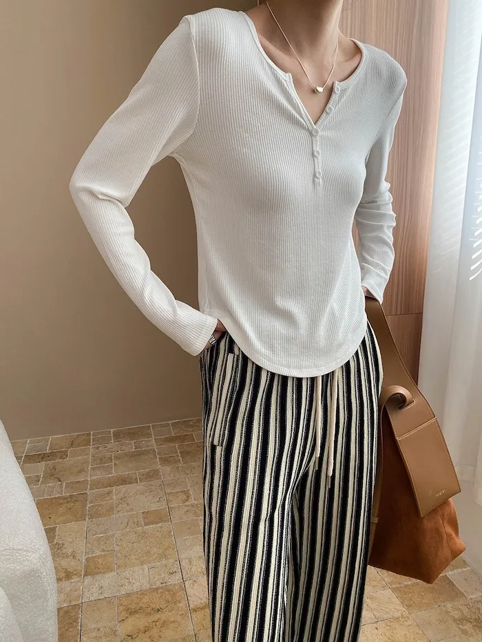 優雅氣質V領排扣設計,上身慵懶自然的垂墜感