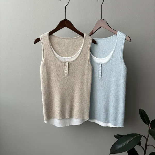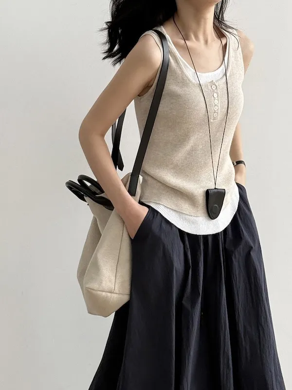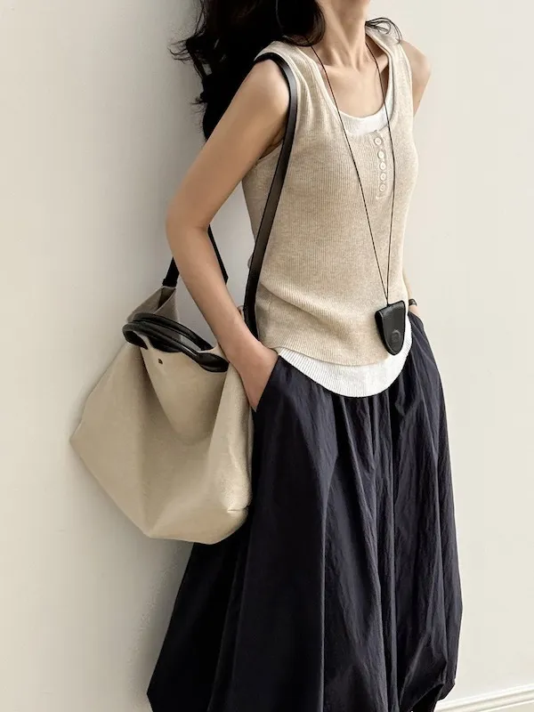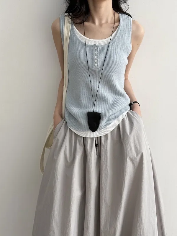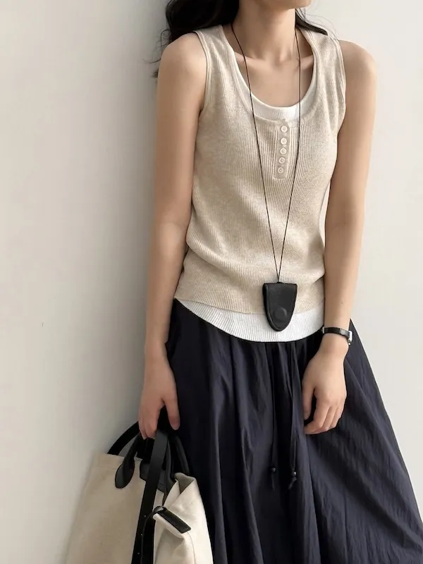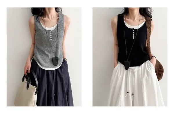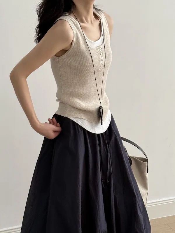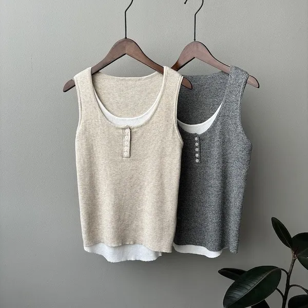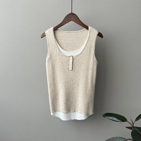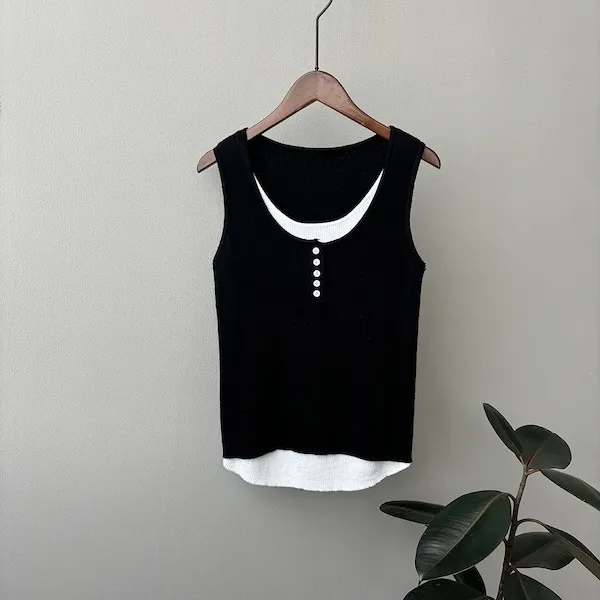 慵懶雲朵假兩件針織背心 4色