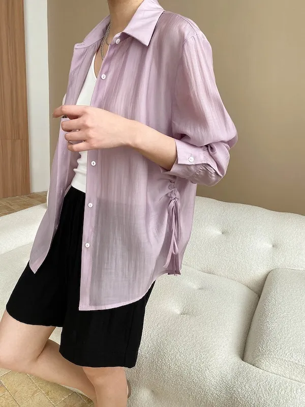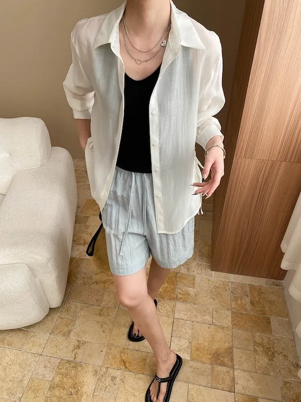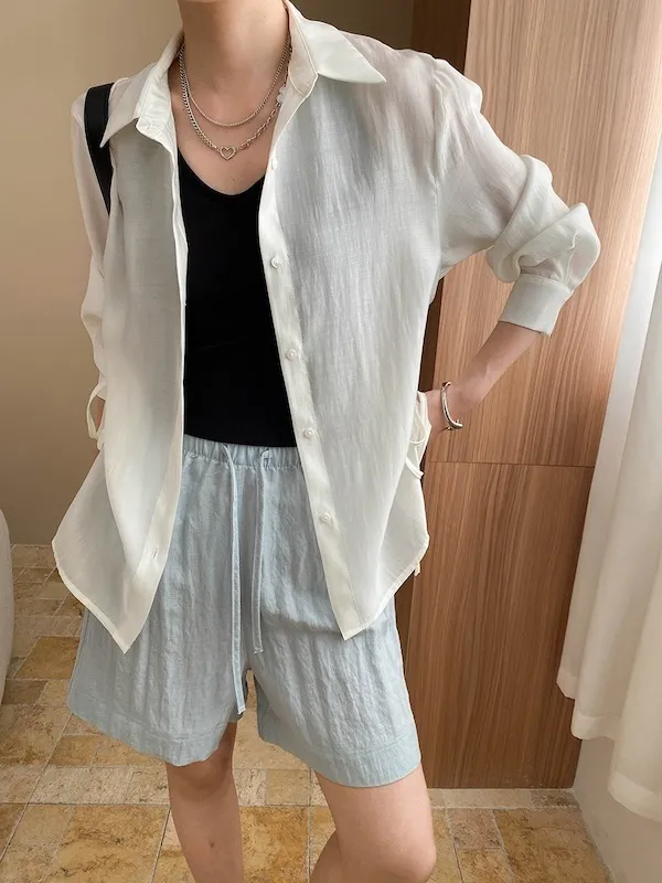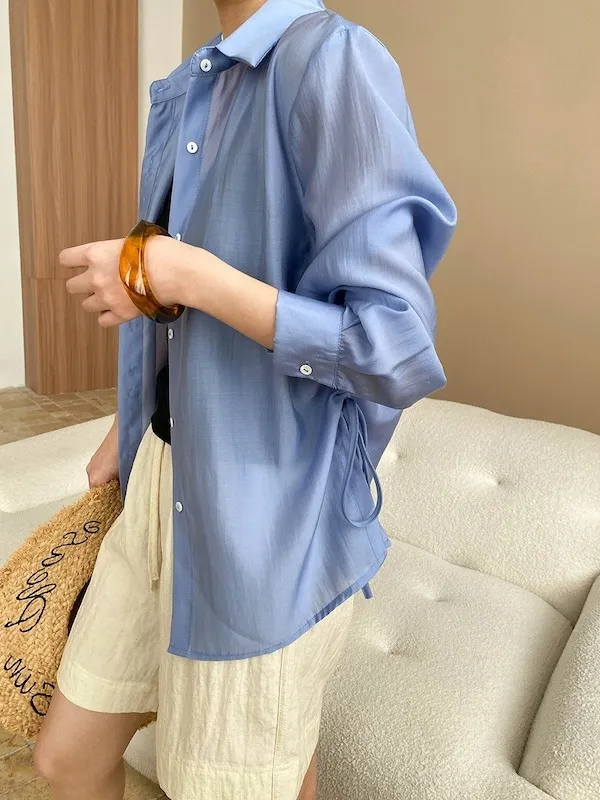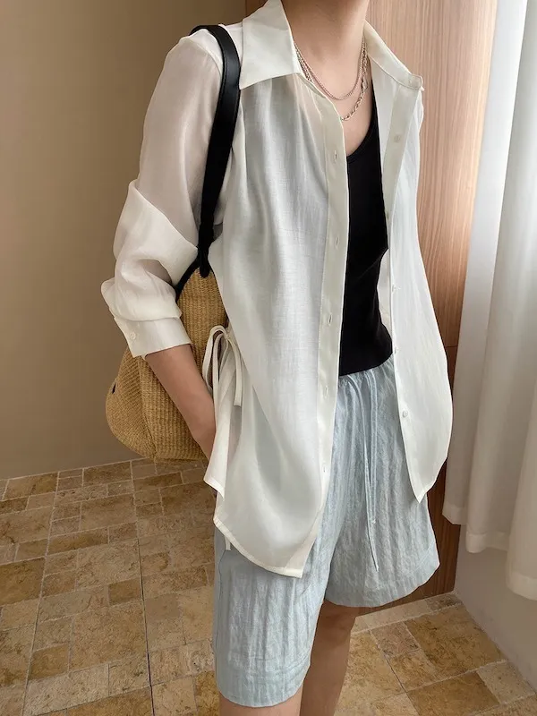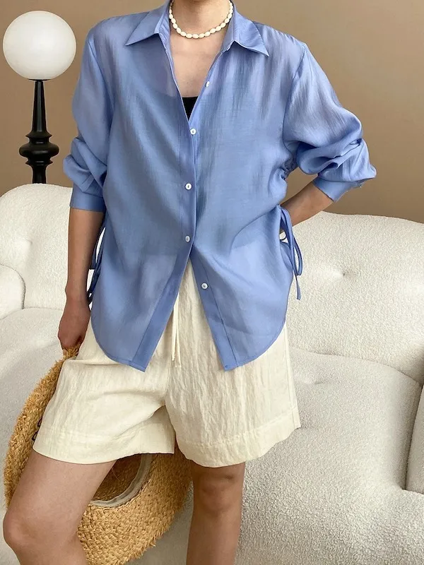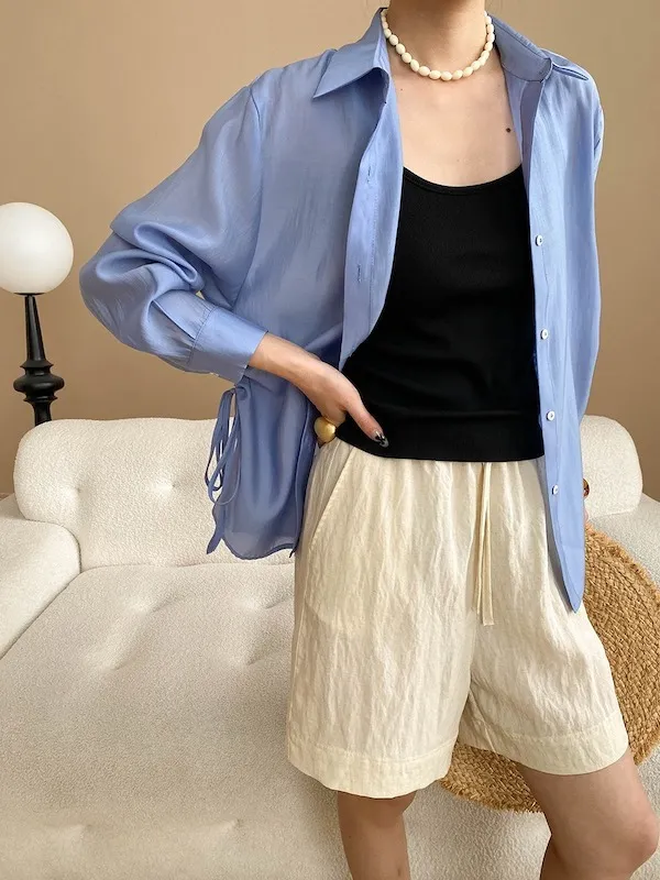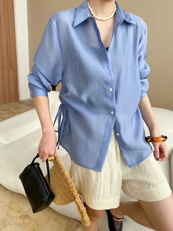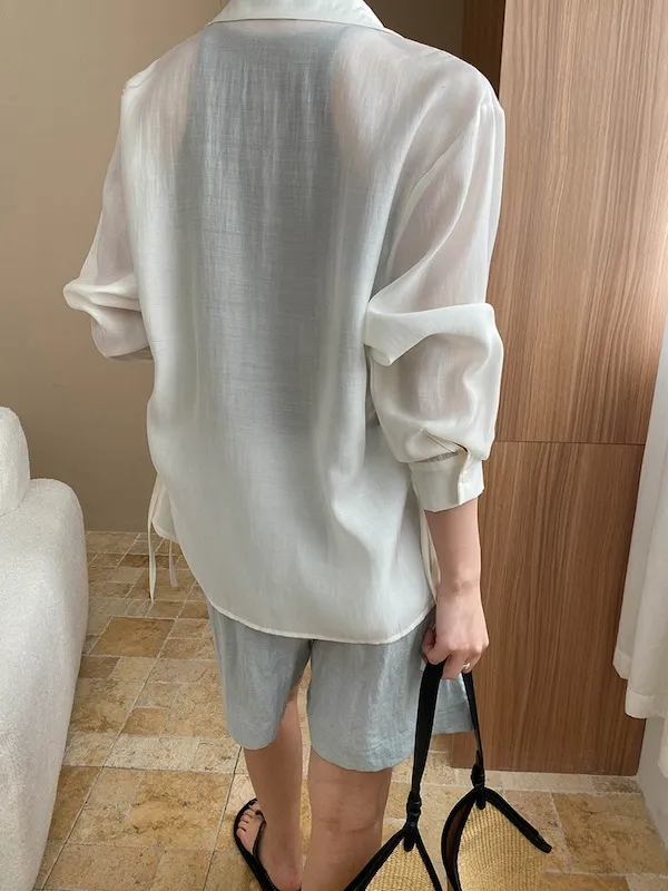 輕霧漫遊 天絲繫帶法式薄襯衫 3色