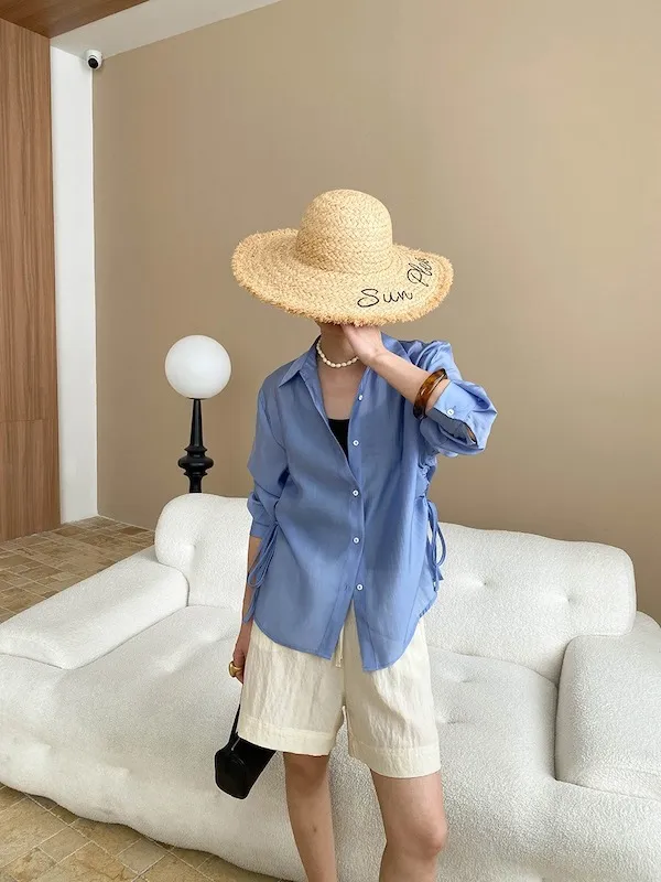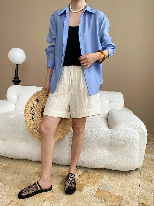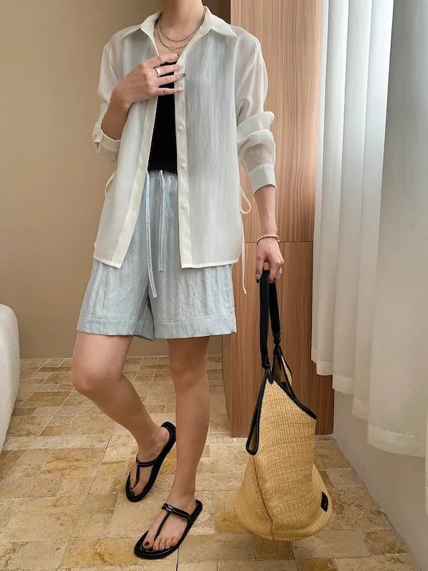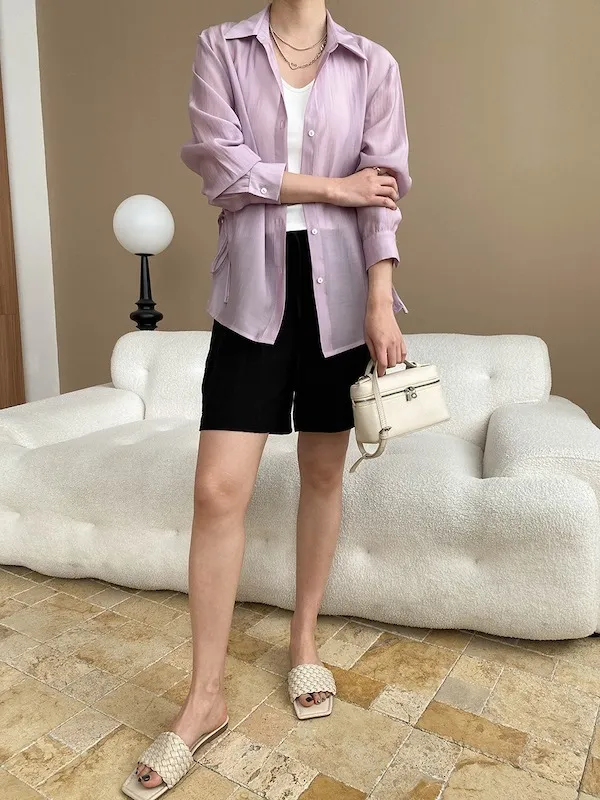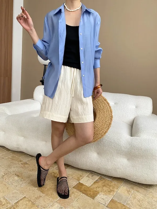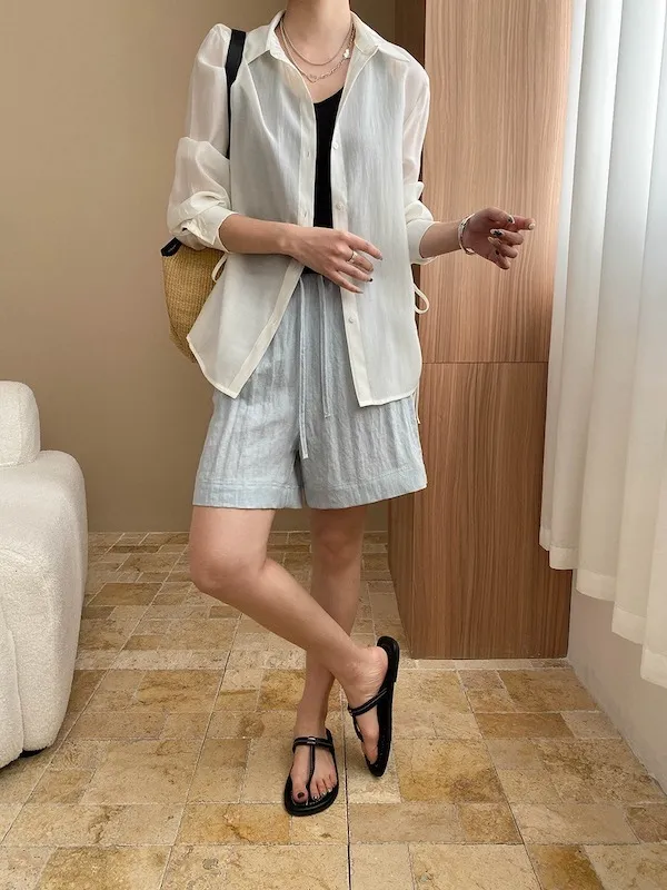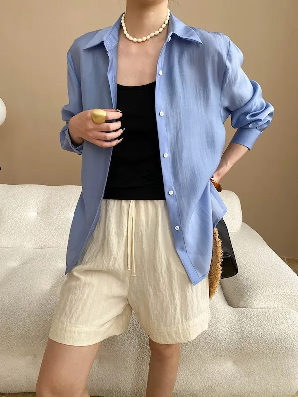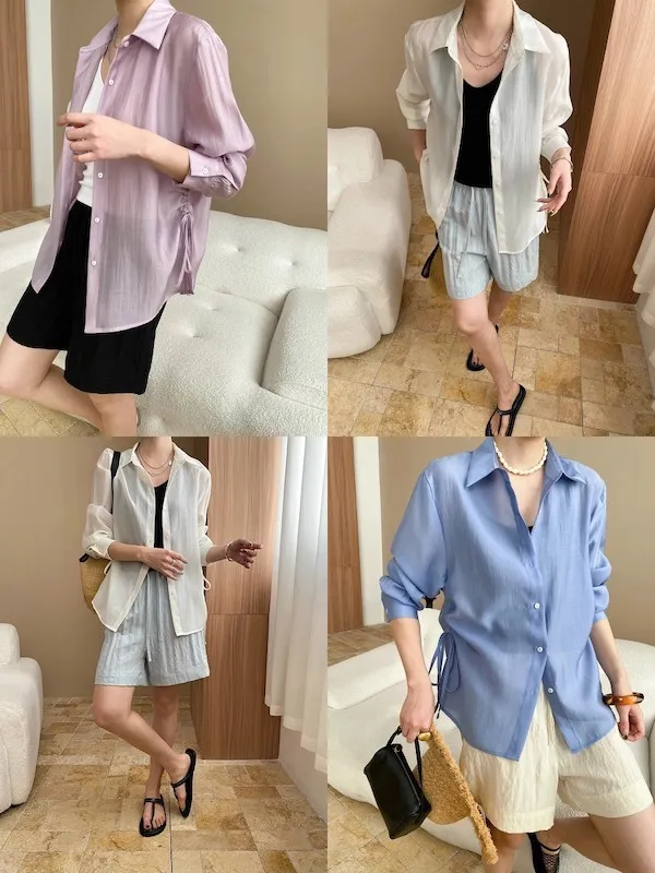 輕霧漫遊 天絲繫帶法式薄襯衫 3色