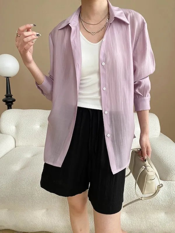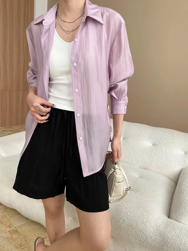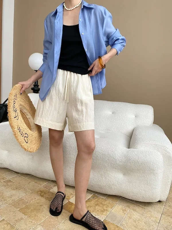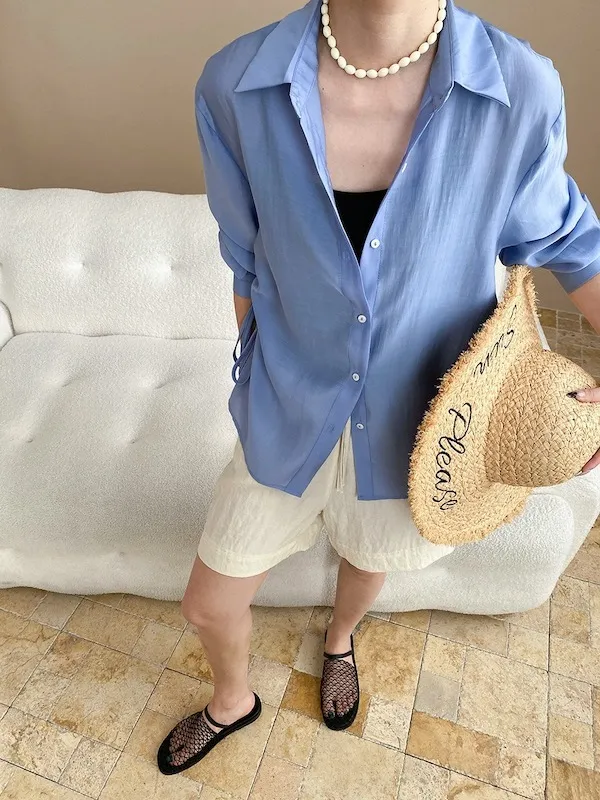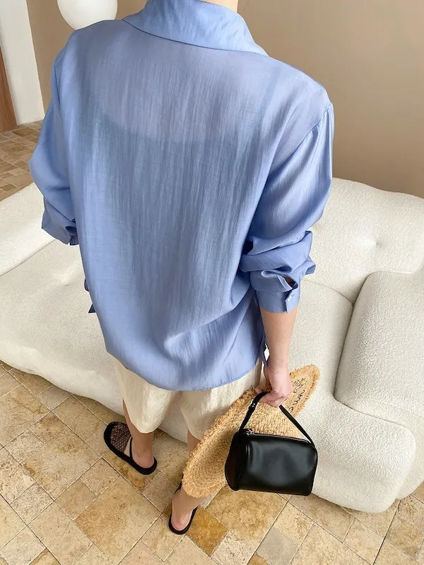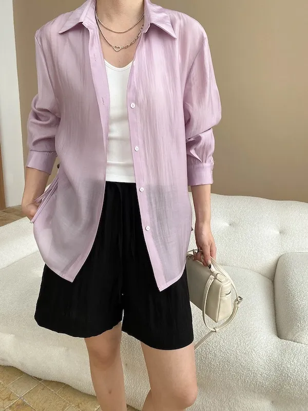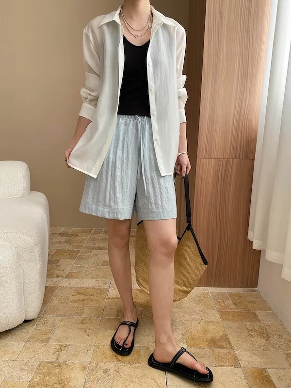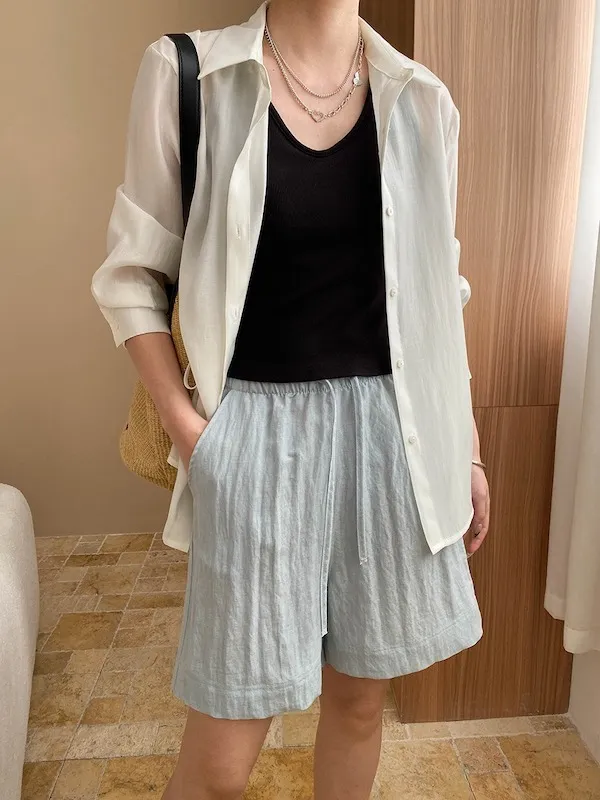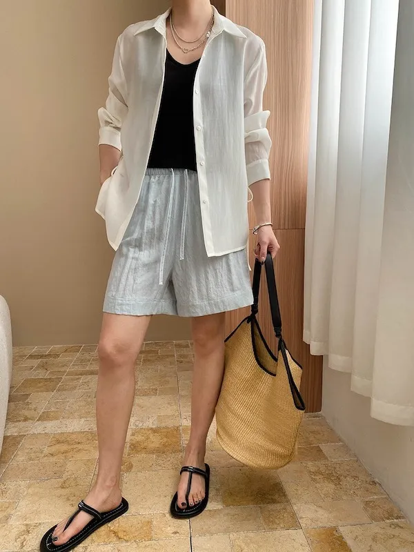 輕霧漫遊 天絲繫帶法式薄襯衫 3色