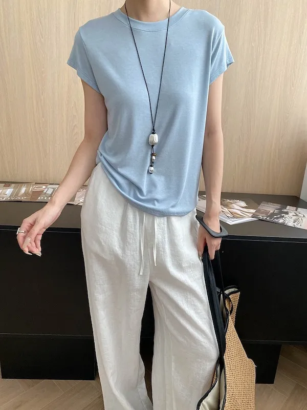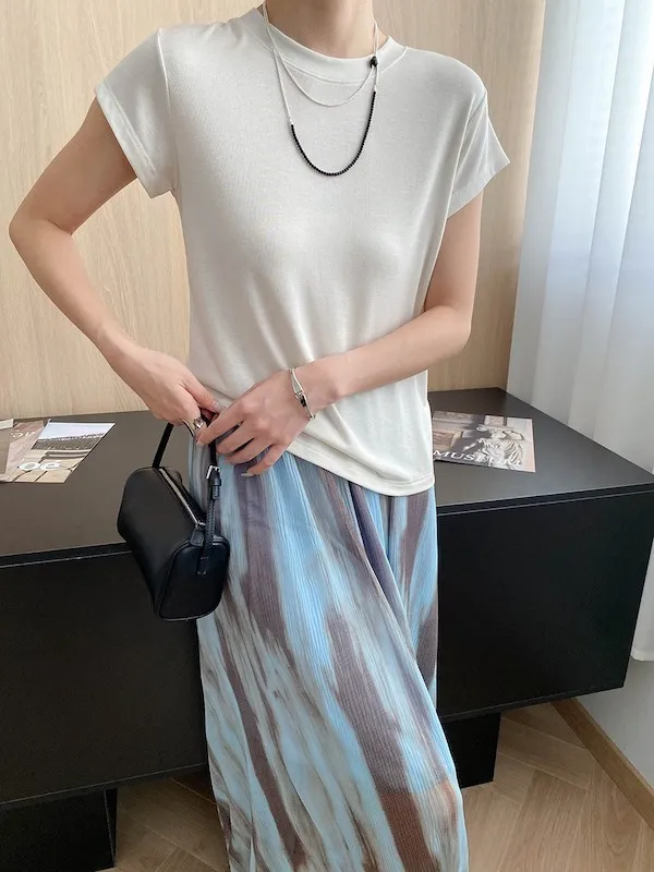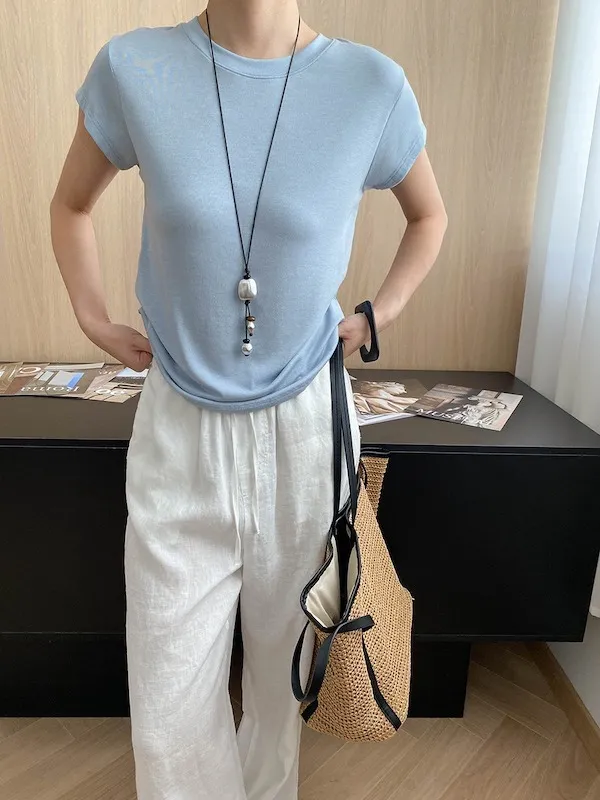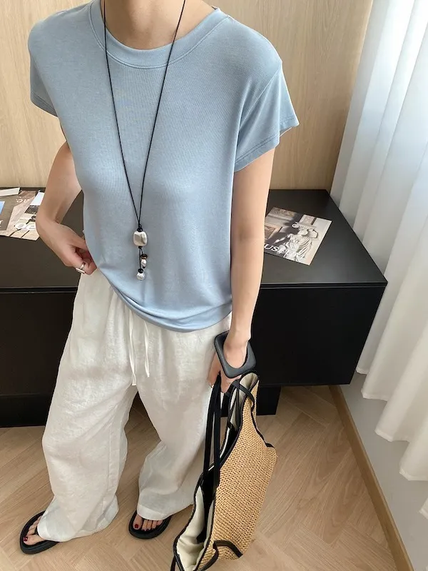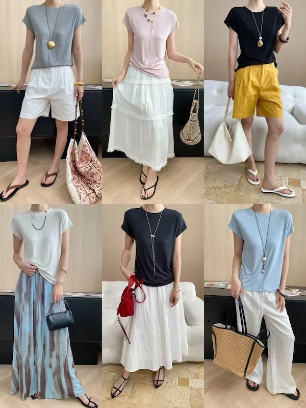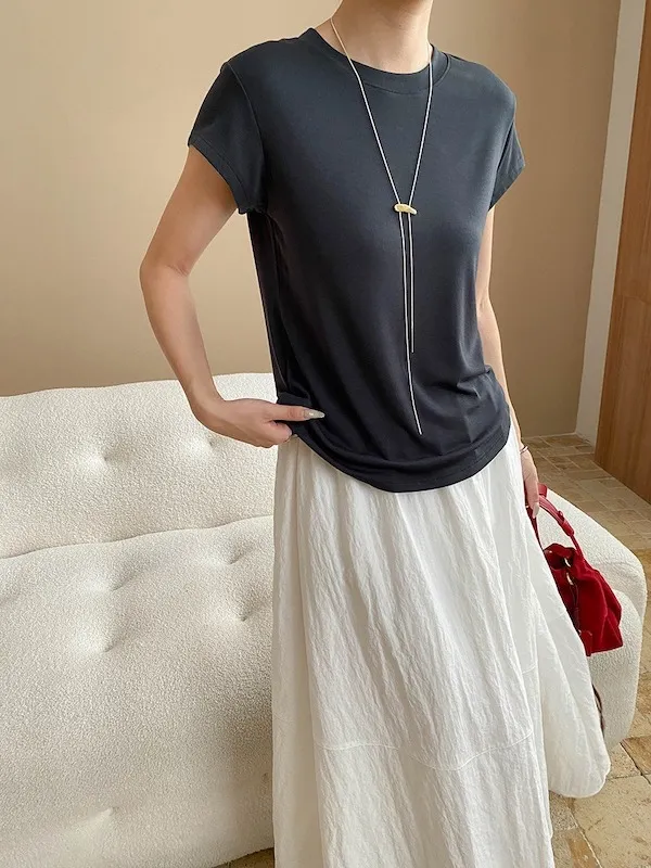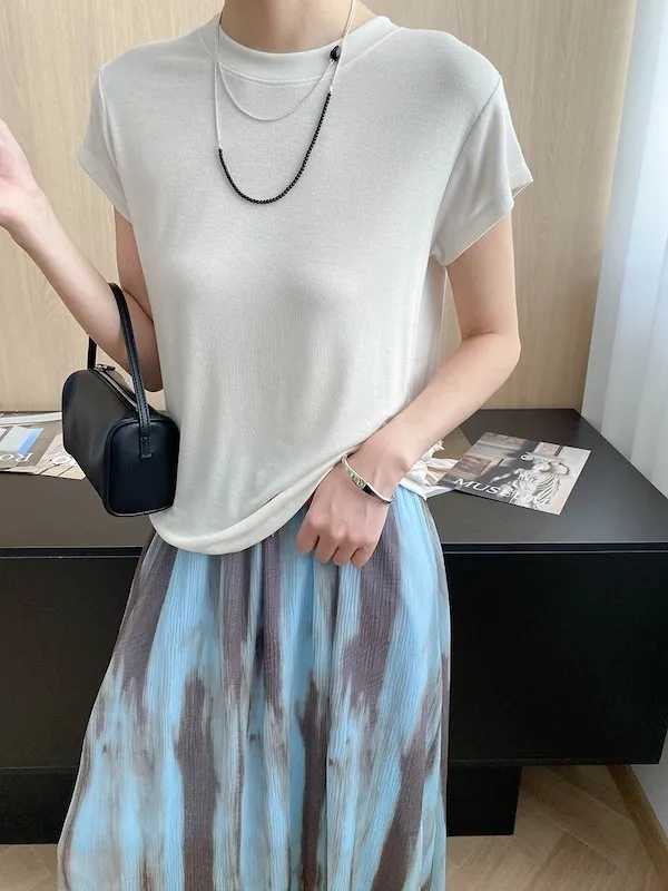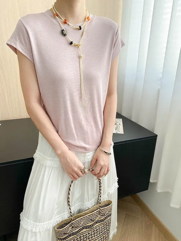 絲綢晨霧 面膜裸感萊賽爾天絲短袖T恤 6色