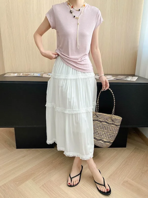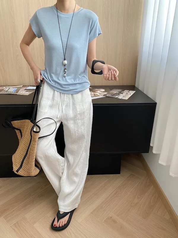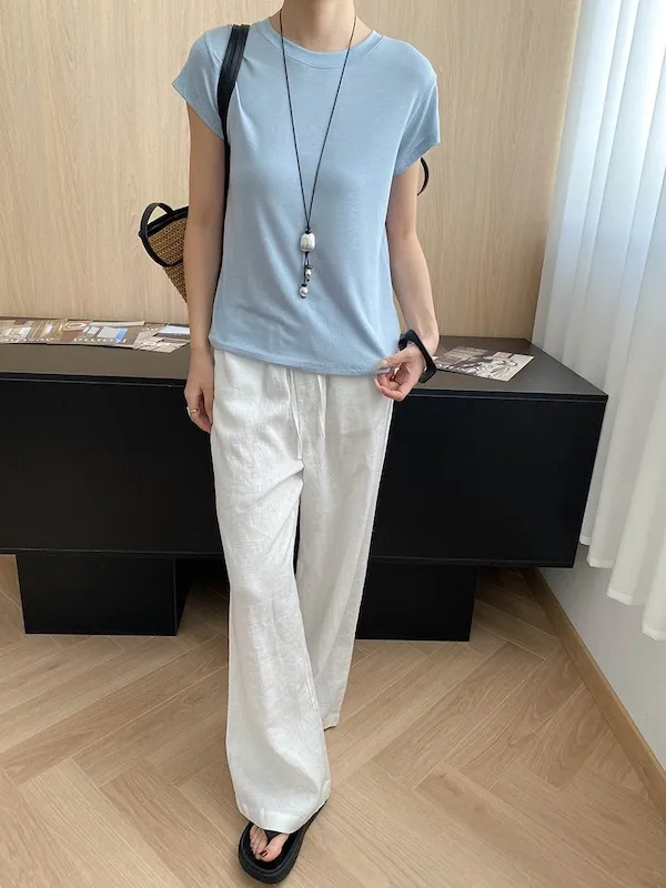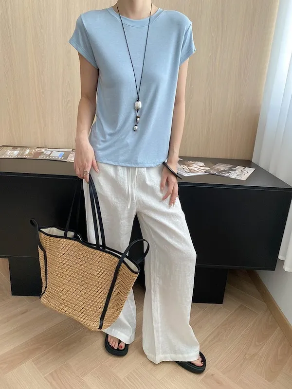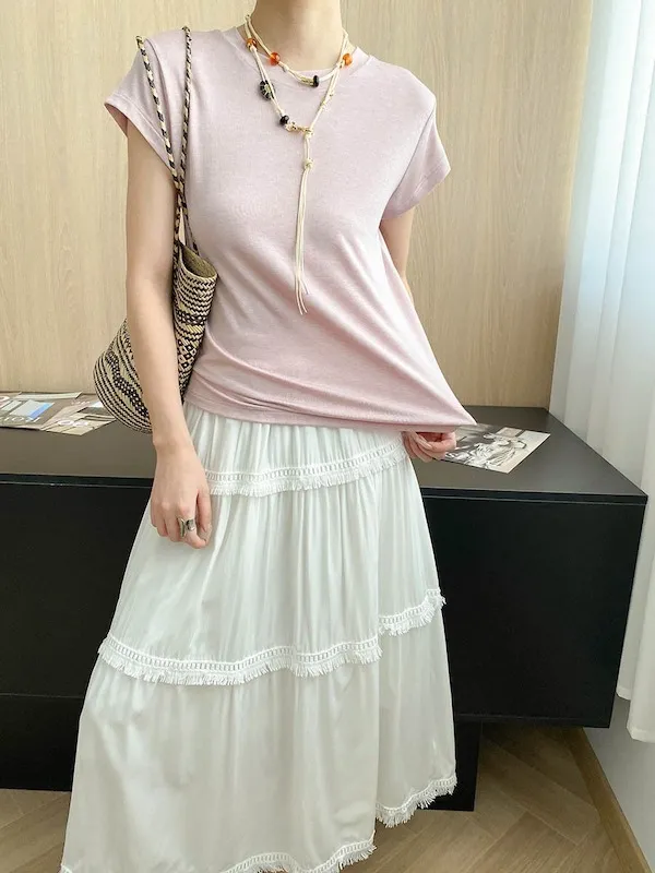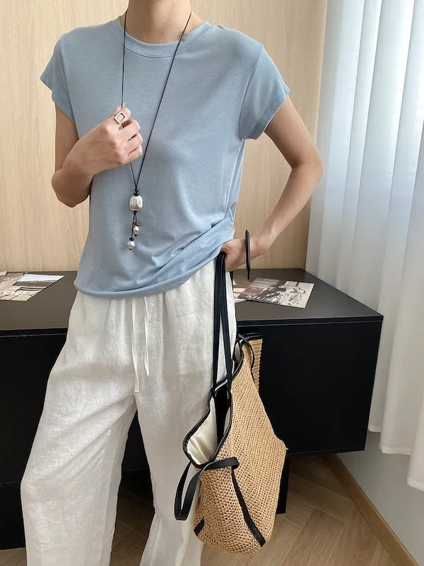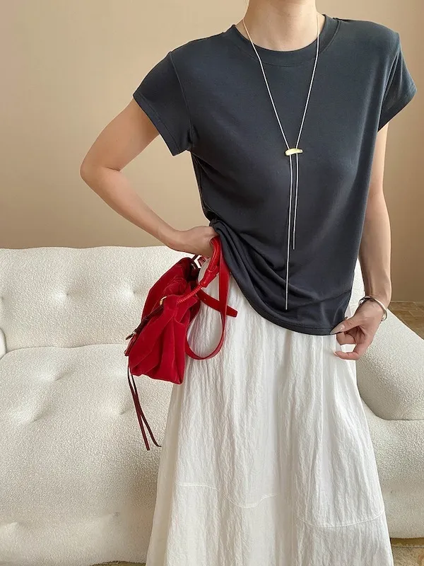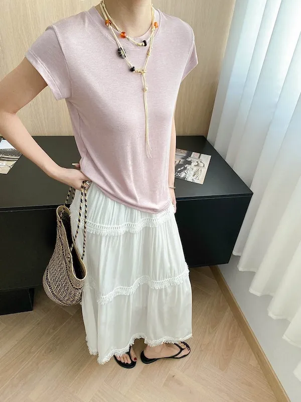 絲綢晨霧 面膜裸感萊賽爾天絲短袖T恤 6色
