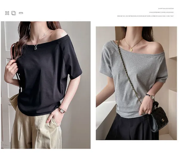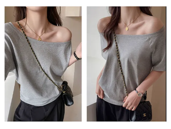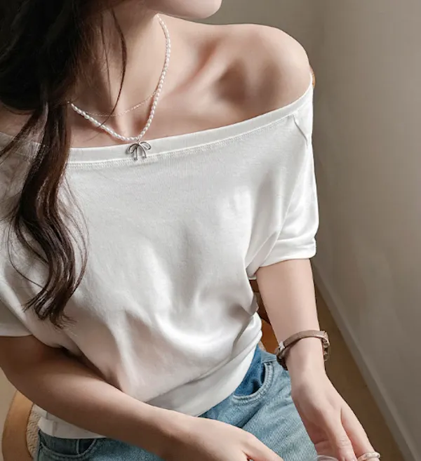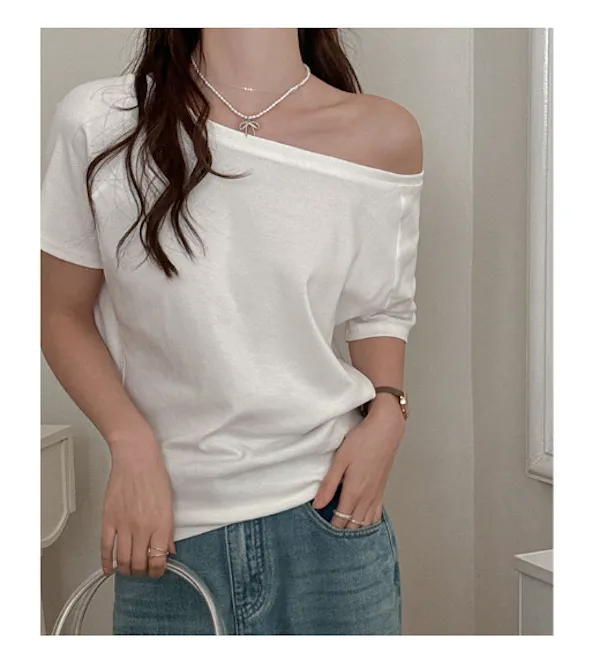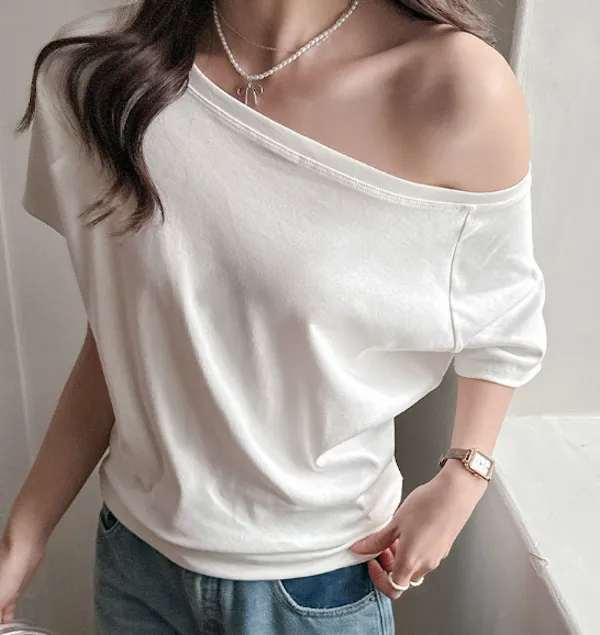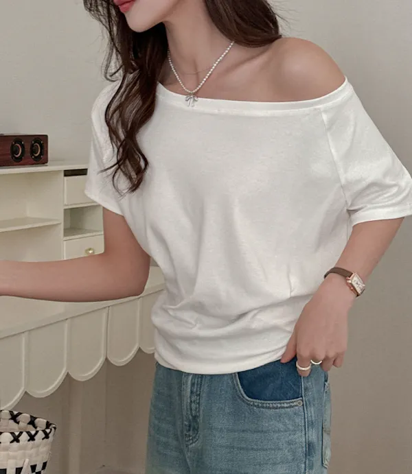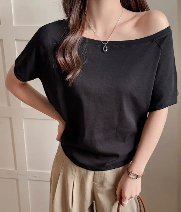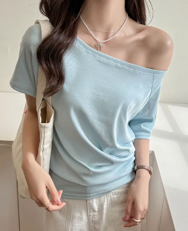溫柔親膚.莫代爾斜肩短袖上衣 4色