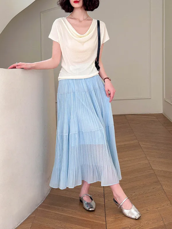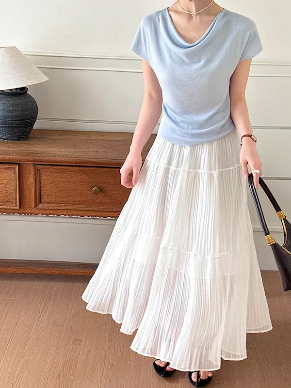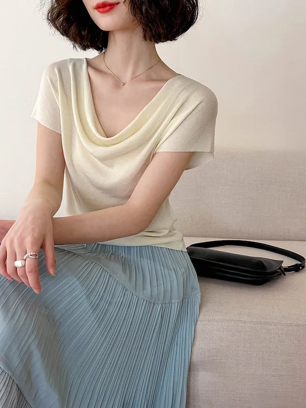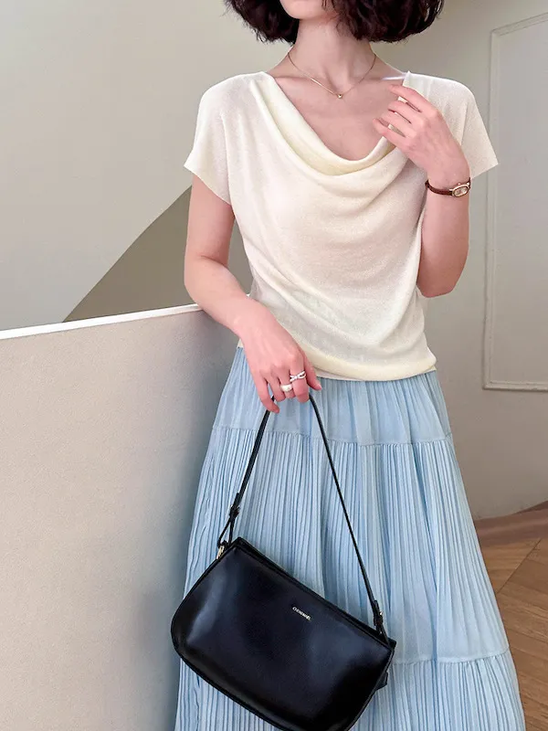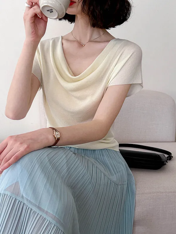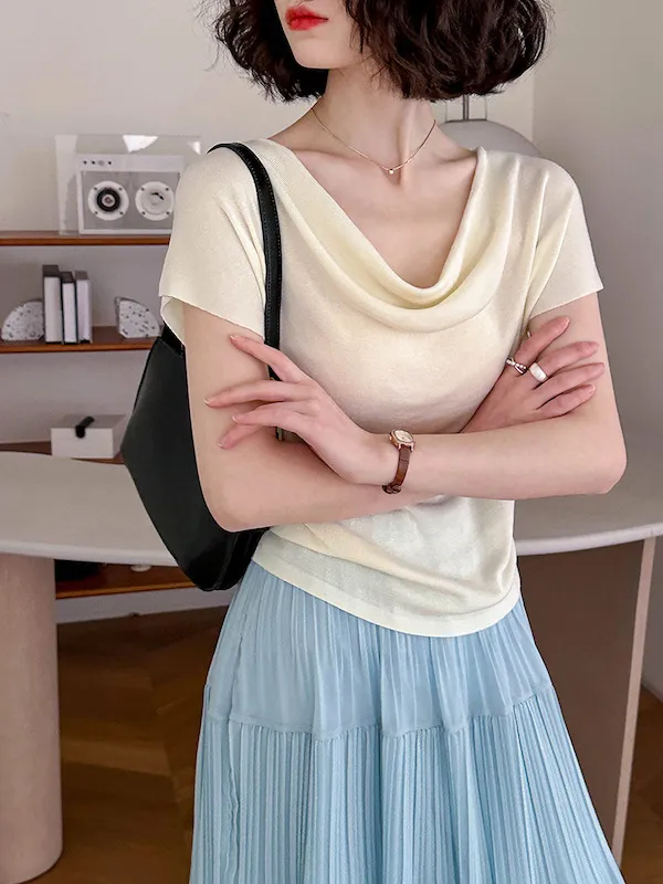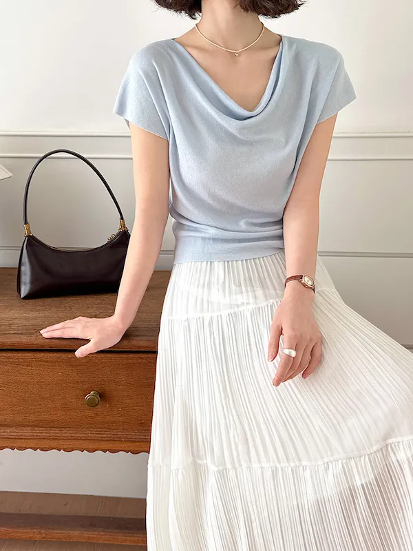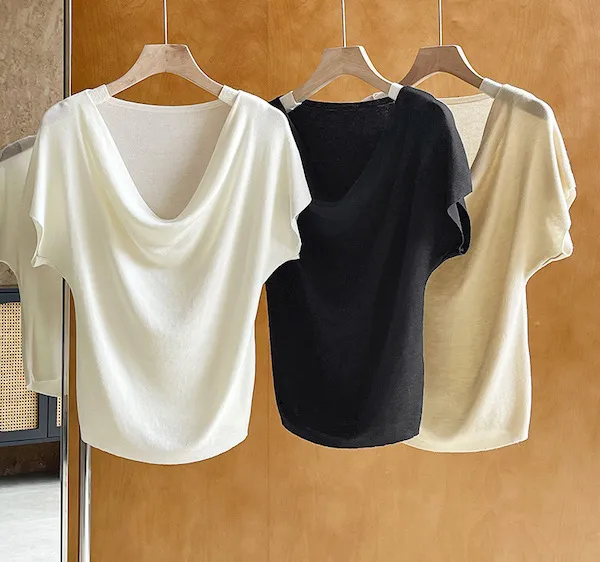 溫柔夏光蕩領顯瘦短袖上衣 4色