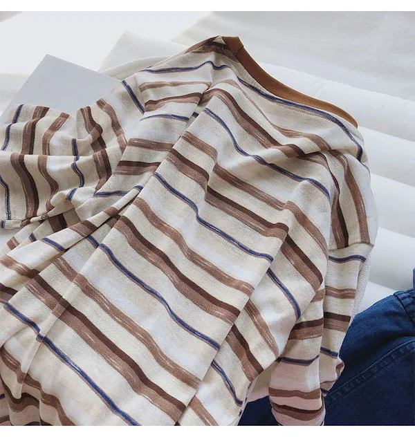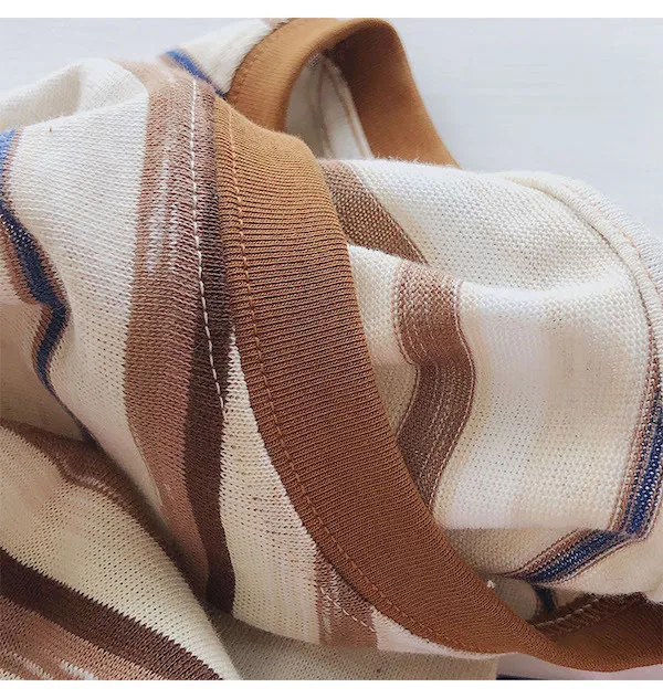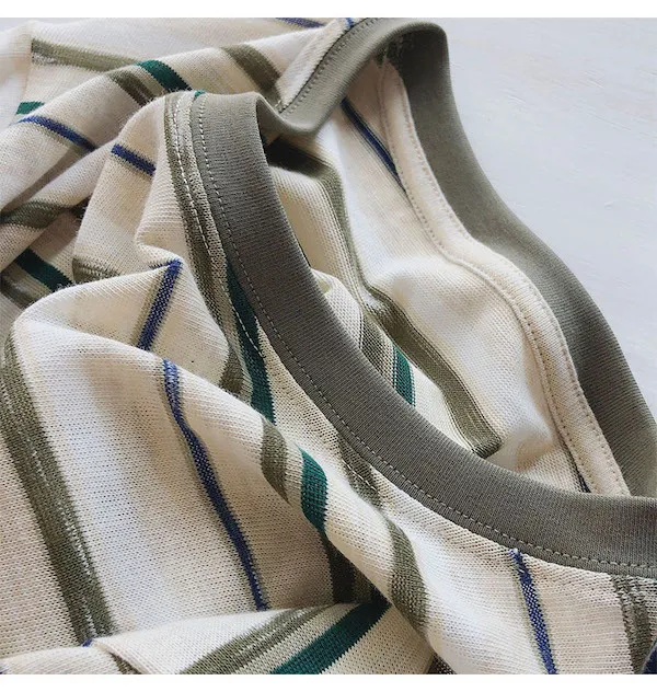 復古綠的條紋搭配很顯白,咖啡色版本也超溫柔耐看