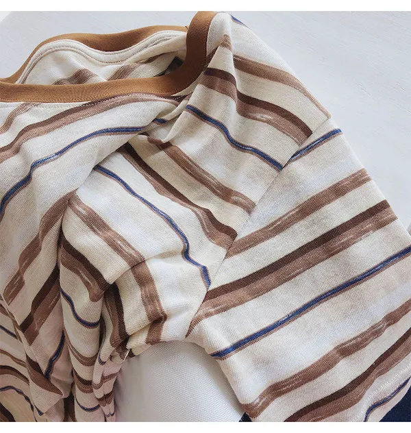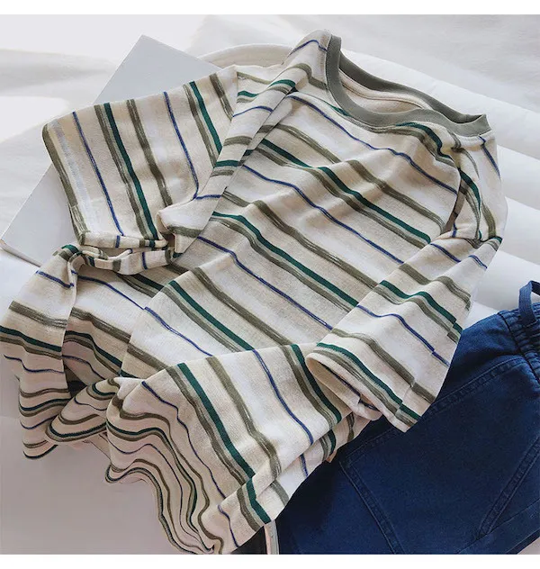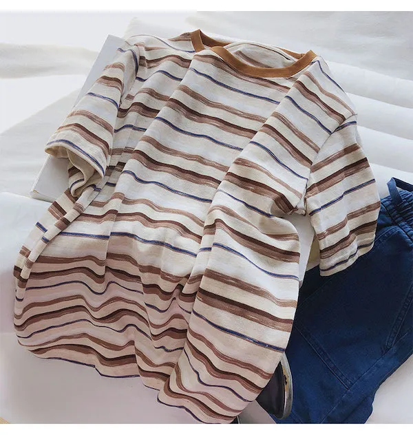 溫柔色調 雜染條紋輕薄短袖上衣 2色