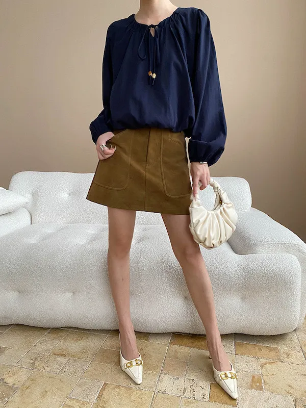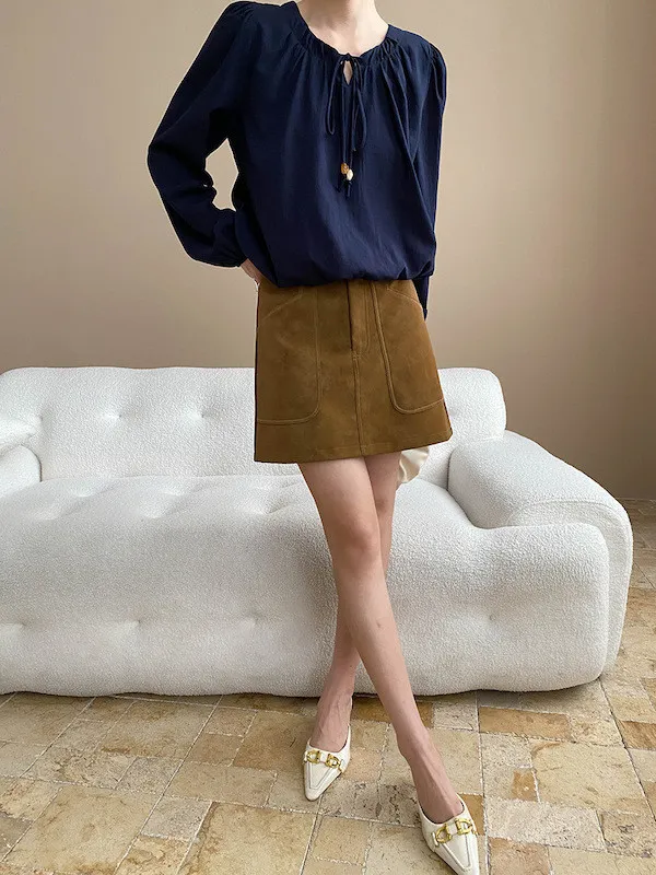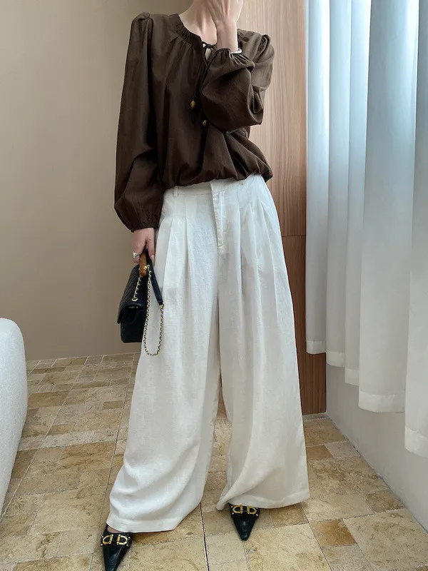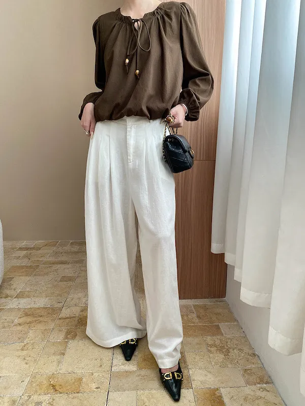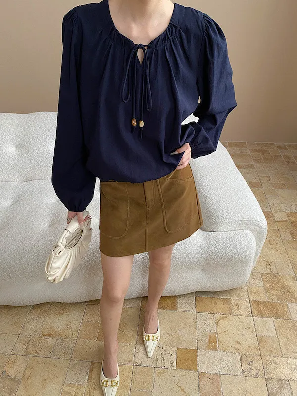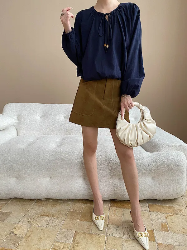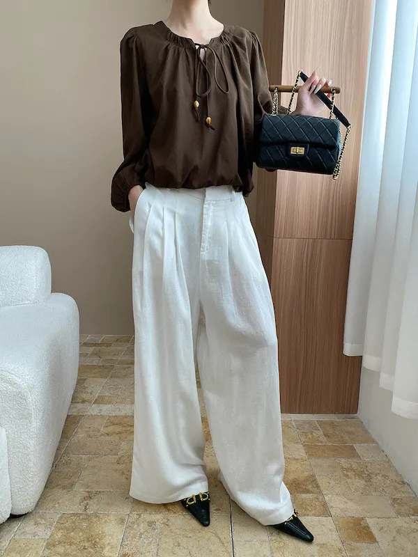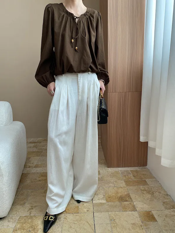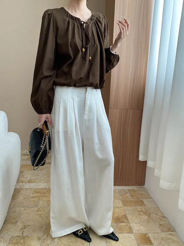 老錢優雅 花苞串珠系帶法式長袖襯衫 4色