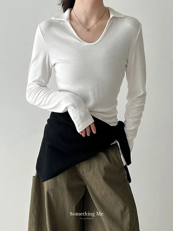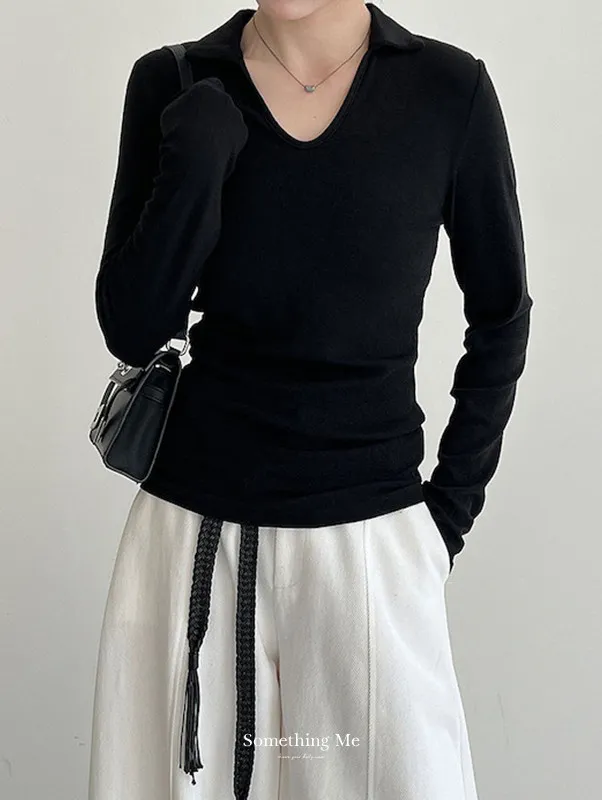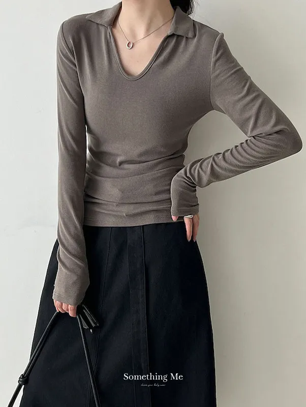 靜謐時刻 V領小翻領修身上衣 4色