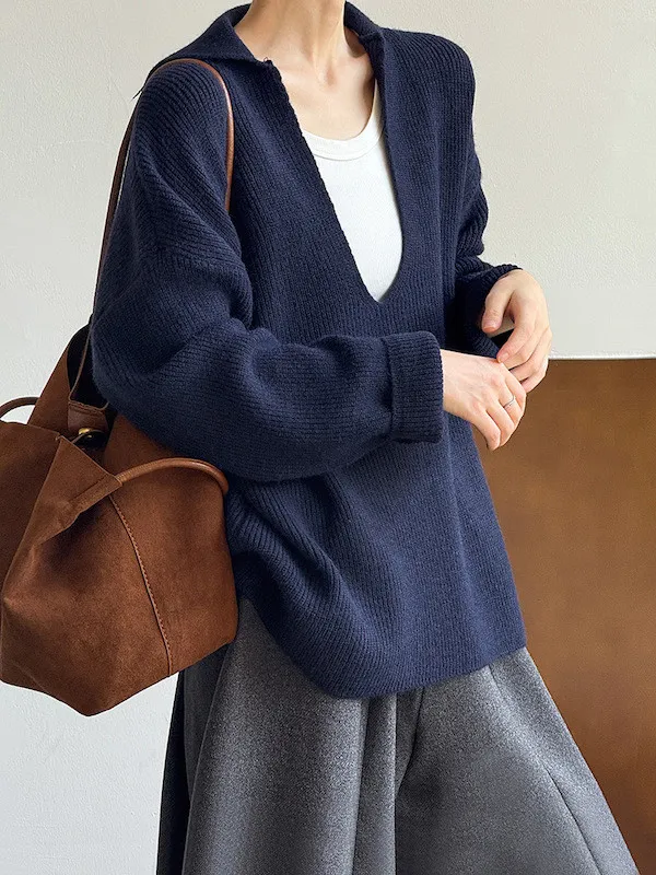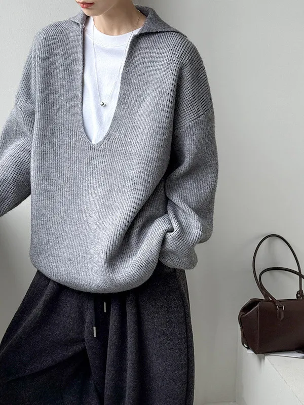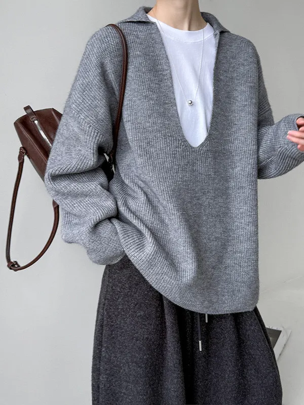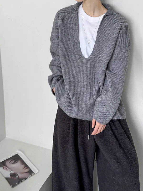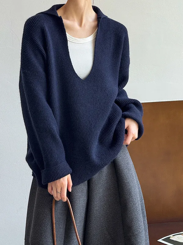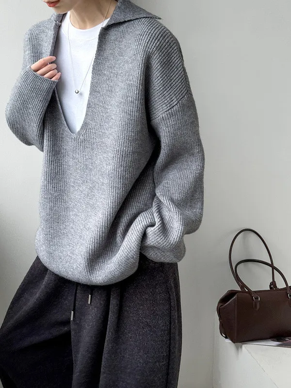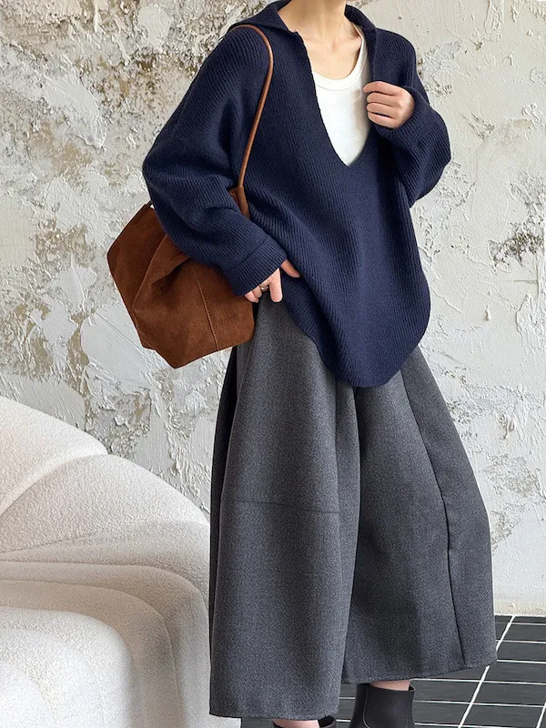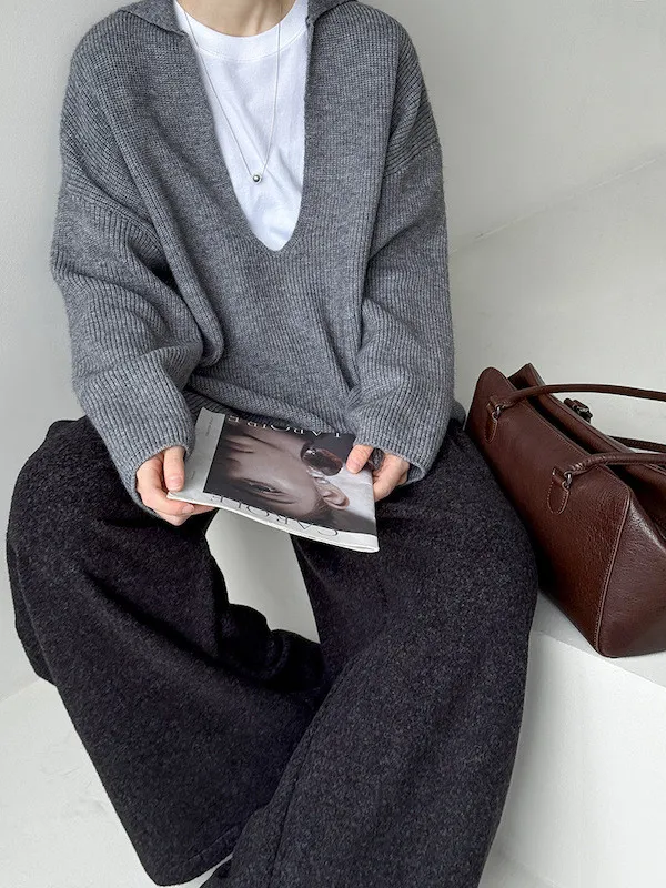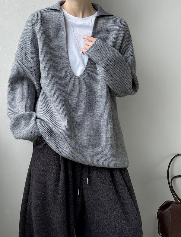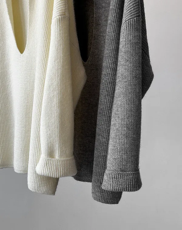 慕尼黑冬日大V領寬鬆針織毛衣 3色