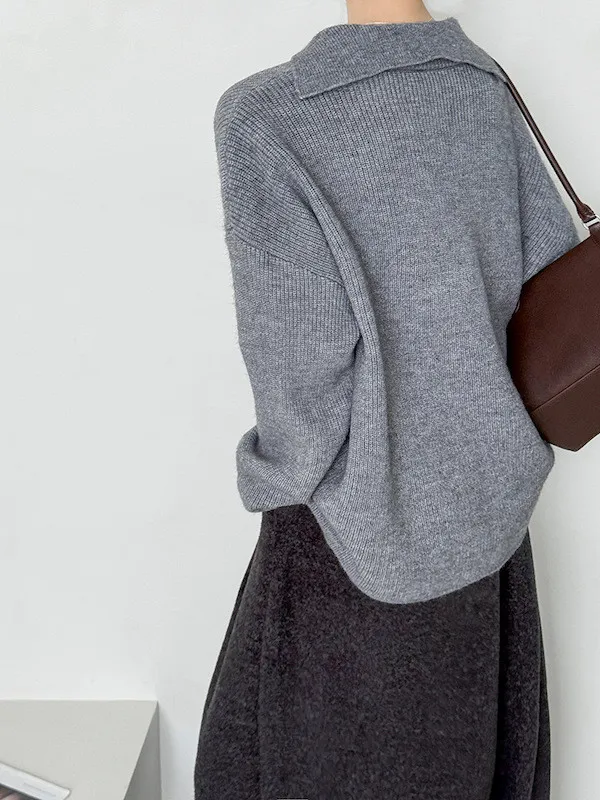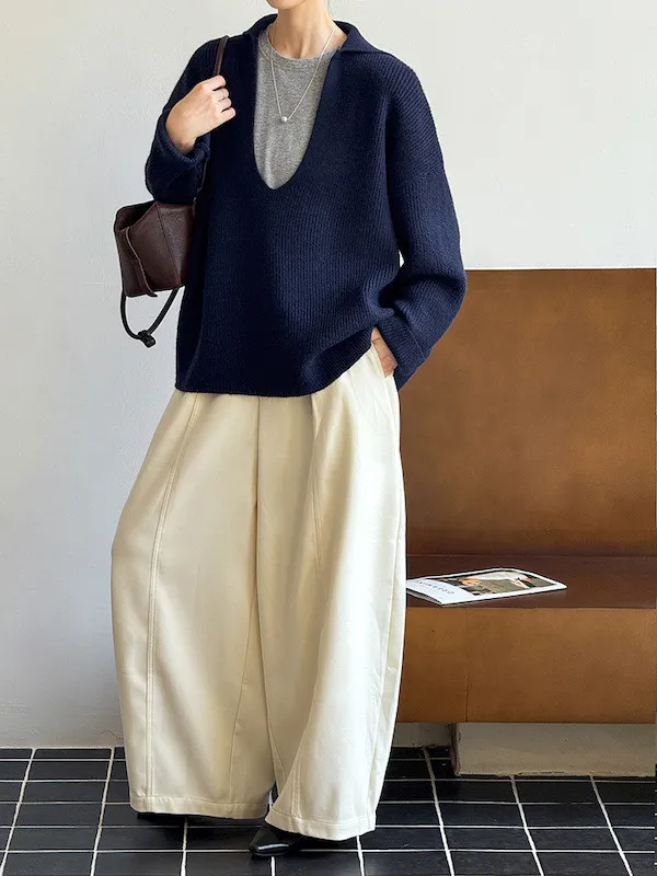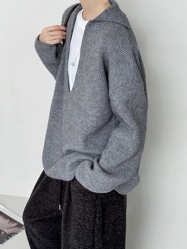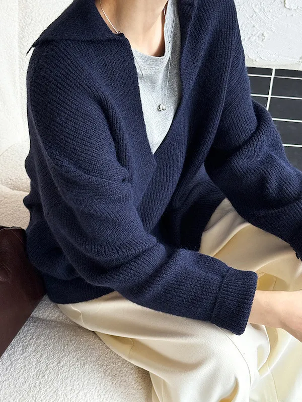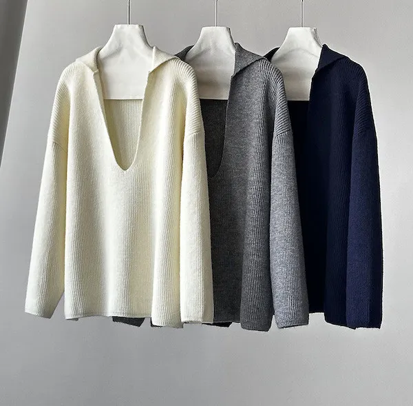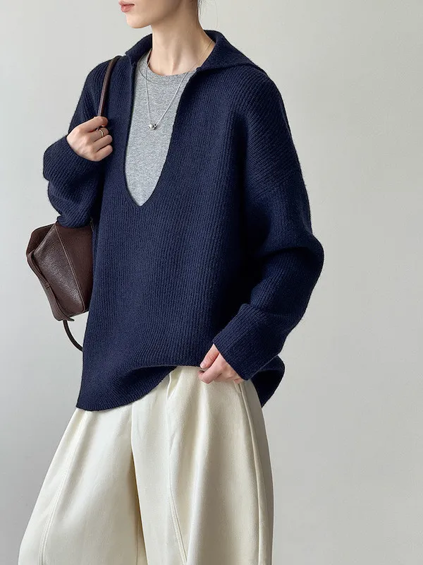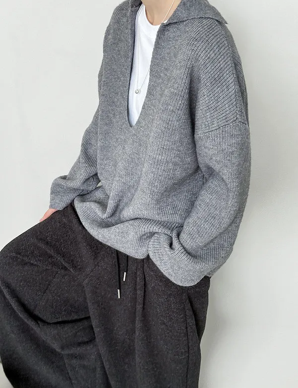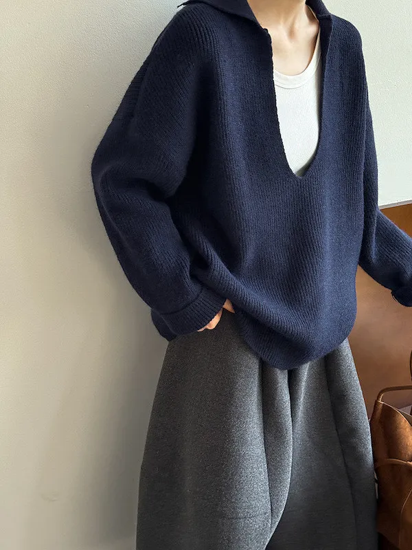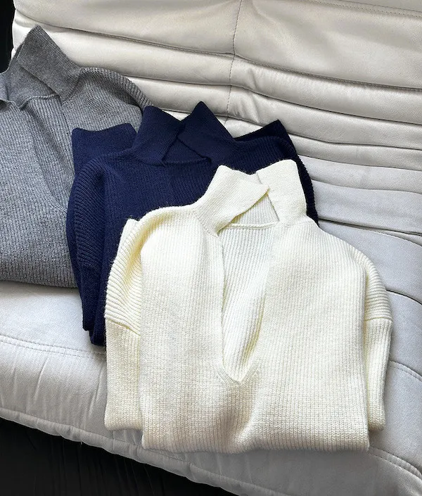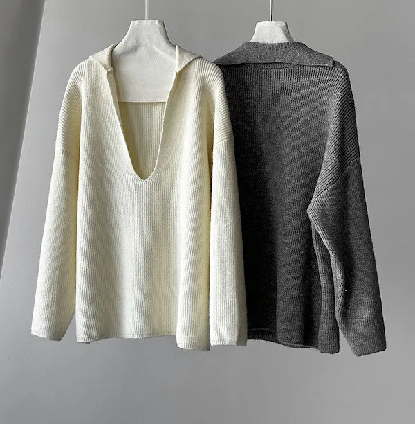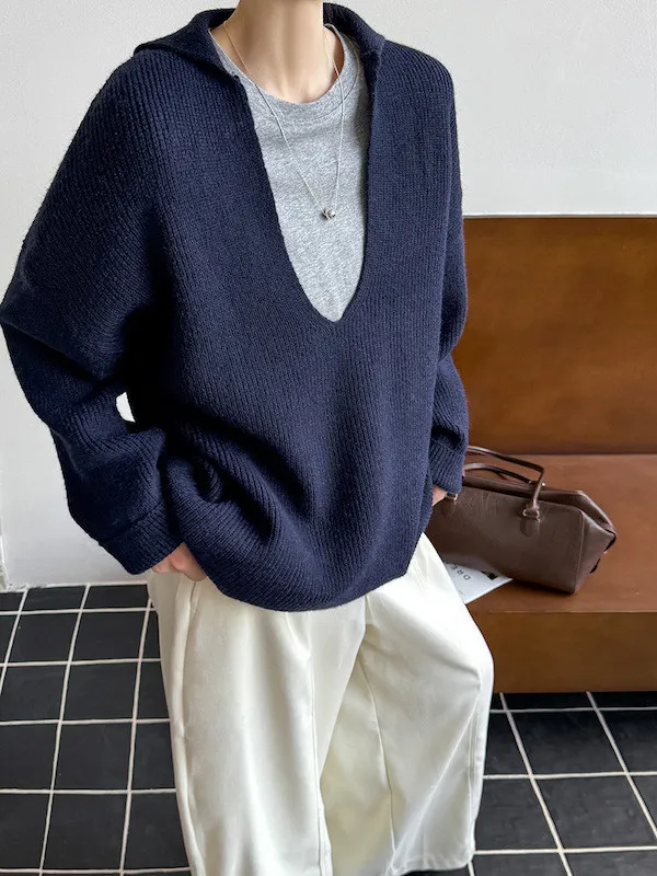 慕尼黑冬日大V領寬鬆針織毛衣 3色