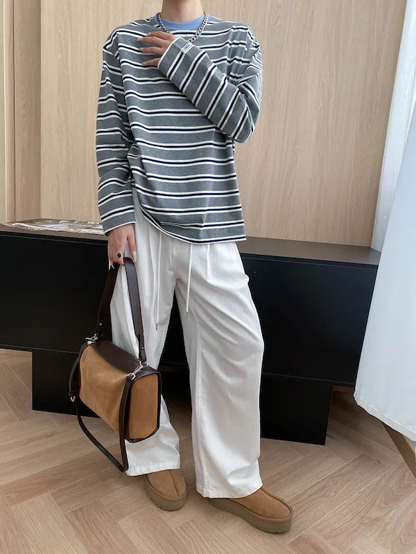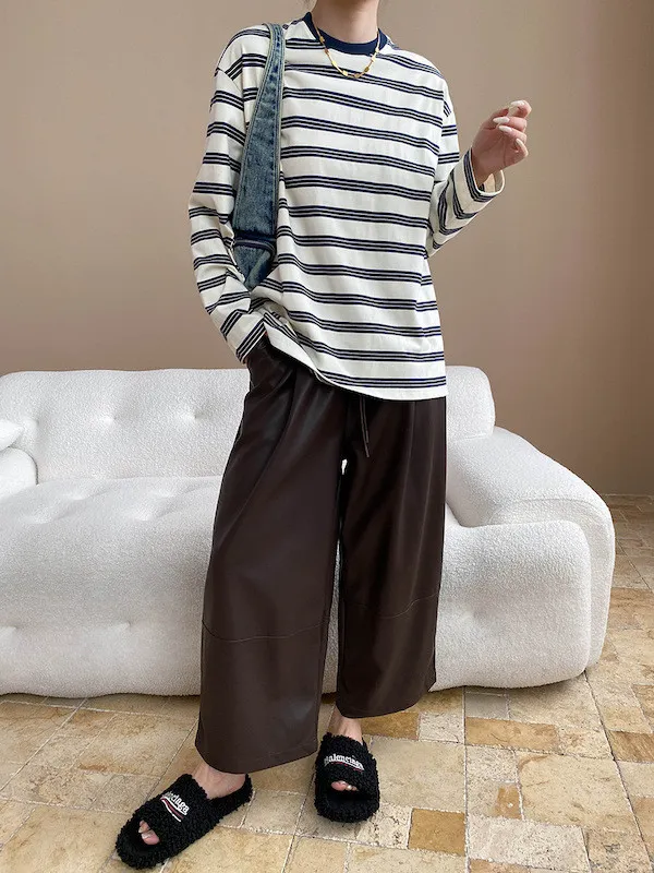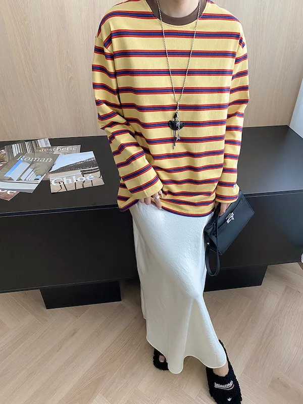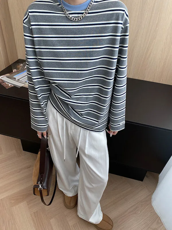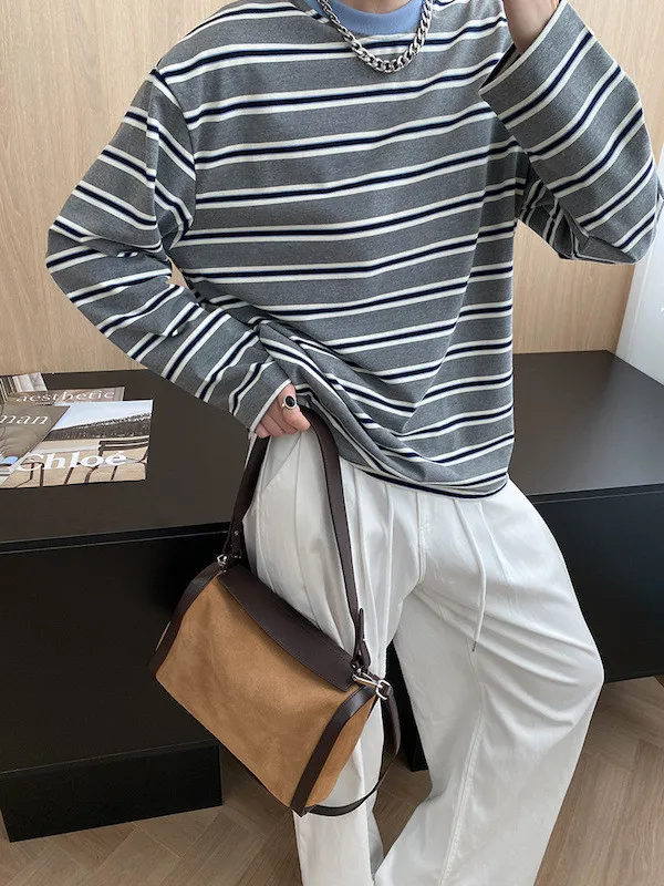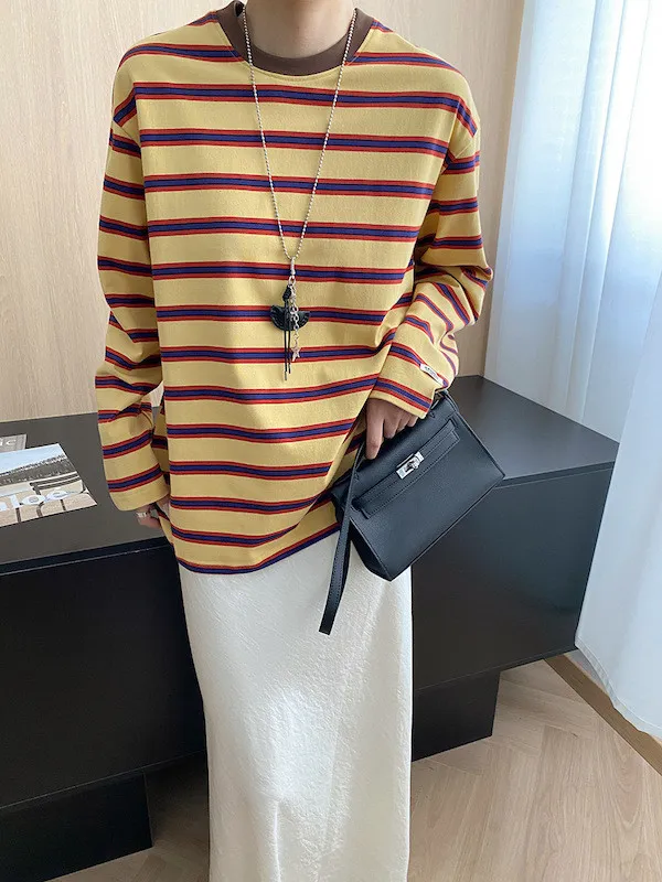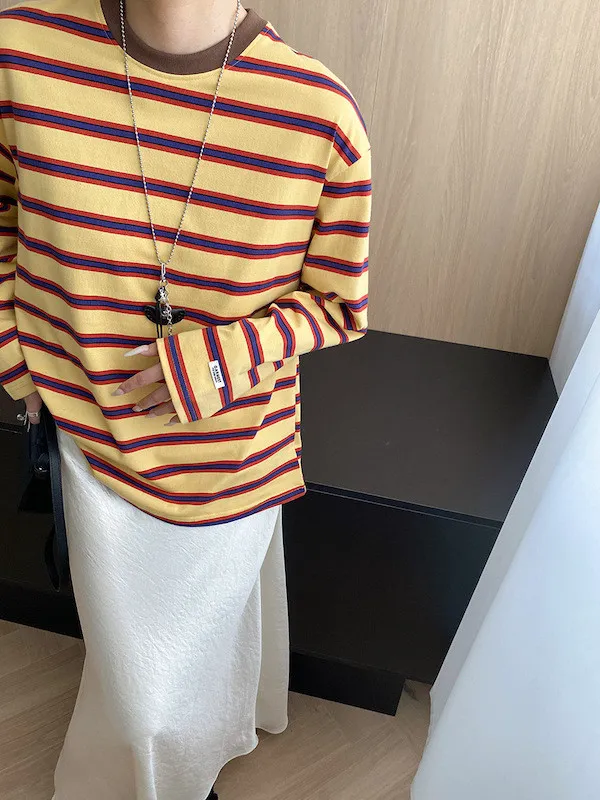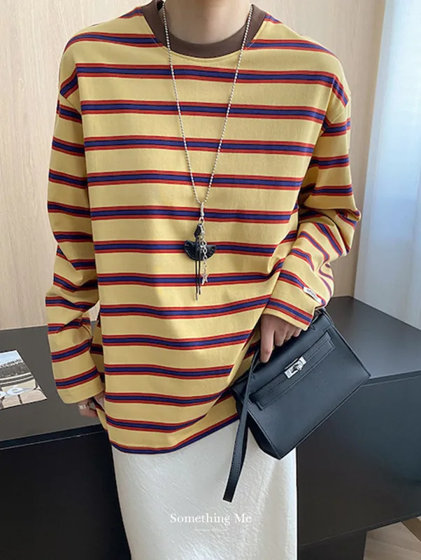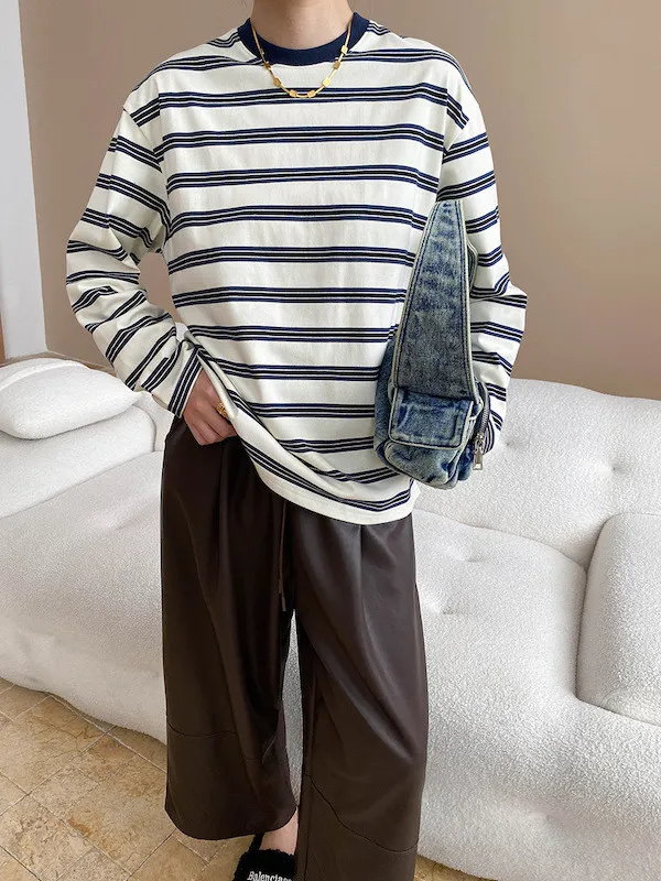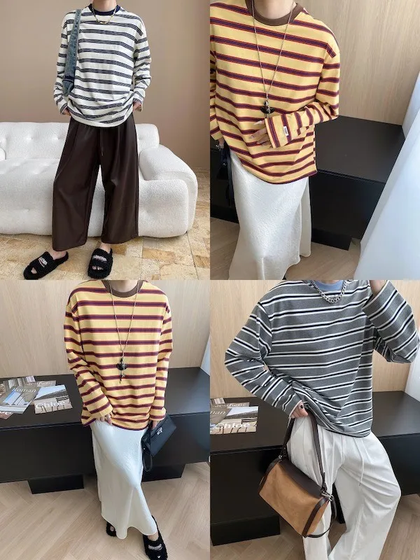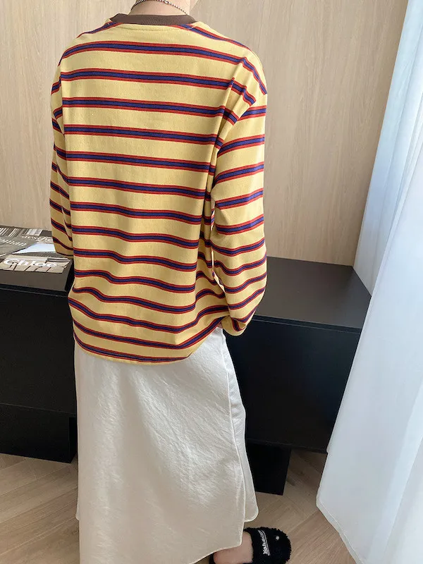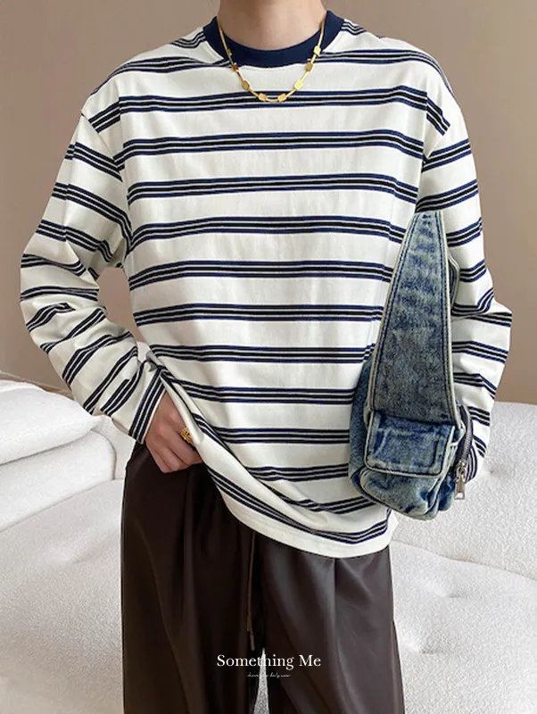 條紋控摯愛 美式復古撞色寬鬆長袖Tee 3色